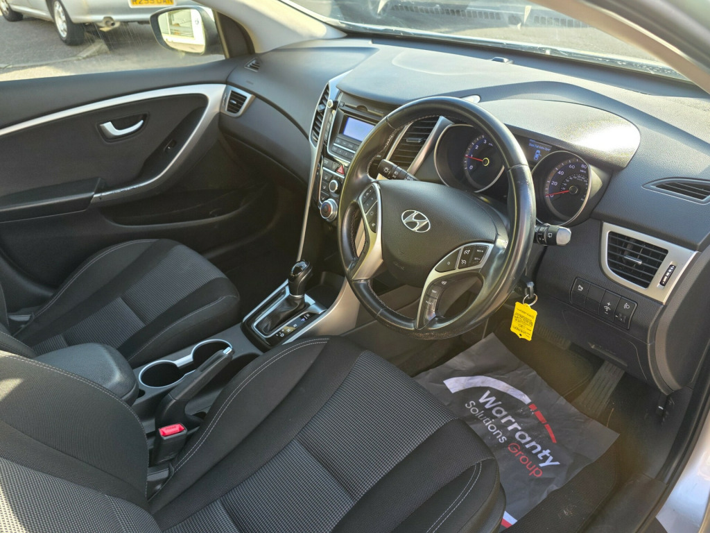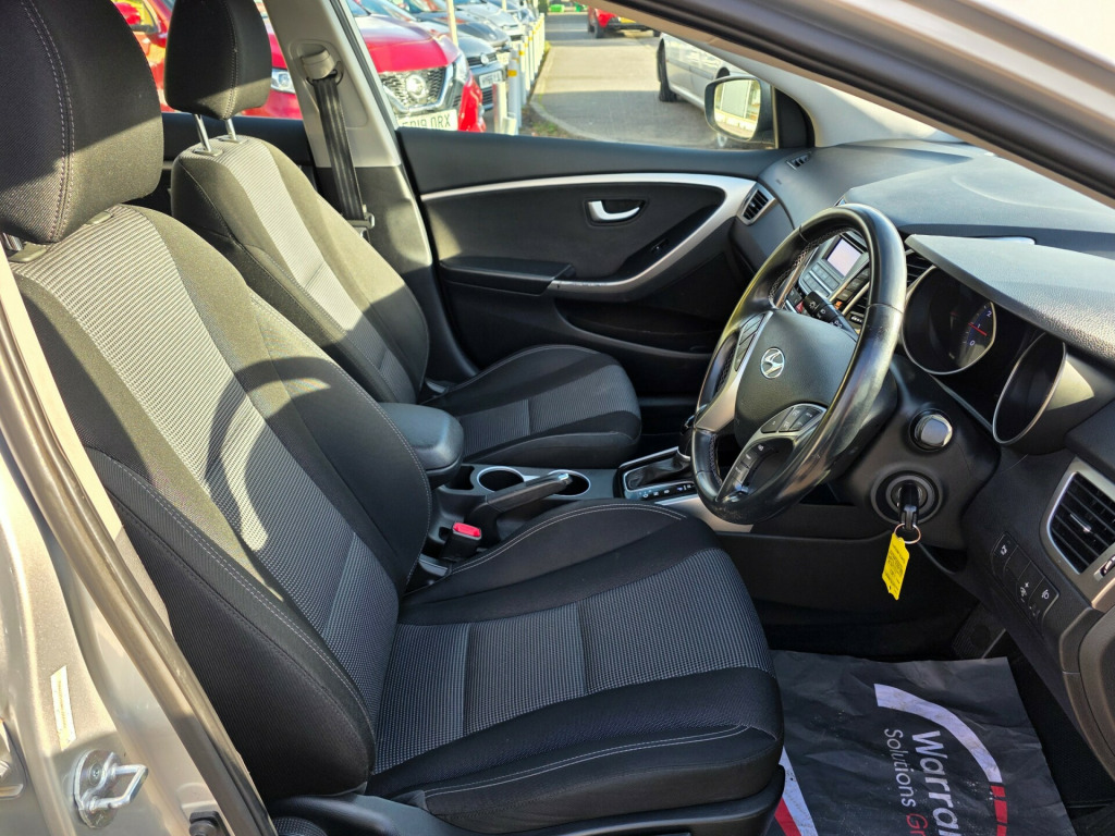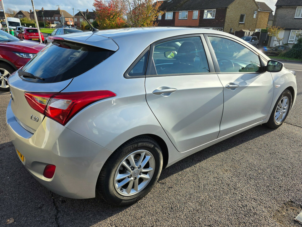 Prepared to Hares high standards, supplied with the best warranty available for your peace of mind with free breakdown cover. For sale is a 2014 Hyundai i30 1.6 Active Hatchback with only 42000 miles on the clock. This stylish car is ULEZ compliant and comes with a long MOT until 29/09/2026. Powered by a reliable petrol engine, this 5-door hatchback boasts plenty of space with 5 seats and is perfect for both urban and long-distance driving. The automatic transmission and Euro 5 engine produce 120 ps, ensuring a smooth and efficient ride. Inside, you'll find modern features including Bluetooth connectivity with voice recognition, RDS radio-CD player with MP3 compatibility, and USB and AUX connections for all your media needs. With 12V power outlets in the front, this Hyundai i30 offers both comfort and convenience. Don't miss out on this fantastic opportunity to own a reliable and well-equipped vehicle. v power outlet - front x2, bluetooth connectivity with voice recognition, rds radio-cd player with mp3 compatibility, speakers x4, usb and aux connections, 15in alloy wheels, door mirrors - body coloured, electric adjustment and heated door mirrors, exterior door handles - body coloured, locking wheel nuts, radiator grille - hexagonal with twin chrome bars, spare wheel - temporary, tinted glass, windows - electric front and rear with one-touch down control for driver, abs - anti-lock brake system, airbags - driver, airbags - front passenger, airbags - front side, airbags - full length curtain, alarm, bas - brake assist system, childproof rear door locks, deadlocks, ebd - electronic brake force distribution, esp - electronic stability programme, ess - emergency stop signal, flex steering, front passenger airbag de-activation switch, hac - hill-start assist control, isofix child seat anchorage points - rear - outer rear, remote central locking, seatbelt reminder, speed sensitive automatic door locking, thatcham approved immobiliser, vsm - vehicle stability management, air conditioning, armrest - front centre with storage compartment, chrome effect interior door handles, cloth door centre trim, cup holders - front x2, front map reading lights, front and rear door pockets, gear knob - leather, glove compartment with cooling function and illumination, head restraints - front and rear with vertical adjustment, ignition socket illumination, instrument panel brightness control, interior trim - alloy effect fascia, interior trim - gloss black and alloy effect fascia, luggage compartment light, one-touch indicators, seats - 60-40 split folding rear, seats - drivers height adjustment, steering column - height and reach adjustable, steering wheel - leather and gear knob, steering wheel audio and phone controls, sun visors with vanity mirrors, sunglasses holder, cruise control with speed limiter, parking sensors - rear, power assisted steering, trip computer, windscreen washer fluid sensor and warning indicator, daytime running lights - led, front fog lights, headlights - follow me home function, projection headlights, rear spoiler with high-mounted brake light