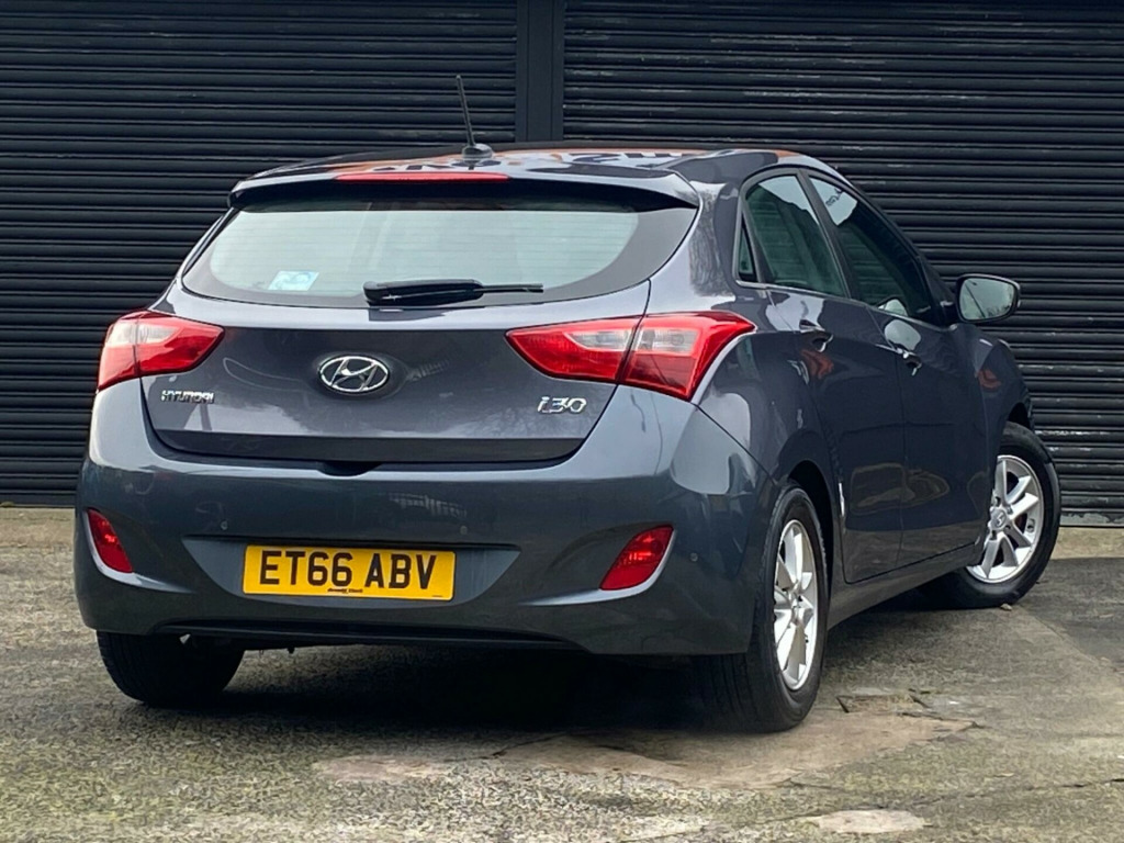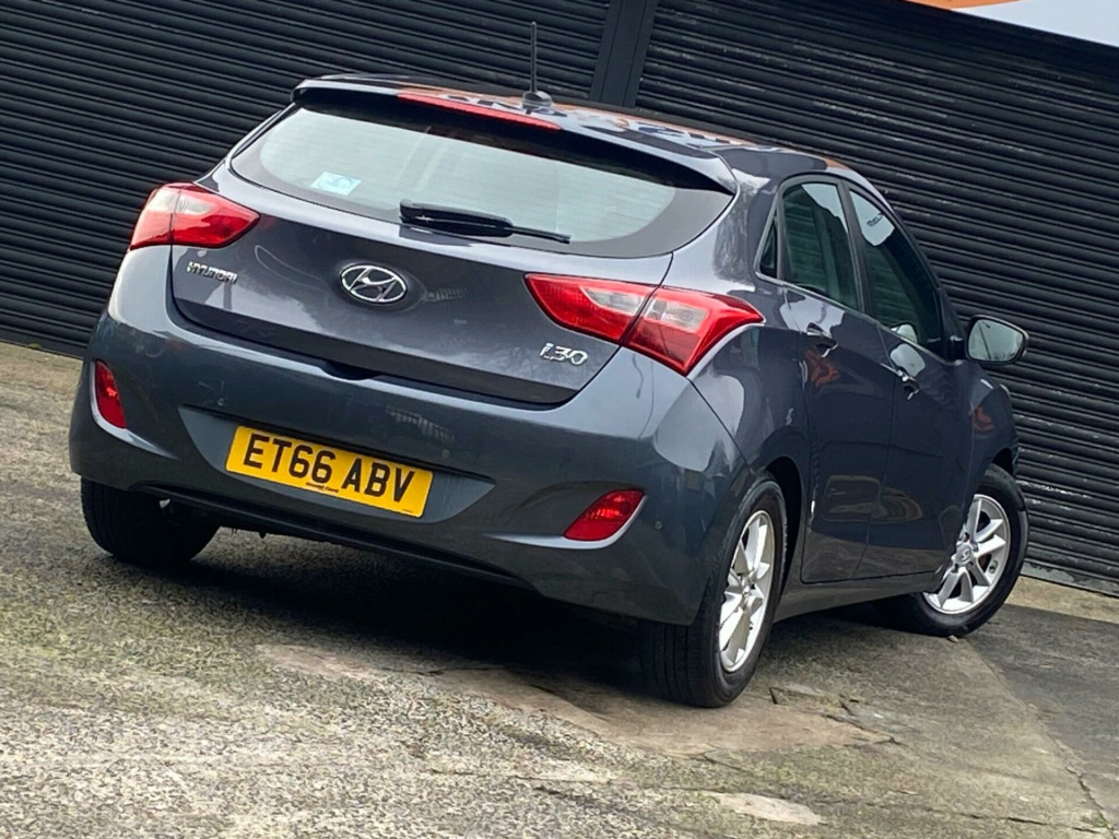 Drive and Smile are pleased to present this 2016 Hyundai i30 CRDi SE Nav along with 2 keys, service history and only £20 road tax for 12 months. This Euro 6 compliant model boasts a 1.6 litre diesel engine, offering an impressive fuel economy of up to 78 miles per gallon. The SE Nav trim level ensures a comfortable and convenient driving experience, featuring essential notable features such as a rear view parking camera with rear parking assistance, Bluetooth connectivity for seamless phone integration, air conditioning to keep you cool and adjustable steering styles.Beyond its excellent provenance and practical features, this Hyundai i30 stands out with several key advantages. Its low CO2 emissions contribute to a more environmentally friendly drive, while its low insurance group rating means more affordable motoring. You'll also appreciate the generous boot space, perfect for shopping trips or luggage, and the overall efficiency highlighted by its exceptional fuel economy, making it a sensible and economical choice compared to many other vehicles in its class. oth - black, 12v power outlet, 12v power outlet - luggage compartment, 15in alloy wheels, 7in touch screen, abs - anti-lock brake system, air conditioning, airbags - curtain, airbags - driver, airbags - front passenger, airbags - front side, alarm, armrest - front centre with storage compartment, armrest - rear centre, automatic dimming rear view mirror, bas - brake assist system, bluetooth connectivity, chrome effect interior door handles, cruise control with speed limiter, cup holders - front x2, cup holders - rear, daytime running lights - led, deadlocks, door handles - body coloured, door mirrors - body coloured, door mirrors - electric heated and folding, driver seat height adjustment, ebd - electronic brake force distribution, esp - electronic stability programme, ess - emergency stop signal, electric windows - front and rear, flex steering, front fog lights, front map reading lights, front passenger airbag de-activation switch, front seat back pockets, gear knob - leather, glove compartment with cooling function, hac - hill-start assist control, head restraints - front and rear with vertical adjustment, headlights - follow me home function, headlights - static bending, high-mounted brake light, hood insulator, isofix child seat anchorage points - rear - outer rear, ignition socket illumination, locking wheel nuts, parking sensors - rear, passenger seat height adjustment - manual, pollen filter, power assisted steering, rds radio-cd player with mp3 compatibility, radiator grille - type a - body coloured, rear spoiler, rear-view parking camera, remote central locking, satellite navigation - touchscreen, seatbelt reminder, seats - 60-40 split folding rear, seats - drivers electric lumbar support, solar glass with shade band, spare wheel - temporary, steering wheel - leather, steering wheel - tilt and telescopic adjustment, steering wheel audio and phone controls, sun visors with vanity mirrors and illumination, sunglasses holder, thatcham approved immobiliser, trip computer, tyre pressure monitoring system - tpms, usb and aux connections, under floor storage in boot, vsm - vehicle stability management, voice control