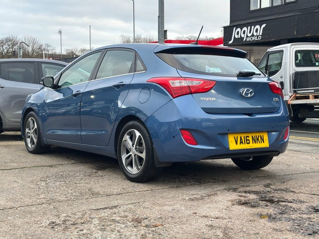 This 2016 Hyundai i30 SE Nav presents an exceptional opportunity with its remarkably low mileage of just 7355 miles, a truly outstanding figure for a vehicle of its age. This one owner, Euro 6 compliant 1.6 litre petrol model boasts a full Hyundai dealer service history and a clear vehicle history check, offering peace of mind. Inside, you'll find convenient features such as Bluetooth connectivity for seamless phone integration, air conditioning to keep you comfortable in all conditions, and rear parking sensors paired with a rear view parking camera to assist with manoeuvring. The SE Nav trim level ensures a well equipped driving experience, and the i30's reputation for reliability is further enhanced by its low insurance group rating, making it an economical choice for many drivers. These combined factors, including the exceptionally low mileage and single owner history, clearly set this Hyundai i30 apart from other vehicles you might consider. Ara Blue, 12V Power Outlet, 12V Power Outlet - Luggage Compartment, 16in Alloy Wheels, 7in Touch Screen, ABS - Anti-Lock Brake System, Air Conditioning, Airbags - Curtain, Airbags - Driver, Airbags - Front Passenger, Airbags - Front Side, Alarm, Armrest - Front Centre with Storage Comp, Armrest - Rear Centre, Automatic Dimming Rear View Mirror, BAS - Brake Assist System, Bluetooth Connectivity, Chrome Effect Interior Door Handles, Cruise Control with Speed Limiter, Cup Holders - Front x2, Cup Holders - Rear, Daytime Running Lights - LED, Deadlocks, Door Handles - Body Coloured, Door Mirrors - Body Coloured, Door Mirrors - Electric Heated and Foldi, Driver Seat Height Adjustment, EBD - Electr