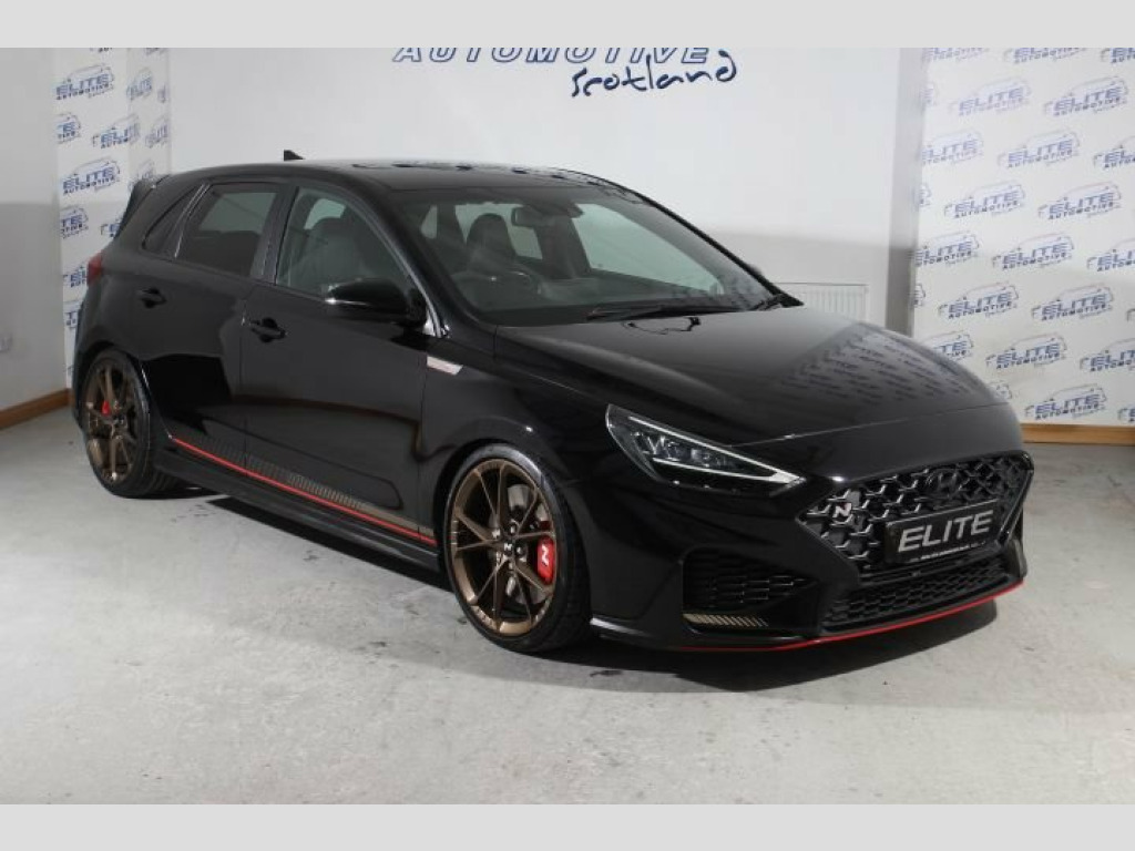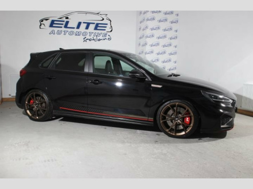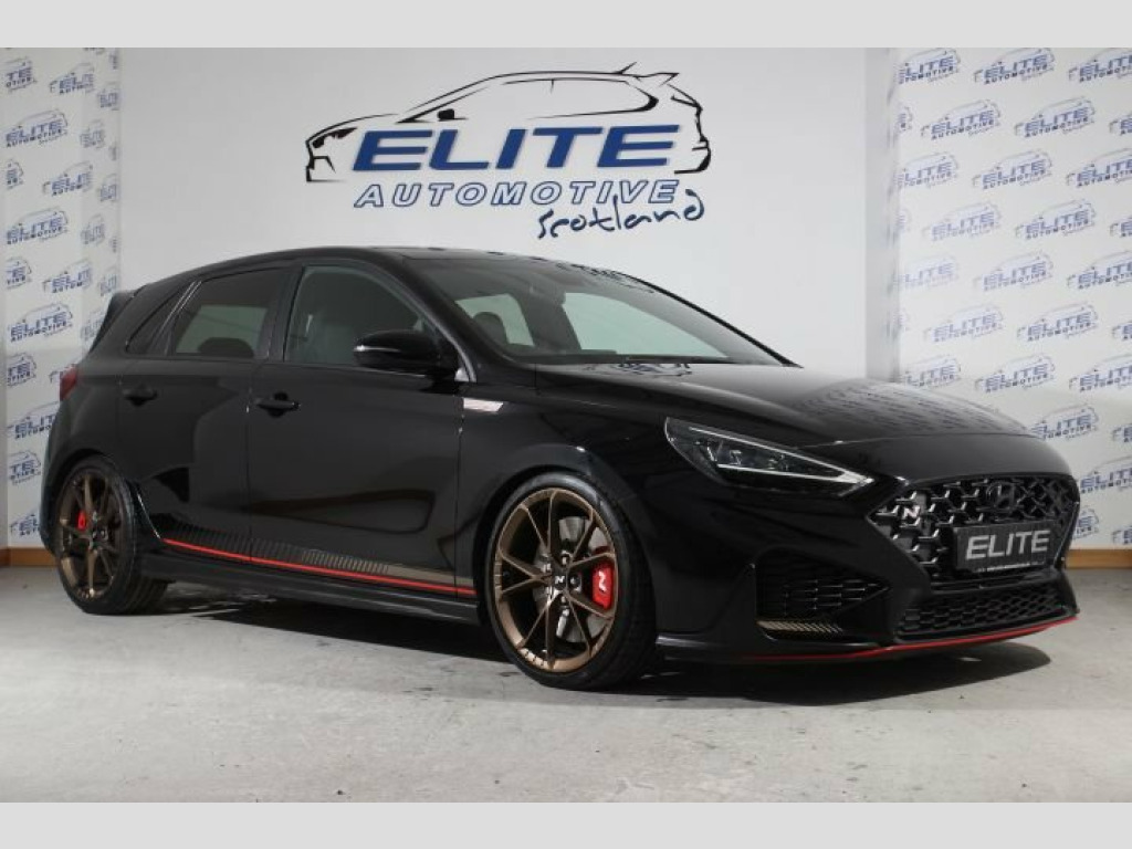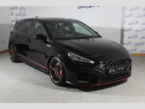 Elite are proud to offer to the market this 1 owner Hyundai I30 N Drive-N Edition DCT( 1 of 75 UK cars) finished in Phantom Black Pearl with full Hyundai service history and 25000 miles on the clock! Spec includes: matt bronze forged 19-inch wheels, decals applied along the sills, front wing and front and rear bumpers. Red pinstripes with red-painted brake calipers. Components like the centre console lid, steering wheel, gear shift lever and handbrake lever are now wrapped in the aforementioned Alcantara, the latter usually a rough injection moulded plastic handle that normally feels like the sole oversight in the standard i30 N's interior. The now standard-fit lightweight bucket seats (usually a £600 option) have also been given an update, with red and gold elements stitched into the Alcantara inserts, while the accent stitching and seat belts are also now red. Each car has been given dedicated badges displaying the GPS coordinates of Hyundai Test Centre at the Nurburgring. The car comes with its original presentation box with individual build plaque! We have just replaced the cars tyres with 4 matching Pirellis and had the car machine polished! Outstanding throughout and the ultimate I30 N. The only modifications is a set of Eibach lowering springs! Phantom Black, Leather-Alcantara - Monoform Seats - Bla, 12V Power Outlet - Front Console and Lug, 19in Alloy Wheels - Forged - Matte Bronz, ABS - Anti-Lock Brake System, AEB - Autonomous Emergency Brake with Fo, Active Head Restraints, Active Sound Design - Electric, Active Variable Exhaust System, Airbags - Front - Front Side and Curtain, Alarm - Thatcham Category 1, Armrest - Front with Storage, Armrest - Rear with Cup Holders, Audio Control with Voice Recognition, Automatic Dimming Rear View Mirror, Automatic Headlight Follow Me Home Funct, Automatic Headlights with Dusk Sensor, Automatic Windscreen Wipers with Rain Se, Blind Spot Collision Warning, Bluetooth Connectivity with Voice Reco