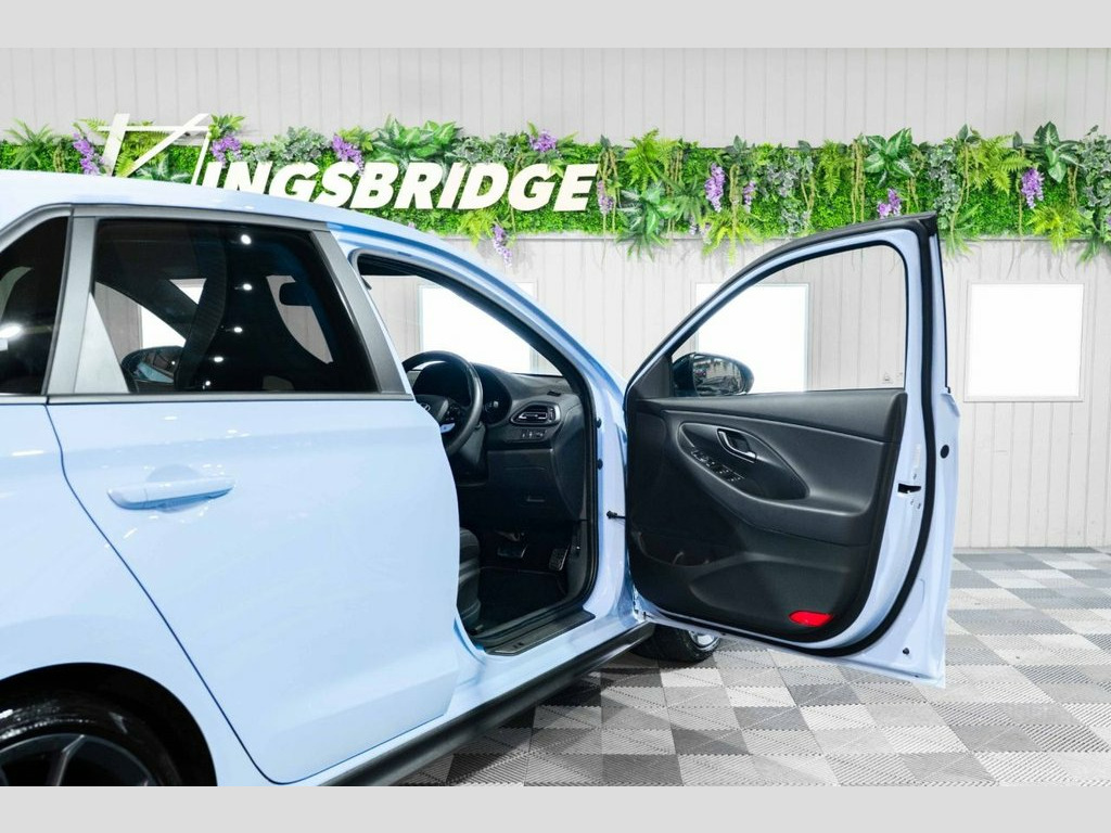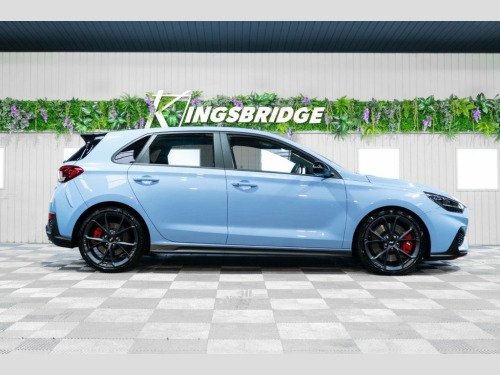 Kingsbridge are proud to present one of, if not the nicest i30N's we have had in stock to date. 2023/73 Hyundai i30 N-Performance DCT Auto 280bhp, arguably the best hot hatch currently on the market! This example is finished in special Performance Blue (£585 Paint Option) with Black Leather & Alcantara Interior. Further enhanced with the optional £600 N-light Sport seats with backlit N Logo... 1 Owner from New -- Full Hyundai Service History (Last Service done in August 2025) -- Balance of Hyundai 3 Year Service Plan and the balance of the 5 Year Hyundai warranty. - This car wants for nothing. In the world of Hyundai i30Ns, the market is awash with abused, poor-condition cars. Trust us when we say this one is anything but. Full Spec: 19" Satin Grey Alloy Wheels. Adaptive LED Headlights. Switchable Sports Exhaust. Black Wing Mirrors. Red Calipers. N Light Performance Seats. Apple CarPlay/Android Auto. Satellite Navigation. Bluetooth. WiFi. DAB. USB. Wireless Charging. Voice Command. Keyless Entry & Push Button Start. Heated Multifunction Steering Wheel. Cruise Control. Speed Limiter. Drive Mode Select. Adaptive Suspension. Launch Control. Personalised N Driver Profiles. G-Force Meter. Lap Timer. Heated N-Light Sports Seats. Dual Climate Control. Arm Rest. Piano Black Interior Trims. Front & Rear Parking Sensors. Reverse Camera. Automatic Lights & Wipers. Automatic High Beam Assist. Electric Heated Folding Door Mirrors. Auto Dimmi Leather-Alcantara - N Light Sports Seats, Performance Blue, 12V Power Outlet - Front Console and Lug, 19in Alloy Wheels - Forged, ABS - Anti-Lock Brake System, AEB - Autonomous Emergency Brake with Fo, Active Head Restraints, Active Sound Design - Electric, Active Variable Exhaust System, Airbags - Front - Front Side and Curtain, Alarm - Thatcham Category 1, Armrest - Front with Storage, Armrest - Rear with Cup Holders, Audio Control with Voice Recognition, Automatic Dimming Rear View Mirror, Automatic Headlight Follow Me Home Funct, Automatic Headlights with Dusk Sensor, Automatic Windscreen Wipers with Rain Se, Blind Spot Collision Warning, Bluetooth Connectivity with Voice Recogn, Central
