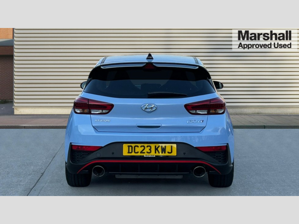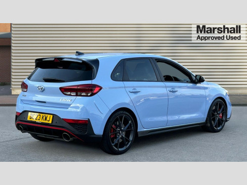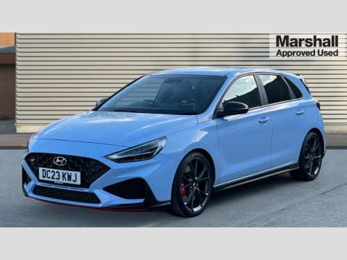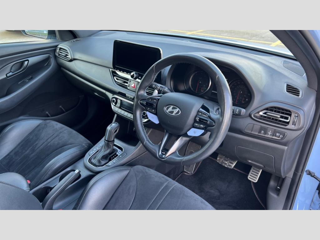 Hyundai I30 2.0T GDi N Performance 5dr DCT 10.25" touchscreen centre console display satellite navigation including traffic messaging channel, map care and live services, Android Auto, Apple car play, Audio control with voice recognition, Blind spot Collision Warning (BCW), Bluetooth connectivity with voice recognition, Cruise control, Drive mode buttons, Driver attention alert system, Driver's supervision instrument cluster with 4.2" LCD display, e-Call (Emergency button system), Emergency stop signalling system, Forward collision avoidance assist, Front and rear parking sensors, Intelligent speed limit warning, Lane follow assist, Lane keep assist, N exclusive sport cluster, N grin shift, N mode button, N track sense shift, Parking system with rear camera and guidance system, Performance information display, Rack motor driven power steering, Rear collision assist, Rev matching system, Shift timing indicator, Trip computer, Windscreen washer fluid sensor and warning indicator, Wireless phone charging pad, Electric active sound design, Electronic limited slip differential, Electronically controlled suspension, Intelligent Stop and Go, Launch control, 2 front and 2 rear speakers with 2 tweeters, DAB Digital radio, USB ports in centre console, 1 speed non intermittent rear windscreen wiper, Active variable exhaust system, Adjustable intermittent front windscreen wipers with aero wiper blade, Automatic defog system for front windscreen, Automatic dimming rear view mirror, Automatic headlight with follow me home function, Automatic windscreen wipers with rain sensor, Black finish window surrounds, Black glossy door mirrors with integrated indicators, Body coloured door handles, Door mirror puddle lights, Dual LED Headlamps with Low/High Projection & Static Cornering, Dusk sensor, Electric adjustable heated door mirrors, Electric folding door mirrors, Electric windows - front and rear with anti-trap mechanism and one touch control (driver window), LED daytime running lights, LED tail lights, N exclusive front and rear bumpers, N exclusive radiator grille, N exclusive rear diffuser, Rear brake light in signature N triangular design, Rear LED lights, Rear roof spoiler with integrated LED brake light, Rear side wing doors, Rear stiffness bar, Rear windows and tailgate privacy glass, Shark fin antenna, Static Cornering lights, Tinted glass with windscreen shade band, 12V power outlets in front console and luggage compartment, 3 seat bench in 2nd row, 60/40 split folding rear seat, Active head restraints, Aluminium pedals, Black roof liner, Centre console storage, Chrome effect interior door handles, Driver's seat electric height adjustment, Driver's seat manual extendable seat cushion, Driver/passenger sunvisors and illuminated vanity mirrors, Dual zone climate control air conditioning, Electric adjust driver's seat, Floor mats, Front and rear door pockets, Front armrest with storage box, Front cupholders, Front head restraints with vertical and horizontal adjustment, Front passenger's seat electric adjustments, Front passenger's seat electric height adjustment, Front passenger's seat electric lumbar support, Front passenger's seat manual extendable seat cushion, Front, rear and luggage compartment interior lights, Glove compartment, Heated front seats, Heated function steering wheel, Interior front map reading light and sunglasses holder, ISOFIX child seat anchorage points attached on outer rear seats, Leather gearstick gaiter with light blue stitching, Leather wrapped steering wheel and gear knob, Luggage board, N branded aluminium door sill trims, N drive mode steering wheel button in blue, Reach + rake adjustable steering column, Rear armrest with cupholder, Rear head restraints, Single front passenger seat, Steering wheel audio, phone and cruise control buttons, 3x3 point rear seatbelts, Airbags - front, front side and curtain airbags, Anti-lock braking system (ABS), Childproof rear door locks, Curtain airbag roll over sensor, Electronic stability control, Front passenger airbag deactivation switch, Front seatbelt reminder, Height adjustable seatbelts, Hill start assist control (HAC), Manual parking brake, N power shift, Red brake calipers with N logo, Reinforced brakes, Seatbelt reminder for rear passenger seats, Torque vectoring brake, Tyre pressure monitoring system (TPMS), Deadlocks, Immobiliser, Locking wheel nuts, Remote control central locking, Smart key with keyless entry and engine start/stop button, Speed sensitive automatic door locking, Thatcham category 1 alarm, 19" Gloss black alloy wheels, 19" Pirelli P zero performance tyres, Temporary mobility kit (TMK)