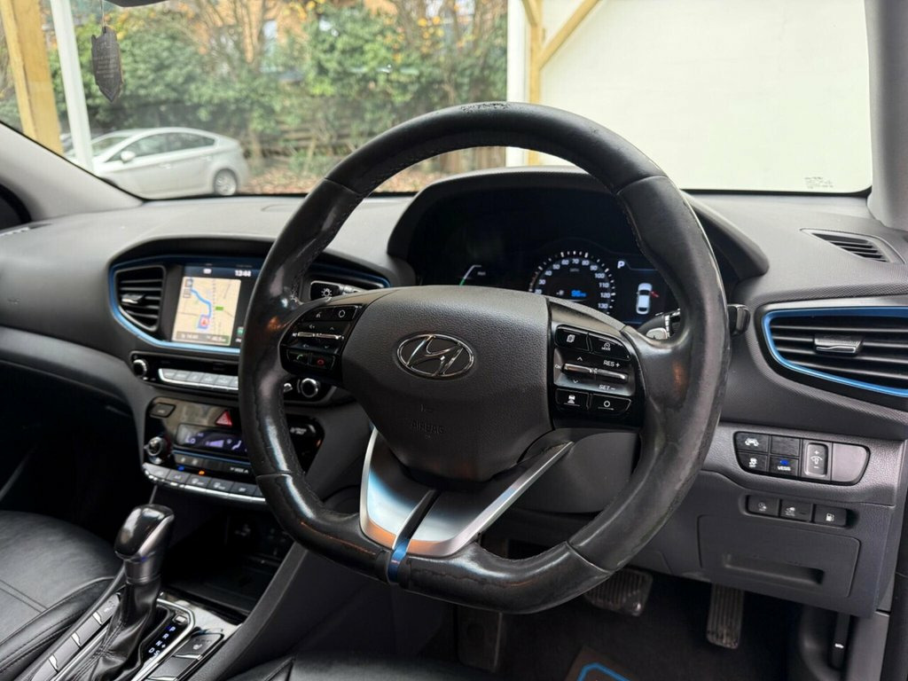 An excellent example of the modern and efficient Hyundai IONIQ 1.6 h-GDi 8.9kWh Premium DCT Euro 6 (s/s) 5dr, finished in a sleek blue exterior. This advanced hybrid hatchback combines impressive fuel efficiency with smooth performance, powered by a 1.6-litre petrol engine and electric motor paired to a DCT automatic gearbox. The Premium trim offers a high level of comfort, technology, and connectivity, making every journey effortless and enjoyable. Ideal for eco-conscious drivers, commuters, or anyone seeking a refined and economical hybrid that delivers both practicality and style. Key Features Include: Reverse camera Black leather seats Heated seats Navigation Bluetooth connectivity Air conditioning Alloy wheels Electric windows This vehicle comes with 5 doors, 5 seats, and has covered 122,770 miles. It was first registered in 2017, runs on Petrol plug in hybrid, and features a smooth automatic gearbox. The car is ULEZ compliant, HPI clear, and comes with a valid MOT until April 2026. It also includes a service history, offering peace of mind for the next owner. What?s Included: Free 90-day warranty 1 year of free AA breakdown cover Part exchanges welcome Flexible finance options available Drive-away insurance, extended warranties, and servicing packages for added convenience We offer nationwide delivery at an additional cost?have the car delivered directly to your door, or visit our dealership to view and collect at a time that suits you. Visit or Contact Us - W 100 Percent MapCare Programme - 10 Years, 12V Power Outlet, ABS - Anti-Lock Brake System, Air Conditioning - Driver-Only Mode, Air Conditioning - Dual Zone Climate Con, Airbags - Front - Front Side - Curtain a, Arm Rest - Front with Storage, Automatic Dimming Rear View Mirror, Automatic Headlights with Dusk Sensor, Autonomous Emergency Brake, Bluetooth Connectivity, Bumper Accents, Centre Console - Tablet Storage, Charging Cable - 7 Pin Type 2, Charging Cable - Emergency 3 Pin Connect, Cruise Control - Smart Adaptive Speed Co, Cup Holders - Front, Daytime Running Lights - LED, Deadlocks, Door Mirror Puddle Lights, Door Mirrors - Body Coloured, Door Mirrors - Power Folding, Door Scuff - Chrom