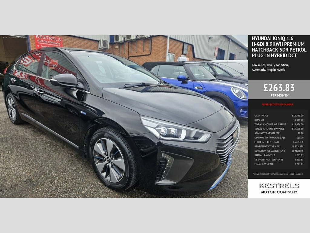 This 2018 Hyundai IONIQ h-GDi Premium presents an exceptional opportunity with its remarkably low mileage of just 26,600 miles. This Euro 6 compliant, 1.6 litre petrol plug in hybrid is presented in Premium trim and benefits from a full dealership service history and a clear vehicle history check, offering peace of mind alongside its impressive efficiency. It comes with a 3 month warranty for added security. Part exchange welcome, finance arranged The IONIQ h-GDi Premium is equipped with stylish 16 inch white alloy wheels and advanced LED headlights for enhanced visibility. For convenient charging, it includes both an emergency 3 pin connector charging cable and a 7 pin Type 2 charging cable. Furthermore, the ECO DAS ECO Driving Assistant System helps optimise your driving for maximum efficiency. This vehicle also sits in a low insurance group, indicating it is more economical to own and run compared to many similar vehicles. Part exchange welcome, finance arranged. 100 Percent MapCare Programme - 10 Years, 12V Power Outlet, 16in Alloy Wheels - White, ABS - Anti-Lock Brake System, Air Conditioning - Driver-Only Mode, Air Conditioning - Dual Zone Climate Con, Airbags - Front - Front Side - Curtain a, AP Acoustic Paint Coating, Arm Rest - Front with Storage, Automatic Dimming Rear View Mirror, Automatic Headlights with Dusk Sensor, Autonomous Emergency Brake, Bluetooth Connectivity, Bumper Accents, Centre Console - Tablet Storage, Charging Cable - 7 Pin Type 2, Charging Cable - Emergency 3 Pin Connect, Cruise Control - Smart Adaptive Speed Co, Cup Holders - Front, Daytime Running Lights - LED, Deadlocks, Door Mirror Puddle Lights, Door Mirrors - Body Colo