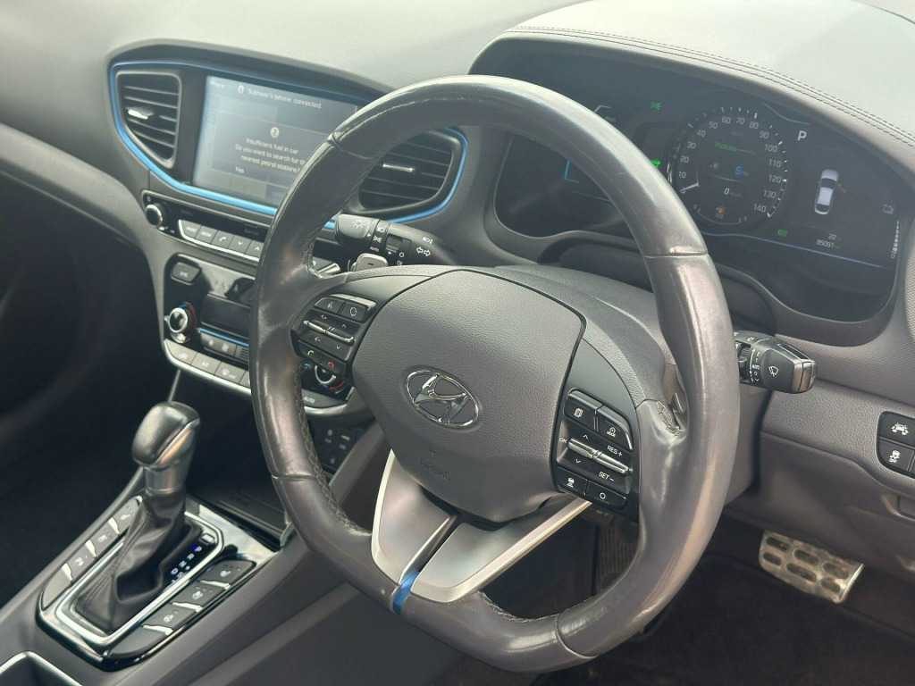 A STUNNING LOOKING EXAMPLE HYUNDAI IONIQ 1.6L H-GDI PREMIUM SE DCT EURO 6 (S/S) 5DR, CURRENT MOT WITHOUT ADVISORY, REAR VIEW CAMERA PARKING WITH GUIDANCE, CRUISE CONTROL, TOUCHSCREEN NAVIGATION, FULL LEATHER HEATED SEATS, CLIMATE CONTROL, KEYLESS START, MULTI FUNCTIONAL LEATHER FLAT STEERING WHEEL, AUX/BLUETOOTH CONNECTION, BLIND SPOT MONITORING, CAT N.THIS VEHICLE COMES WITH A 3 MONTH EXTENDED WARRANTY COVERING ALL MECHANICAL AND ELECTRICAL PARTS. THIS NATIONWIDE COVER INCLUDES PARTS AND LABOUR. EYE GREEN CARS IS A REPUTABLE, FAMILY-OWNED BUSINESS WITH MANY YEARS OF EXPERIENCE IN BRINGING THE VERY BEST IN USED, PREMIUM CARS. WE WILL VENTURE TO FIND ANY VEHICLE TO SUIT YOUR BUDGET AND REQUIREMENTS. OUR HELPFUL STAFF IS AT HAND TO DELIVER FIRST CLASS CUSTOMER SERVICE AND MAKE THE PURCHASE OF YOUR USED CAR SIMPLE. WE PRIDE OURSELVES ON OUR CUSTOMER CARE AND OFFER AN EXCEPTIONAL PERSONAL SERVICE. PRIOR TO SALE, OUR QUALIFIED TEAM WILL FULLY INSPECT VEHICLES TO MAKE SURE THEY ARE ROAD WORTHY. ALL VEHICLES ARE HPI/FINANCE CLEAR. FOR PEACE OF MIND, 3-24 MONTH WARRANTIES ARE AVAILABLE COVERING ALL ELECTRICAL/MECHANICAL ISSUES AND INCLUDE A NATIONAL REPAIR NETWORK, PARTS, LABOUR AND VAT. MOT RENEWAL CAN BE DISCUSSED AT TIME OF SALE. WE ARE OPEN TO DISCUSSING PART-EXCHANGE ON OUR VEHICLES. PRICES ON THE FORECOURT WILL BE CONSIDERED WHEN AGREEING A PART-EXCHANGE VALUATION. PRICES VARY FROM ONLINE AND FORECOURT. FINANCE IS AVAILABLE THROUGH A RANGE OF COUNTRYWIDE BROKERS WHO PROVIDE YOU WITH COMPETITIVE, AFFORDABLE RATES. NATIONWIDE DELIVERY CAN BE REQUESTED AT A COST OF £1.50 PER MILE. WE ACCEPT ALL MAJOR DEBIT/CREDIT CARDS. PLEASE FEEL FREE TO VIEW OUR EXTENSIVE RANGE OF VEHICLES ON OUR WEBSITE AND CALL/EMAIL US TO BOOK AN APPOINTMENT AND ARRANGE A TEST DRIVE. THE ADDRESS IS EYE GREEN INDUSTRIAL ESTATE, 1 CROWLAND ROAD, PETERBOROUGH, PE6 7TN AND THE WEBSITE IS WWW.EYEGREENCARS.COM. 100 Percent MapCare Programme - 10 Years of Map Updates, 12V Power Outlet, 15in Alloy Wheels with Aerodynamic Wheel Trims, ABS - Anti-Lock Brake System, Air Conditioning - Driver-Only Mode, Air Conditioning - Dual Zone Climate Control, Airbags - Front - Front Side - Curtain and Drivers Knee, Alloy Pedals, Arm Rest - Front with Storage, Automatic De-Fog System for Front Windscreen, Automatic Dimming Rear View Mirror, Automatic Headlights with Dusk Sensor, Automatic Windscreen Wipers with Rain Sensor, Autonomous Emergency Brake, Blind Spot Detection System - BSD, Bluetooth Connectivity, Bumper Accents, Centre Console - Tablet Storage, Cruise Control - Smart Adaptive Speed Control, Cup Holders - Front, Daytime Running Lights - LED, Deadlocks, Door Mirror Puddle Lights, Door Mirrors - Body Coloured, Door Mirrors - Power Folding, Door Scuff - Chrome with IONIQ Logo, Drive Mode Select - Gear Lever, Drivers Seat - Ventilated, Drivers Seat Electric Adjustments, Drivers Seat with Memory Function, Drivers Supervision Instrument Cluster with TFT Display - 7in, Electric Power Steering with Variable Drive Modes, Electric Windows - Front and Rear, Electric Windows - Front with Anti-Trap and One Touch Controls, Electronic Stability Control - ESC, Exterior Door Handles - Body Coloured with Chrome Insert, Fog Lights - LED Rear, Front Head Restraints - Vertical and Horizontal Adjustment, Front Passenger Airbag De-Activation Switch, Front Passengers Seat - Heated, Front Passengers Seat - Ventilated, Front Seat Back Pockets - Drivers Seat, Front Seat Back Pockets - Passengers Seat, HAC - Hill-Start Assist Control, Head Restraints - Rear with Vertical Adjustment, Headlights - Bi-Xenon, Heated Rear Windscreen, Heated Steering Wheel, Indicator Lights - Door Mirror - LED, Interior Colour-Coded Seat and Trim Accents, Interior Door Handles - Chrome Effect, Interior Light - Centre, Interior Light - Luggage Compartment, Interior Light - Map Reading Lights, Lane Departure Warning System with Lane Keeping Assist, Leather Wrapped Steering Wheel, Luggage Net, Paddle Shift Gear Change, Parking Brake - Foot, Parking Sensors - Front and Rear, Parking System - Rear Camera and Guidance System, Passenger Seat Height Adjustment - Manual, Phone Connection - Android Auto, Phone Connection - Apple CarPlay, Positioning Lights LED, Radiator Grille - Active Air Flap, Radiator Grille - Gloss Black with Chrome Inserts, Radio - RDS and Digital Radio - DAB, Rear Air Vents in Centre Console, Rear Bumper - Two-Tone, Rear Cross Traffic Alert - RCTA, Rear Lights - LED, Rear Seats Outer - Heated, Rear Spoiler with Integral LED Brake Light, Rear View Parking Camera with Parking Guidance System, Seats - Drivers Electric Lumbar Support, Seats - Heated Drivers, Side Body Moulding, Smart Key - Keyless Entry with Engine Start-Stop Button, Solar Glass with Windscreen Shade Band, Spare Wheel - Emergency Space Saver - Steel, Speakers - Upgraded Infinity Sound System - 1 Centre - 2 Tweeters - 2 Front - 2 Rear - 1 Subwoofer and 1 Ext. Amp, Split Folding Rear Seats - 60-40, Steering Wheel with Audio - Phone and Cruise Controls, Sun Visors with Driver and Passenger Illuminated Vanity Mirrors, Sunglasses Holder, Touchscreen Satellite Navigation - 8in, Tyre Pressure Monitoring System with Individual Tyre Display, USB - Drivers Arm Rest - Charging Only, USB and AUX Connections - Front, Window Surround - Chrome Finish, Windscreen Washer Fluid Sensor and Warning Indicator, Wireless Phone Charging Pad.