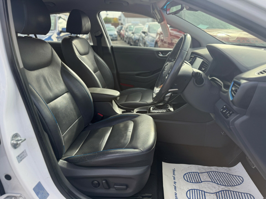 AUTOMATIC! HYBRID ! FULL SERVICE HISTORY WITH THE BENEFIT OF 9 SERVICE STAMPS FULL LEATHER DUAL ZONE AUTOMATIC CLIMATE CONTROL CRUISE CONTROL AUTOMATIC LIGHTS AND WIPERS DAB BLUETOOTH AUX IN ONLY £20 PER YEAR ROAD TAX! v power outlet, bluetooth connectivity, drivers supervision instrument cluster with tft display - 7in, infinity premium sound system, phone connection - android auto, phone connection - apple carplay, radio - rds and digital radio - dab, touchscreen satellite navigation - 8in, usb - drivers arm rest, usb and aux connections, wireless phone charging pad, 15in alloy wheels, door mirrors - body coloured, door mirrors - electric folding, door scuff - chrome with ioniq logo, electric rear windows, electric windows - front with anti-trap and one-touch controls, exterior door handles - chrome effect, heated rear windscreen, indicator lights - door mirror - led, positioning lights - c shape led, radiator grille - active air flap, rear bumper - two-tone, rear spoiler with integral led brake light, side body moulding, solar glass with windscreen shade band, space saver emergency spare wheel, window surround - chrome finish, abs - anti-lock brake system, airbags - front - front side - curtain and drivers knee, autonomous emergency brake, deadlocks, electronic stability control - esc, front passenger airbag de-activation switch, hac - hill-start assist control, parking brake - foot, rear cross traffic alert - rcta, remote central locking, smart key, air conditioning - driver-only mode, alloy pedals, arm rest - front with storage, automatic de-fog system for front windscreen, automatic dimming rear view mirror, automatic windscreen wipers with rain sensor, centre console - tablet storage, climate control - dual zone, cup holders - front, drivers seat - ventilated, drivers seat electric adjustments, front head restraints - vertical and horizontal adjustment, front passengers seat - heated, front passengers seat - ventilated, front seat back pockets - drivers seat, front seat back pockets - passengers seat, head restraints - rear with vertical adjustment, heated rear seats, heated steering wheel, interior door handles - chrome effect, interior light - centre, interior light - luggage compartment, interior light - map reading lights, leather effect glove box, leather wrapped steering wheel, luggage net, passenger seat height adjustment - manual, rear air vents in centre console, seats - drivers lumbar adjustment, seats - drivers memory, seats - heated drivers, split folding rear seats - 60-40, steering wheel with audio - phone and cruise controls, sun visors with driver and passenger illuminated vanity mirrors, sunglasses holder, automatic headlights with dusk sensor, daytime running lights - led, door mirror puddle lights, fog lights - led rear, headlights - bi-xenon, blind spot monitor, cruise control - adaptive, drive mode select - gear lever, electric power steering with variable drive modes, lane departure warning system with lane keeping assist, parking sensors - front and rear, rear view parking camera with parking guidance system, tyre pressure monitoring system - tpms, windscreen washer fluid sensor and warning indicator