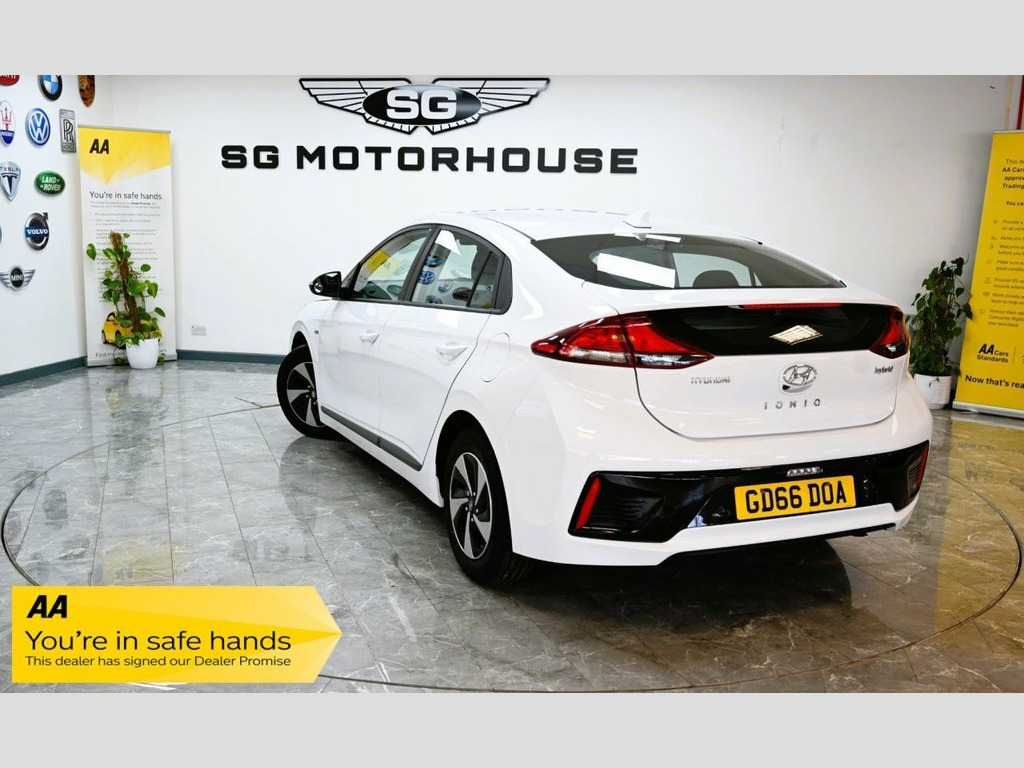 TOP SPEC - HYUNDAI IONIQ 1.6 h-GDi SE HYBRID / ULEZ # SERVICE HISTORY + 2 OWNERS FROM NEW + REVERSING CAMERA + PUSH START + LANE ASSIST + ADAPTIVE CRUISE CONTROL + HYUNDAI MULTIMEDIA SCREEN / BLUETOOTH / BT AUDIO / DAB RADIO / AUX + AUTOMATIC GEARBOX + CLIMATE CONTROL + ECO FRIENDLY + START/STOP TECHNOLOGY + ELECTRIC PARKING BRAKE + AUTO LIGHTS + STEERING CONTROLS + ELECTRIC DOOR MIRRORS + ALL ELECTRIC WINDOWS + ALLOYS WHEELS + FOG LIGHTS + REAR HEATED SCREEN ##### 12 MONTHS MOT # CHECKED & INSPECTED ##### FREE 6 MONTHS NATIONWIDE WARRANTY ( MECHANICAL & ELECTRICAL - PARTS AND LABOUR INCLUDED) +++ FREE 12 MONTHS AA BREAKDOWN COVER ##### 0% DEPOSIT FINANCE AVAILABLE #### ALL HPI CLEAR +++ ANY P/X WELCOME. Road Tax Opt, We accept all major CREDIT & DEBIT Cards, 5 Days Drive Away Insurance OPTIONAL, Located 21 High Street, Hoddesdon, EN11 8SX 12V Power Outlet, 15in Alloy Wheels, ABS - Anti-Lock Brake System, Air Conditioning - Driver-Only Mode, Airbags - Front - Front Side - Curtain a, Arm Rest - Front with Storage, Automatic Headlights with Dusk Sensor, Autonomous Emergency Brake, Bluetooth Connectivity, Centre Console - Tablet Storage, Climate Control - Dual Zone, Cruise Control - Adaptive, Cup Holders - Front, Daytime Running Lights - LED, Deadlocks, Door Mirrors - Body Coloured, Door Scuff - Standard Plate, Drive Mode Select - Gear Lever, Driver Seat Manual Adjustments, Drivers Supervision Instrument Cluster w, Electric Adjustment and Heated Door Mirr, Electric Power Steering with Variable Dr, Electric Rear Windows, Electric