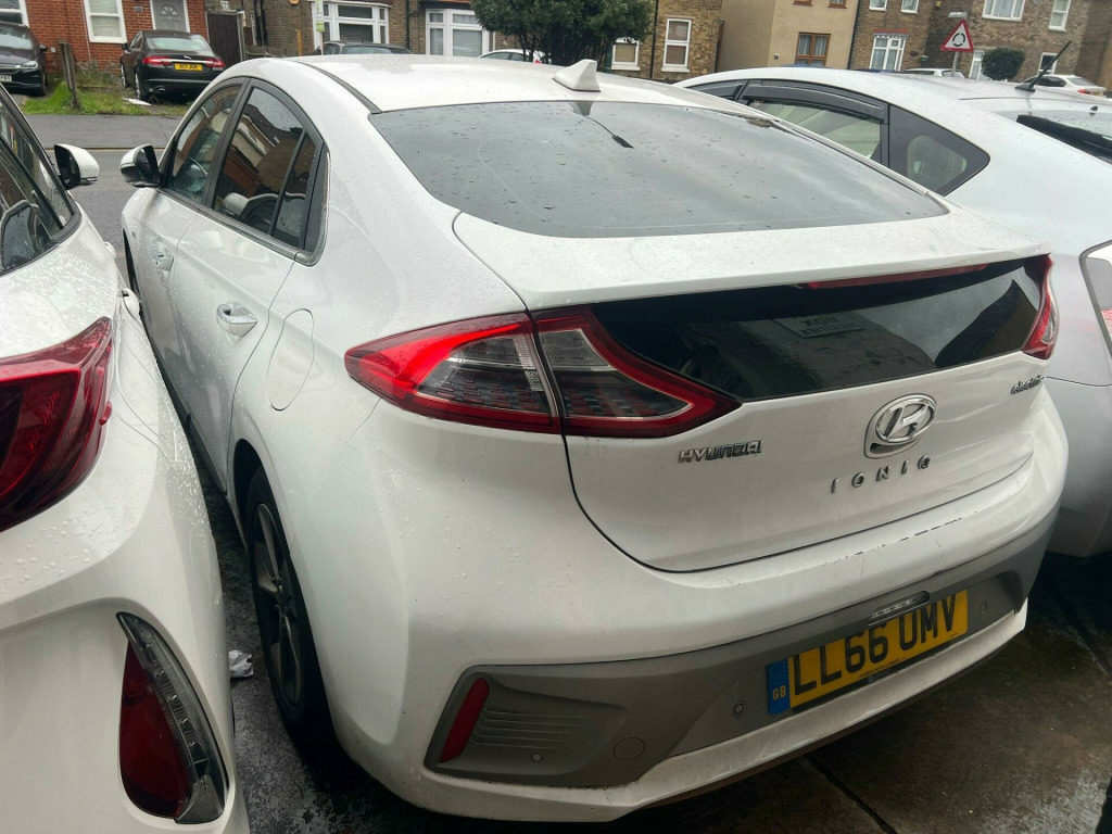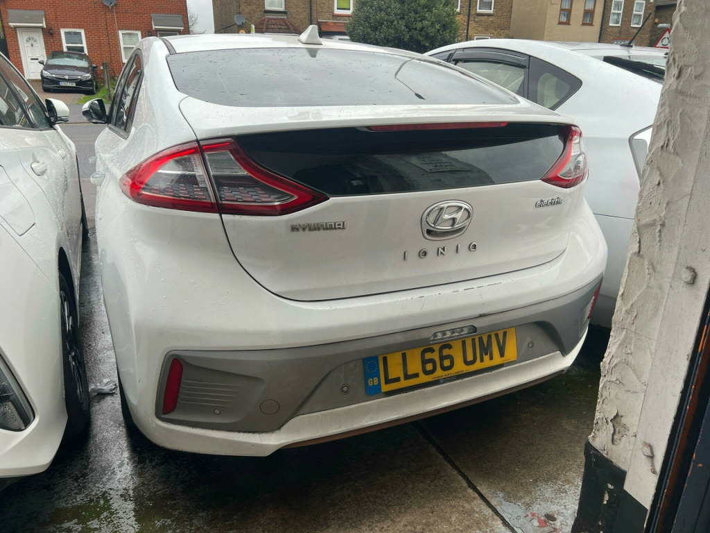Can be used for PCO Until December 2027Reduction box noise coming from CarThis 2016 Hyundai IONIQ Premium electric vehicle has been cherished by only two owners, offering a well maintained and cared for example of this popular model. As an electric variant, it boasts a 31 kWh battery with a maximum range of 174 miles when new, providing ample capability for daily commutes and longer journeys. Charging is convenient. This Premium trim level comes equipped with desirable features such as automatic headlights with a dusk sensor, LED headlights for enhanced visibility, and a wireless phone charging pad for effortless device power.Further enhancing the driving experience, this IONIQ Premium includes seamless smartphone integration with Android Auto, allowing you to access your favourite apps safely. For audiophiles, the Infinity Premium Sound System delivers an immersive listening experience. The generous boot space offers practicality for shopping trips or luggage. These highlights, combined with its efficient electric powertrain and thoughtful features, position this Hyundai IONIQ Premium as a compelling choice for those seeking a refined and well equipped electric car. v power outlet, 16in alloy wheels, abs - anti-lock brake system, air conditioning - driver-only mode, air conditioning - single zone climate control, airbags - front - front side - curtain and drivers knee, arm rest - front with storage, automatic dimming rear view mirror, automatic headlights with dusk sensor, automatic windscreen wipers with rain sensor, autonomous emergency brake, bluetooth connectivity, ccs combo rapid charge port - 50kw, centre console - tablet storage, charging cable - 7 pin type 2, charging cable - emergency 3 pin connector - iccb, cruise control - smart adaptive speed control with stop and go function, cup holders - front, daytime running lights - led, deadlocks, door mirror puddle lights, door mirrors - body coloured, door mirrors - electric folding, door scuff - chrome with ioniq logo, drive mode select - button, driver seat manual adjustments, drivers supervision instrument cluster with tft display - 7in, electric parking brake with auto hold function, electric power steering with variable drive modes, electric rear windows, electric windows - front with anti-trap and one-touch controls, electronic stability control - esc, exterior door handles - chrome effect, fog lights - led rear, front head restraints - vertical and horizontal adjustment, front passenger airbag de-activation switch, front passengers seat - heated, front seat back pockets - drivers seat, front seat back pockets - passengers seat, hac - hill-start assist control, head restraints - rear with vertical adjustment, headlights - led, heated rear windscreen, heated steering wheel, indicator lights - door mirror - led, infinity premium sound system, interior door handles - chrome effect, interior light - centre, interior light - luggage compartment, interior light - map reading lights, lane departure warning system with lane keeping assist, leather wrapped steering wheel, luggage net, parking sensors - rear, passenger seat height adjustment - manual, phone connection - android auto, phone connection - apple carplay, positioning lights - c shape led, radio - rds and digital radio - dab, rear air vents in centre console, rear bumper - two-tone, rear spoiler with integral led brake light, rear view parking camera with parking guidance system, remote central locking, seats - drivers lumbar adjustment, seats - heated drivers, side body moulding, smart key, solar glass with windscreen shade band, split folding rear seats - 60-40, steering wheel with audio - phone and cruise controls, sun visors with driver and passenger illuminated vanity mirrors, sunglasses holder, touchscreen satellite navigation - 8in, tyre pressure monitoring system - tpms, tyre repair kit, usb - drivers arm rest, usb and aux connections, window surround - chrome finish, windscreen washer fluid sensor and warning indicator, wireless phone charging pad
