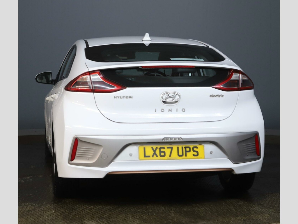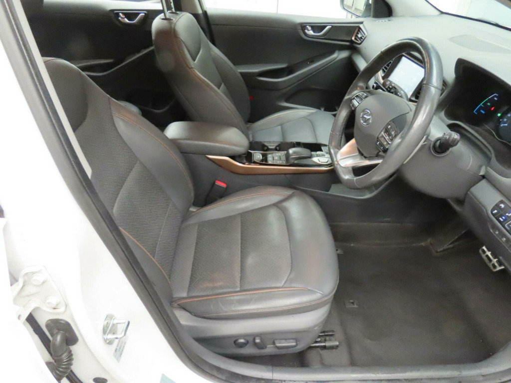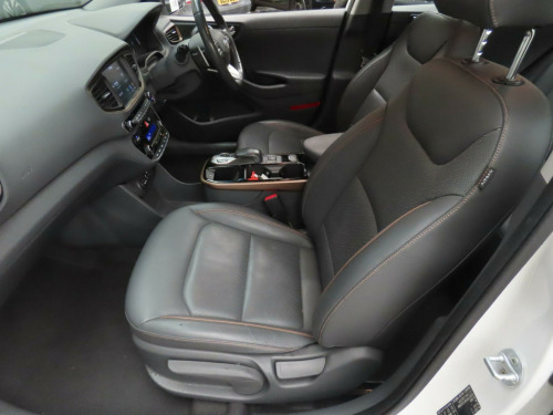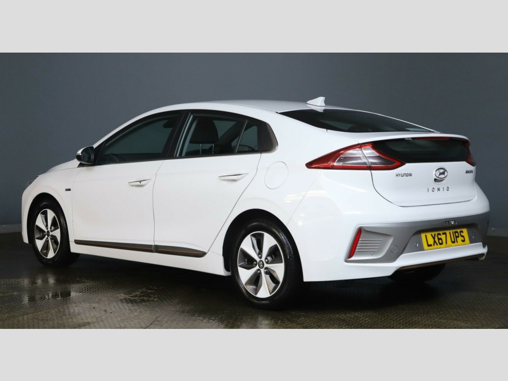 This 2017 Hyundai IONIQ Premium SE electric vehicle boasts a clear vehicle history and has had only two owners, offering peace of mind for its next keeper. As an electric model, it features a 31 kWh battery with a maximum range of 174 miles when new. Charging is convenient, with a full charge at home taking approximately 4 hours and 25 minutes using a 7kW charger, and a rapid charge to 80% achievable in just 22 minutes at a public charging station. This Premium SE trim comes equipped with Smart Adaptive Speed Control with Stop and Go Function, LED headlights for enhanced visibility, and a handy wireless phone charging pad.Further enhancing your driving experience, this IONIQ includes a rear view parking camera with a parking guidance system to assist with manoeuvres, and the driver's seat offers memory function for personalised comfort. The generous boot space provides ample room for luggage or shopping, making it a practical choice for everyday use. These features collectively demonstrate the superior specification of this particular IONIQ, setting it apart from other similar vehicles on the market.. 12V Power Outlet, 16in Alloy Wheels, ABS - Anti-Lock Brake System, Air Conditioning - Driver-Only Mode, Air Conditioning - Single Zone Climate Control, Airbags - Front - Front Side - Curtain and Drivers Knee, Alloy Pedals, Arm Rest - Front with Storage, Automatic De-Fog System for Front Windscreen, Automatic Dimming Rear View Mirror, Automatic Headlights with Dusk Sensor, Automatic Windscreen Wipers with Rain Sensor, Autonomous Emergency Brake, Blind Spot Monitor, Bluetooth Connectivity, CCS Combo Rapid Charge Port - 50kW, Centre Console - Tablet Storage, Charging Cable - 7 Pin Type 2, Charging Cable - Emergency 3 Pin Connector - ICCB, Cruise Control - Smart Adaptive Speed Control with Stop and Go Function, Cup Holders - Front, Daytime Running Lights - LED, Deadlocks, Door Mirror Puddle Lights, Door Mirrors - Body Coloured, Door Mirrors - Electric Folding, Door Scuff - Chrome with IONIQ Logo, Drive Mode Select - Button, Drivers Seat - Ventilated, Drivers Seat Electric Adjustments, Drivers Supervision Instrument Cluster with TFT Display - 7in, Electric Parking Brake with Auto Hold Function, Electric Power Steering with Variable Drive Modes, Electric Rear Windows, Electric Windows - Front with Anti-trap and One-touch Controls, Electronic Stability Control - ESC, Exterior Door Handles - Chrome Effect, Fog Lights - LED Rear, Front Head Restraints - Vertical and Horizontal Adjustment, Front Passenger Airbag De-Activation Switch, Front Passengers Seat - Heated, Front Passengers Seat - Ventilated, Front Seat Back Pockets - Drivers Seat, Front Seat Back Pockets - Passengers Seat, HAC - Hill-Start Assist Control, Head Restraints - Rear with Vertical Adjustment, Headlights - LED, Heated Rear Seats, Heated Rear Windscreen, Heated Steering Wheel, Indicator Lights - Door Mirror - LED, Infinity Premium Sound System, Interior Door Handles - Chrome Effect, Interior Light - Centre, Interior Light - Luggage Compartment, Interior Light - Map Reading Lights, Lane Departure Warning System with Lane Keeping Assist, Leather Effect Glove Box, Leather Wrapped Steering Wheel, Luggage Net, Parking Sensors - Front and Rear, Passenger Seat Height Adjustment - Manual, Phone Connection - Android Auto, Phone Connection - Apple CarPlay, Positioning Lights - C Shape LED, Radio - RDS and Digital Radio - DAB, Rear Air Vents in Centre Console, Rear Bumper - Two-Tone, Rear Cross Traffic Alert - RCTA, Rear Spoiler with Integral LED Brake Light, Rear View Parking Camera with Parking Guidance System, Remote Central Locking, Seats - Drivers Lumbar Adjustment, Seats - Drivers Memory, Seats - Heated Drivers, Side Body Moulding, Smart Key, Solar Glass with Windscreen Shade Band, Split Folding Rear Seats - 60-40, Steering Wheel with Audio - Phone and Cruise Controls, Sun Visors with Driver and Passenger Illuminated Vanity Mirrors, Sunglasses Holder, Touchscreen Satellite Navigation - 8in, Tyre Pressure Monitoring System - TPMS, Tyre Repair Kit, USB - Drivers Arm Rest, USB and AUX Connections, Window Surround - Chrome Finish, Windscreen Washer Fluid Sensor and Warning Indicator, Wireless Phone Charging Pad, 16in Alloy Wheels - Grey, Leather - Black. Full dealership history