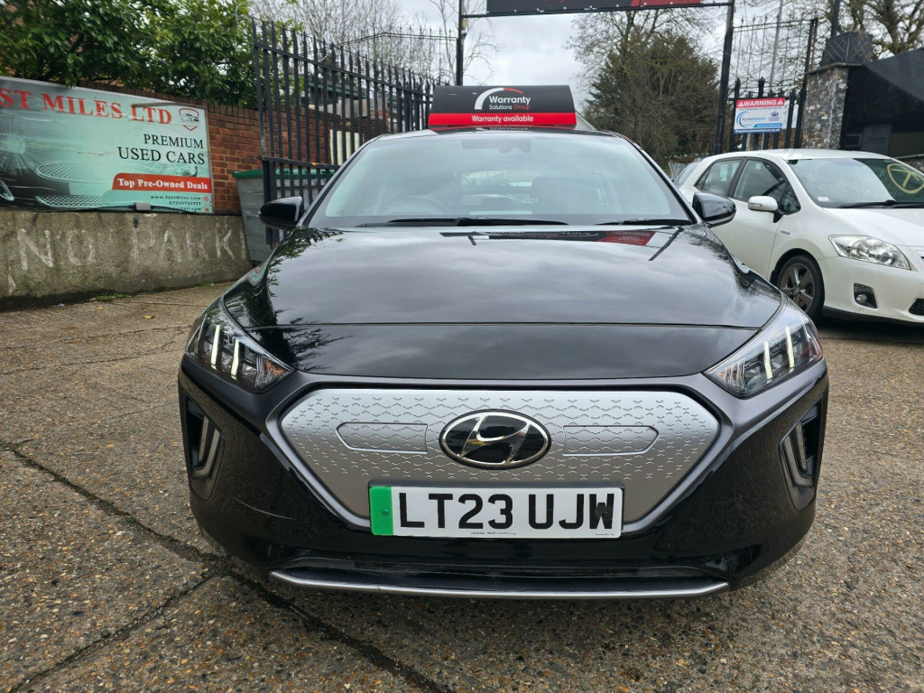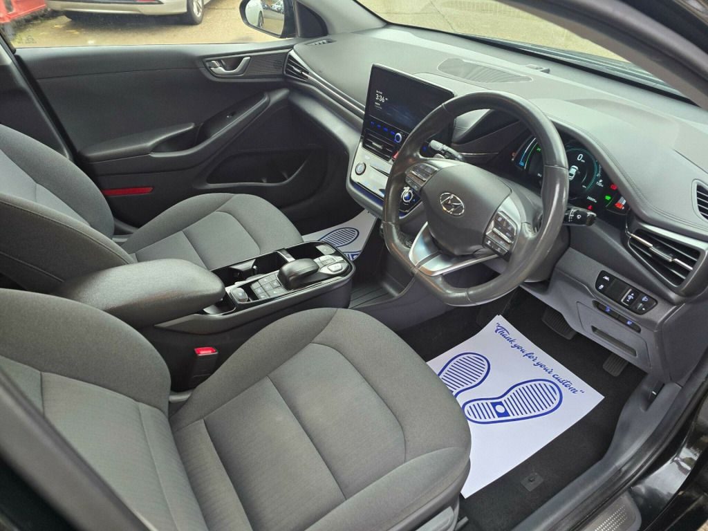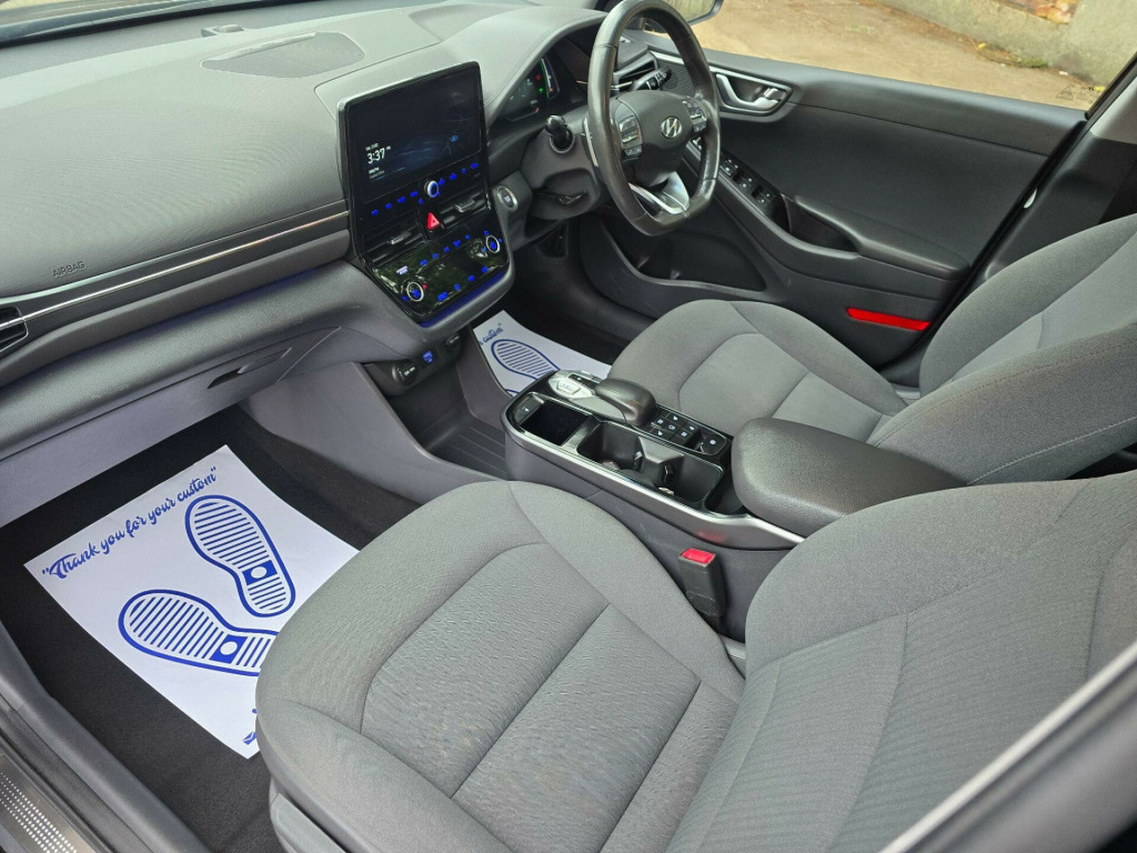 This 2023 Hyundai IONIQ Premium is a superb example, having had only one owner since new. This electric vehicle boasts a 43 kWh battery, offering a maximum range of 193 miles when fully charged. Recharging at home on a 7kW charger takes approximately 6 hours and 5 minutes, while rapid public charging can take you from empty to 80% in just 54 minutes.The Premium trim level comes equipped with a host of desirable features, including Bluetooth connectivity for seamless audio and calls, and a convenient wireless phone charging pad. You'll also appreciate the smart key system for keyless entry and push button start, along with full LED headlights for excellent visibility. For added comfort during colder journeys, this IONIQ features a heated steering wheel. Furthermore, the generous boot space provides ample room for your shopping or luggage, making it a practical choice for everyday use. .25in widescreen navigation with bluelink and mapcare, 100 percent mapcare programme - 10 years of map updates, 12v power outlet, 16in alloy wheels, abs - anti-lock brake system, air conditioning - driver-only mode, air conditioning - single zone climate control, airbags - front - front side - curtain and drivers knee, arm rest - front with storage, automatic de-fog system for front windscreen, automatic dimming rear view mirror, automatic headlights with dusk sensor, automatic windscreen wipers with rain sensor, autonomous emergency brake, bluetooth connectivity, bumper accents, ccs combo rapid charge port - 50kw, centre console - tablet storage, charging cable - 7 pin type 2, charging cable - emergency 3 pin connector - iccb, cruise control - smart adaptive speed control with stop and go function, cup holders - front, daytime running lights - led, deadlocks, door mirror puddle lights, door mirrors - body coloured, door mirrors - electric adjustment and heated with power fold, door scuff - chrome with ioniq logo, drive mode select - button, driver attention alert - daa, drivers seat height adjustment - manual, drivers supervision instrument cluster with tft display - 7in, electric parking brake with auto hold function, electric power steering with variable drive modes, electric windows - front and rear, electric windows - front with anti-trap and one touch controls, electronic stability control - esc, exterior door handles - body coloured, fog lights - led rear, front head restraints - vertical and horizontal adjustment, front passenger airbag de-activation switch, front passengers seat - heated, front seat back pockets - drivers seat, front seat back pockets - passengers seat, hac - hill-start assist control, head restraints - rear with vertical adjustment, headlights - full led, heated rear windscreen, heated steering wheel, high beam assist, indicator lights - door mirror - led, interior door handles - chrome effect, interior light - centre, interior light - luggage compartment, interior light - map reading lights, lane departure warning system with lane keeping assist, leather wrapped steering wheel, luggage net, parking sensors - rear, parking system - rear camera and guidance system, passenger seat height adjustment - manual, phone connection - android auto, phone connection - apple carplay, positioning lights led, radiator grille - true grey dedicated grille, radio - rds and digital radio - dab, rear air vents in centre console, rear bumper - two-tone, rear lights - led, rear spoiler with integral led brake light, rear view monitor, regenerative brake shift paddles, remote central locking, seats - drivers electric lumbar support, seats - heated drivers, side sill moulding, smart key - keyless entry with engine start-stop button, solar glass with windscreen shade band, speakers - infinity sound system - 1 centre - 2 tweeters - 2 front - 2 rear - 1 subwoofer and 1 ext. amp, split folding rear seats - 60-40, steering wheel with audio - phone and cruise controls, sun visors with driver and passenger illuminated led vanity mirrors, sunglasses holder, tyre pressure monitoring system with individual tyre display, tyre repair kit, usb - drivers arm rest - charging only, usb connection - centre console, window surround - chrome finish, windscreen washer fluid sensor and warning indicator, wireless phone charging pad, ecall
