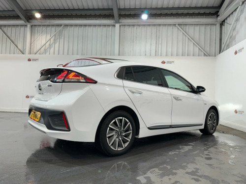 Hyundai Ioniq 38.3kWh Premium Hatchback 5dr Electric Auto (136ps). Two-owner car supplied with two keys and a service history recorded at 10,000 and 19,000 miles. This well-presented Ioniq Premium delivers smooth, zero-emission electric performance with excellent comfort, refinement and efficiency. The specification includes alloy wheels, reverse camera, Infinity sound system, privacy glass, rear parking sensors, keyless start, power-folding door mirrors, automatic headlights, digital dashboard, heated front seats, DAB radio, Bluetooth connectivity, satellite navigation and cruise control. A stylish and well-equipped electric hatchback offering technology, economy and comfort in equal measure. 100 Percent MapCare Programme - 10 Years, 12V Power Outlet, 16in Alloy Wheels, ABS - Anti-Lock Brake System, Air Conditioning - Driver-Only Mode, Air Conditioning - Dual Zone Climate Con, Airbags - Front - Front Side - Curtain a, Arm Rest - Front with Storage, Automatic Dimming Rear View Mirror, Automatic Headlights with Dusk Sensor, Autonomous Emergency Brake, BlueLink, Bluetooth Connectivity, Centre Console - Tablet Storage, Charging Cable - 7 Pin Type 2, Charging Cable - Emergency 3 Pin Connect, Cruise Control - Smart Adaptive Speed Co, Cup Holders - Front, Daytime Running Lights - LED, Deadlocks, Door Mirror Puddle Lights, Door Mirrors - Body Coloured, Door Mirrors - Electric Adjustment
