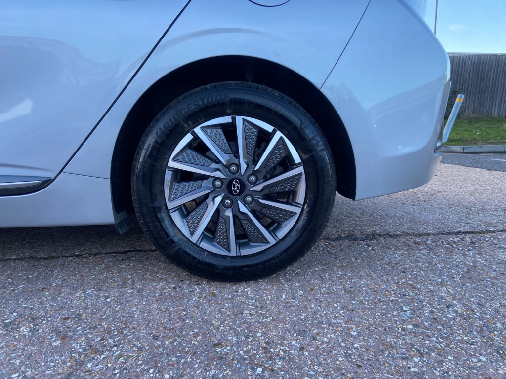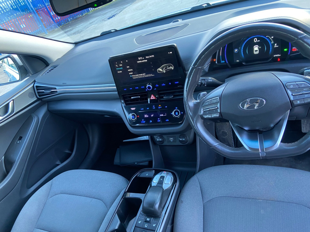 .25in widescreen navigation with bluelink and mapcare, 100 percent mapcare programme - 10 years of map updates, 12v power outlet, bluetooth connectivity, ccs combo rapid charge port - 50kw, drivers supervision instrument cluster with tft display - 7in, phone connection - android auto, phone connection - apple carplay, radio - rds and digital radio - dab, speakers - infinity sound system - 1 centre - 2 tweeters - 2 front - 2 rear - 1 subwoofer and 1 ext. amp, usb - drivers arm rest - charging only, usb connection - centre console, wireless phone charging pad, ecall, 16in alloy wheels, bumper accents, door mirrors - body coloured, door mirrors - electric adjustment and heated with power fold, electric windows - front and rear, exterior door handles - body coloured, heated rear windscreen, indicator lights - door mirror - led, positioning lights led, radiator grille - true grey dedicated grille, rear bumper - two-tone, rear spoiler with integral led brake light, side sill moulding, solar glass with windscreen shade band, tyre repair kit, window surround - chrome finish, abs - anti-lock brake system, airbags - front - front side - curtain and drivers knee, autonomous emergency brake, deadlocks, electric parking brake with auto hold function, electric windows - front with anti-trap and one touch controls, electronic stability control - esc, front passenger airbag de-activation switch, hac - hill-start assist control, remote central locking, smart key - keyless entry with engine start-stop button, air conditioning - driver-only mode, air conditioning - single zone climate control, arm rest - front with storage, automatic de-fog system for front windscreen, automatic dimming rear view mirror, automatic windscreen wipers with rain sensor, centre console - tablet storage, cup holders - front, door scuff - chrome with ioniq logo, drivers seat height adjustment - manual, front head restraints - vertical and horizontal adjustment, front passengers seat - heated, front seat back pockets - drivers seat, front seat back pockets - passengers seat, head restraints - rear with vertical adjustment, heated steering wheel, interior door handles - chrome effect, interior light - centre, interior light - luggage compartment, interior light - map reading lights, leather wrapped steering wheel, luggage net, passenger seat height adjustment - manual, rear air vents in centre console, rear view monitor, regenerative brake shift paddles, seats - drivers electric lumbar support, seats - heated drivers, split folding rear seats - 60-40, steering wheel with audio - phone and cruise controls, sun visors with driver and passenger illuminated led vanity mirrors, sunglasses holder, automatic headlights with dusk sensor, daytime running lights - led, door mirror puddle lights, fog lights - led rear, headlights - full led, high beam assist, rear lights - led, charging cable - 7 pin type 2, charging cable - emergency 3 pin connector - iccb, cruise control - smart adaptive speed control with stop and go function, drive mode select - button, driver attention alert - daa, electric power steering with variable drive modes, lane departure warning system with lane keeping assist, parking sensors - rear, parking system - rear camera and guidance system, tyre pressure monitoring system with individual tyre display, windscreen washer fluid sensor and warning indicator