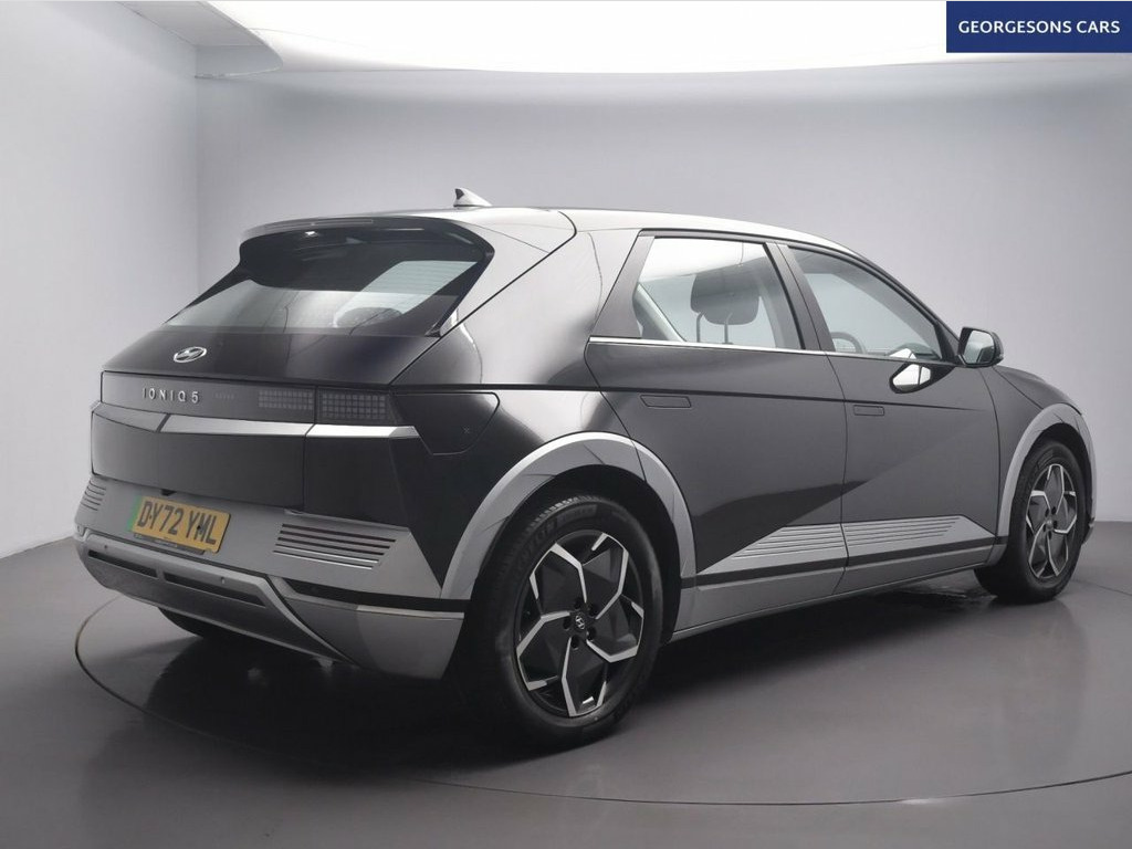Powered by a 58kWh electric motor this Hyundai Ioniq 5 Premium Hatchback achieves 0-62mph in 8.5 seconds and up to 240 miles of battery range with a single-speed automatic, delivering smooth and zero-emission performance for city commutes and long journeys. The Premium trim, positioned above Advance but below Ultimate, equips this electric SUV with sleek styling and advanced technology for a refined drive. With one owner and two services, this Ioniq 5 is in pristine condition, ready for any journey. Navigate effortlessly with satellite navigation, a reverse camera, and front and rear parking sensors, while Apple CarPlay, Bluetooth, and DAB radio provide seamless connectivity through a 12.3-inch touchscreen. Dual-zone climate control, electric heated front seats, and a heated steering wheel ensure a luxurious cabin, complemented by selectable drive modes and adaptive cruise control with lane assist for confident and versatile driving. The 527-litre boot and sleek five-door hatchback design complete this high-spec electric SUV. With a meticulous service record and cutting-edge features, this Hyundai Ioniq 5 Premium awaits your test drive. Contact us today to experience this electrifying SUV! IONITY - Via Charge myHyundai App (1 Yea