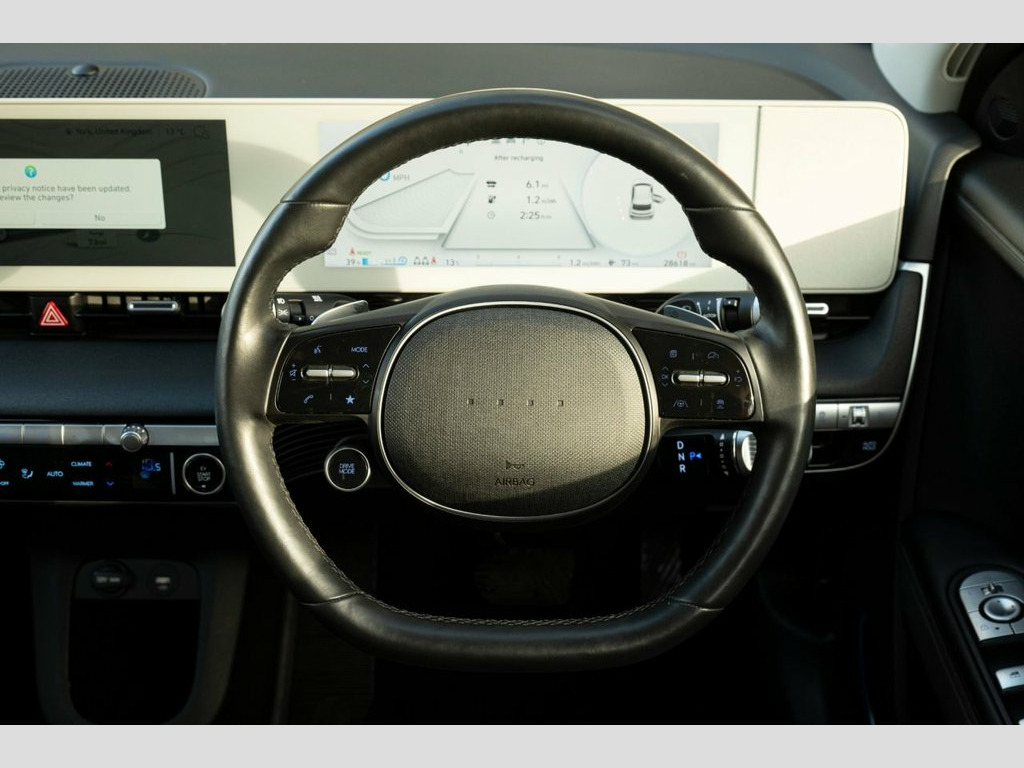 Prestige Car Supermarket in York presents this highly specified and efficient 2023 Hyundai Ioniq 5 58kWh Premium Hatchback. Finished in Atlas White non-metallic paintwork, a factory option costing £350.00, and featuring a contemporary Black Shadow Part Leather interior, this automatic electric vehicle offers smooth performance and a comfortable drive. It rides on 19in alloy wheels and features Tinted Rear Windows and Flush Manual Exterior Door Handles for a clean, modern aesthetic. Key features include the V2L Vehicle-to-Load system, allowing it to power external devices, and a 10.5 kWh 3 Phase On Board Charger. Illumination is provided by Dual LED Low and High Projection Headlamps and LED Positioning Lights. Step inside the highly appointed cabin to find Heated Front Seats, Electric Adjustable Driver's Seat with Electric Lumbar Support, a Heated Leather Steering Wheel, and Dual Zone Climate Control. Technology is cutting-edge with a large 12.3in Touchscreen Satellite Navigation and Media Centre, a 12.3in Drivers Supervision Instrument Cluster, a Surround View Monitor, and Ambient Lighting with 64 Colours. Convenience is a priority with Smart Keyless Entry, Smart Electric Tailgate, Front and Rear Parking Distance Warning, and an Electric Parking Brake with Auto Hold. Safety and driver assistance systems are extensive, including Highway Drive Assist Level 1.5, Smart Cruise Control with Stop and Go, Blind Spot Collision Avoidance Assist (BCA), and Forward Collision A Part Leather - Black Shadow, Atlas White, 10.5 kWh 3 Phase On Board Charger - OBC, 12.3in Touchscreen Satellite Navigation , 12V Power Outlet in Front Console, 19in Alloy Wheels, ABS - Anti-Lock Brake System, Air Conditioning - Climate Control - Dua, Airbag - Front Passenger De-Activation S, Airbags - Driver, Airbags - Front Centre Side, Airbags - Front Passenger, Airbags - Front Thorax - Pelvis and Curt, Alarm - Thatcham Category 1, Ambient Lighting - 64 Colours, Automatic Windscreen Wipers with Rain Se, Battery Heating System, Blind Spot Collision Avoidance Assist - , Blind Spot View Monitor, Bluelink - Connected Car Services and Li, Bluetooth Connectivity with Voice Recogn, CCS Combo Rapi