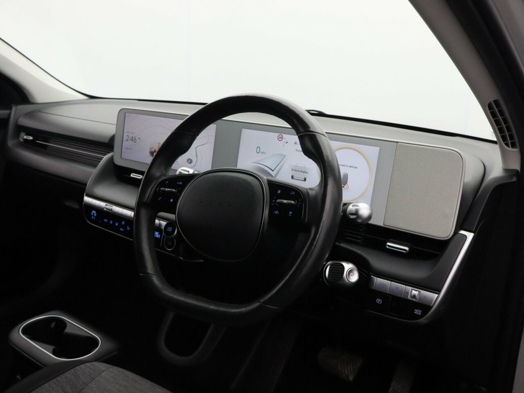This 2021 Hyundai IONIQ 5 Premium boasts a full dealership service history and has had only one owner from new, ensuring excellent provenance. This electric vehicle features a substantial 73 kWh battery, offering a maximum range of 298 miles when new. For convenience, it can be fully charged at home using a 7kW charger in approximately 10 hours and 53 minutes, while rapid public charging can take it from empty to 80% in a swift 17 minutes. The car is equipped with dual LED headlamps, parking distance warning sensors front and rear, and blind spot collision avoidance assist for enhanced safety and awareness. Inside, you'll find heated rear outer seats for passenger comfort and phone connectivity with Apple CarPlay. The IONIQ 5 Premium stands out with its impressive 298 mile maximum range, indicating its capability for longer journeys compared to many other electric vehicles. Its large boot space provides ample room for luggage or shopping, making it a practical choice for families or those who need extra storage. The vehicle's MOT is long, offering peace of mind for the next owner. This combination of extensive range, generous practicality, and comprehensive features makes this IONIQ 5 a compelling option in the electric car market. 12.3in Touchscreen Satellite Navigation , 12V Power Outlet - Front Console, BlueLink, Bluetooth Connectivity with Voice Recogn, CCS Combo Rapid Charge Port - 50kW, Drivers Supervision Instrument Cluster w, eCall, MapCare Programme - 3 Years of Map Updat, Phone Connection - Android Auto, Phone Connection - Apple CarPlay, Speakers - 2 Front - 2 Rear, Trailer Wiring Package, USB Charging Ports - 2 Front, USB Connectivity Port - 1 Front, Wireless Phone Charging Pad, 19in Alloy Wheels, Door Mirrors - Black, Door Mirrors - Electric Adjustment - Fol, Door Scuff - Standard Plate, Electric Windows - Front and Rear with A, Exterior Door Handles - Body Coloured, Exterior Door Handles - Flush, Headlamp