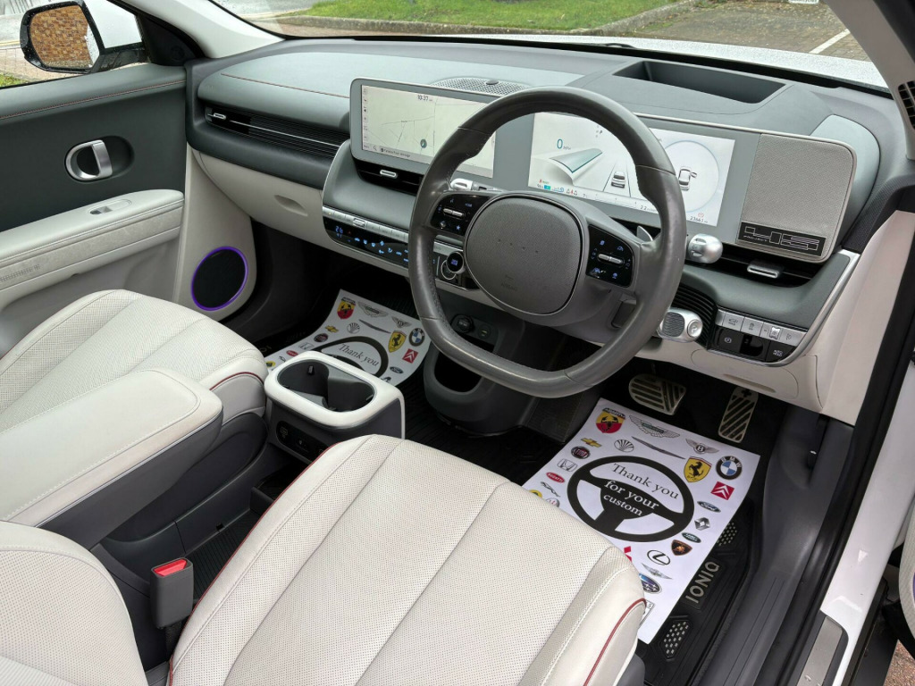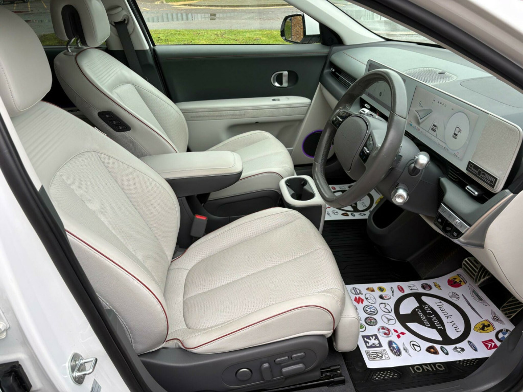 ONE OWNER *** PROJECT 45 *** FULL HYUNDAI HISTORY oth with leather facings - moonlight grey, 12.3in touchscreen satellite navigation and media centre, 12v power outlet - front console, 20in alloy wheels, a-b-c pillar trim - cloth, abs - anti-lock brake system, air conditioning - dual zone climate control, airbag - front passenger deactivation switch, airbag - front thorax and pelvis - curtain, airbags - driver, airbags - front centre side, alarm - thatcham category 1, alloy pedals, alternator management system - ams, automatic windscreen wipers with rain sensor, battery heating system, blind spot collision avoidance assist, blind spot view monitor, bluelink, bluetooth connectivity with voice recognition, ccs combo rapid charge port - 50kw, central locking - remote control, centre console - sliding, charging cable - 7 pin type 2, charging cable - emergency 3 pin connector - iccb, child lock - powered-auto, cup holders - front, daytime running lights - led, digital clock, door mirrors - electric adjustment - folding and heated, door mirrors - high gloss, door scuff - deluxe plate, drive mode select, drivers seat height adjustment - electric, drivers seat lumbar support - electric, drivers supervision instrument cluster with full tft display - 12.3in, dual led headlamps with low-high projection, electric parking brake with auto hold function, electric windows - front and rear with anti-trap mechanism and one touch control, electronic stability control - esc, exterior door handles - body coloured, exterior door handles - flush auto, fog lights - led rear, forward collision avoidance assist - car - pedestrian - cycle, forward collision-avoidance assist - junction turning-crossing, front passengers seat electric adjustments, front passengers seat lumbar support - electric, front seat back pockets - driver and passenger seat, front seats - premium relaxation seats - driver and passenger, front ventilated seats, frunk - under the bonnet storage, head restraints - vertical adjustment - second row outer, head restraints - vertical and horizontal adjustment - front, head up display - hud, headlamp surround, headlights - smart high beam, heat pump, heated front seats, heated rear - outer - seats, heated steering wheel, highway drive assist - level 2, hill-start assist control hac, ionity - via charge myhyundai app (2 years subscription from new), isofix child seat anchorage points - front passenger seat, isofix child seat anchorage points - rear - outer rear, immobiliser, indicator lights - door mirror, inside rear view mirror - electrochrome, intelligent speed limit assist - isla, interior door handles - metal paint effect, interior light - luggage compartment, interior mood lighting, led rear combination lights, lane follow assist - lfa, lane keep assist - lka, luggage cover, luggage hooks, mapcare programme - 3 years of map updates, parking distance warning - pdw - forward-reverse, parking system - parking collision avoidance assist - reverse - rcta, parking system - surround view monitor, phone connection - android auto, phone connection - apple carplay, positioning lights - led, power assisted steering, power outlet - one in boot, privacy glass - rear windows, rear occupancy alert, rear seats - sliding - electric, rear spoiler with integrated led brake light, rear view monitor with dynamic parking guidance, rear windscreen - heated and privacy, regenerative brake shift paddles, remote smart parking assist, roof - solar roof - dual side contact cell, roof trim - cloth, seatbelts - height adjustable driver and front passenger, seats - memory seats driver and front passenger, side body moulding - chrome, side sill moulding - anthracite, smart cruise control with stop and go, smart electric tailgate - hands free opening function, smart key - keyless entry with engine start-stop button, speakers - bose premium audio - 7 speakers - 1 subwoofer, split folding rear seats - 60-40, steering column - height and reach adjustable, steering wheel - audio controls, steering wheel - leather, sun visors - with driver and passenger illuminated vanity mirrors and driver ticket holder, tailgate - up lift opening, trailer wiring package, tyre pressure monitoring system (tpms) with individual tyre pressure warning, tyre repair kit, usb charging ports - 2 front, usb connectivity port - 1 front, v2l - vehicle to load - inside, v2l - vehicle to load - outside, v2l adaptor, windows - front and rear - laminated glazing, windscreen auto defog system, windscreen wipers with aero wiper blade, windscreen and front windows - solar glass, windscreen with acoustic film, wireless phone charging pad, ecall