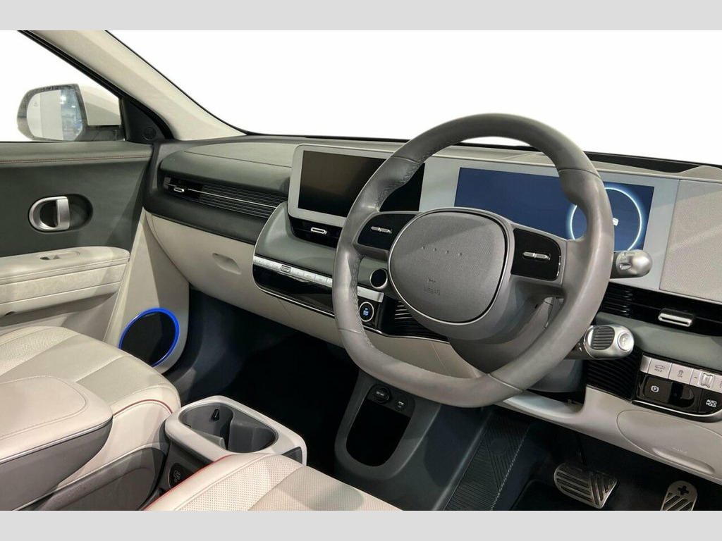 This 2021 Hyundai IONIQ 5 Project 45 is a standout electric vehicle with a clear vehicle history check and an MOT valid until September 2026. As a four wheel drive model, it offers a 73 kWh battery with a maximum range of 268 miles when new. This impressive electric car also features a suite of advanced driver aids, including Blind Spot Collision Avoidance Assist and Blind Spot View Monitor, both incorporating Blind Spot Assistance. For added comfort, it boasts a heated steering wheel and Smart Cruise Control with Stop and Go functionality, which is an adaptive cruise control system. The IONIQ 5 is equipped with Dual LED Headlamps for excellent visibility. Experience the thrill of rapid acceleration with this IONIQ 5, reaching 0-60mph in just 5.2 seconds, a notable performance advantage over many similar vehicles. Charging is convenient, with a full charge at home taking approximately 10 hours and 53 minutes using a 7kW charger, while the fastest public charging can take you from empty to 80% in a swift 17 minutes. This electric Hyundai also offers generous boot space, making it practical for everyday use and longer journeys. 12.3in Touchscreen Satellite Navigation , 12V Power Outlet - Front Console, 20in Alloy Wheels, A-B-C Pillar Trim - Cloth, ABS - Anti-Lock Brake System, Air Conditioning - Dual Zone Climate Con, Airbag - Front Passenger Deactivation Sw, Airbag - Front Thorax and Pelvis - Curta, Airbags - Driver, Airbags - Front Centre Side, Alarm - Thatcham Category 1, Alloy Pedals, Alternator Management System - AMS, Atlas White, Automatic Windscreen Wipers with Rain Se, Battery Heating System, Blind Spot Collision Avoidance Assist, Blind Spot View Monitor, BlueLink, Bluetooth Connectivity with Voice Recogn, CCS Combo Rapid Charge Port - 50kW, Central Locking - Remote Control, Centre Console - Sliding, Charg