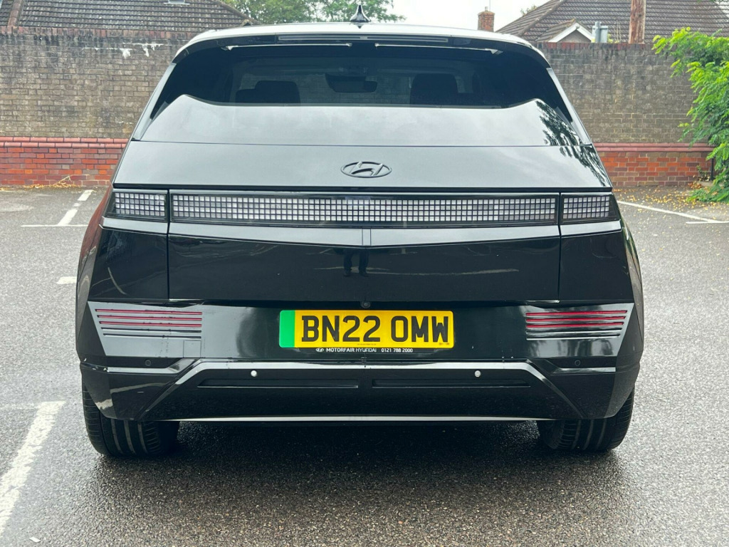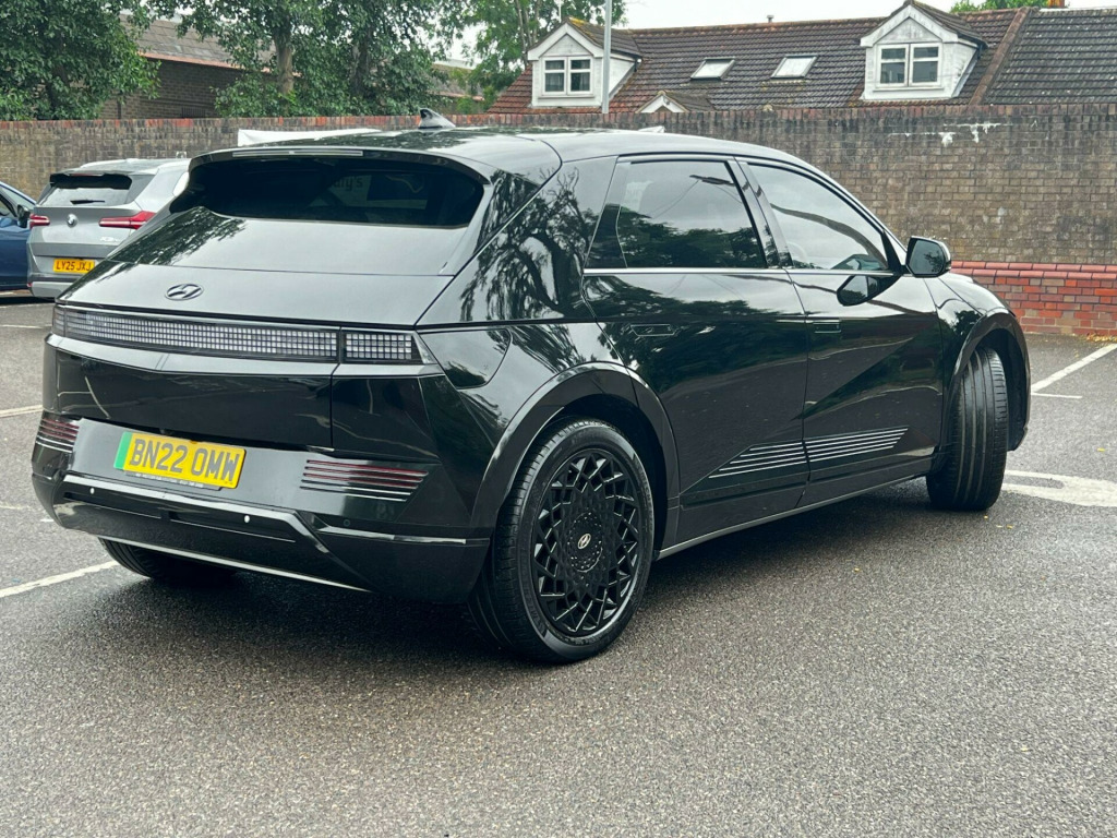 With only one previous owner, this 2022 Hyundai IONIQ 5 Ultimate is an excellent choice. This electric vehicle boasts a 73 kWh battery, offering a manufacturer-quoted range of up to 280 miles when new. The Ultimate trim comes packed with features, including a Rear View Monitor with Dynamic Parking Guidance, making parking a breeze. Dual LED Headlamps provide excellent visibility, while heated front seats ensure comfort on colder days. Stay connected with the wireless phone charging pad and enjoy the convenience of keyless entry with the engine start-stop button. For peace of mind, this IONIQ 5 comes with 12 months MOT and a clear vehicle history check.The large boot space makes this car a practical choice, offering more room than similar vehicles in its class. Charging at home using a 7kW charger takes approximately 10 hours and 53 minutes, while the fastest public charging can take the battery from empty to 80% in just 17 minutes. Acceleration from 0-62mph takes only 7.4 seconds, demonstrating its responsive performance. This Hyundai IONIQ 5 Ultimate combines convenience, technology, and efficiency in one stylish package.. 12.3in Touchscreen Satellite Navigation and Media Centre, 12V Power Outlet - Front Console, 20in Alloy Wheels, A-B-C Pillar Trim - Cloth, ABS - Anti-Lock Brake System, Air Conditioning - Dual Zone Climate Control, Airbag - Front Passenger Deactivation Switch, Airbag - Front Thorax and Pelvis - Curtain, Airbags - Driver, Airbags - Front Centre Side, Alarm - Thatcham Category 1, Alloy Pedals, Alternator Management System - AMS, Automatic Windscreen Wipers with Rain Sensor, Blind Spot Collision Avoidance Assist, BlueLink, Bluetooth Connectivity with Voice Recognition, CCS Combo Rapid Charge Port - 50kW, Central Locking - Remote Control, Centre Console - Sliding, Charging Cable - 7 Pin Type 2, Charging Cable - Emergency 3 Pin Connector - ICCB, Childproof Rear Door Locks, Cup Holders - Front, Daytime Running Lights - LED, Digital Clock, Door Mirrors - Electric Adjustment - Folding and Heated, Door Mirrors - High Gloss, Door Scuff - Deluxe Plate, Drive Mode Select, Drivers Seat Height Adjustment - Electric, Drivers Seat Lumbar Support - Electric, Drivers Supervision Instrument Cluster with Full TFT Display - 12.3in, Dual LED Headlamps with Low-High Projection, Electric Parking Brake with Auto Hold Function, Electric Windows - Front and Rear with Anti-Trap Mechanism and One Touch Control, Electronic Stability Control - ESC, Exterior Door Handles - Body Coloured, Exterior Door Handles - Flush, Fog Lights - LED Rear, Forward Collision Avoidance Assist - Car - Pedestrian - Cycle, Forward Collision-Avoidance Assist - Junction Turning-Crossing, Front Passengers Seat Electric Adjustments, Front Passengers Seat Lumbar Support - Electric, Front Seat Back Pockets - Driver and Passenger Seat, Front Ventilated Seats, Frunk - Under the Bonnet Storage, Head Restraints - Vertical Adjustment - Second Row Outer, Head Restraints - Vertical and Horizontal Adjustment - Front, Head Up Display - HUD, Headlamp Surround, Headlights - Smart High Beam, Heated Front Seats, Heated Rear - Outer - Seats, Heated Steering Wheel, Highway Drive Assist - Level 2, Hill-Start Assist Control HAC, IONITY Subscription - Via Charge myHyundai App - 1 Year, ISOFIX Child Seat Anchorage Points - Front Passenger Seat, ISOFIX Child Seat Anchorage Points - Rear - Outer Rear, Immobiliser, Indicator Lights - Door Mirror, Inside Rear View Mirror - Electrochrome, Intelligent Speed Limit Assist - ISLA, Interior Door Handles - Metal Paint Effect, Interior Light - Luggage Compartment, Interior Mood Lighting, LED Rear Combination Lights, Lane Follow Assist - LFA, Lane Keep Assist - LKA, Luggage Cover, Luggage Hooks, MapCare Programme - 3 Years of Map Updates, Parking Distance Warning - PDW - Forward-Reverse, Phone Connection - Android Auto, Phone Connection - Apple CarPlay, Positioning Lights - LED, Power Assisted Steering, Privacy Glass - Rear Windows, Rear Occupancy Alert, Rear Seats - Sliding, Rear Spoiler with Integrated LED Brake Light, Rear View Monitor with Dynamic Parking Guidance, Rear Windscreen - Heated and Privacy, Regenerative Brake Shift Paddles, Roof Trim - Cloth, Seatbelts - Height Adjustable Driver and Front Passenger, Side Body Moulding - Chrome, Side Sill Moulding - Anthracite, Smart Cruise Control with Stop and Go, Smart Electric Tailgate - Hands Free Opening Function, Smart Key - Keyless Entry with Engine Start-Stop Button, Speakers - BOSE Premium Audio - 7 Speakers - 1 Subwoofer, Split Folding Rear Seats - 60-40, Steering Column - Height and Reach Adjustable, Steering Wheel - Audio Controls, Steering Wheel - Leather, Sun Visors - with Driver and Passenger Illuminated Vanity Mirrors and Driver Ticket Holder, Tailgate - Up Lift Opening, Trailer Wiring Package, Tyre Pressure Monitoring System (TPMS) with Individual Tyre Pressure Warning, Tyre Repair Kit, USB Charging Ports - 2 Front, USB Connectivity Port - 1 Front, V2L - Vehicle to Load - Inside, V2L - Vehicle to Load - Outside, V2L Adaptor, Windows - Front and Rear - Laminated Glazing, Windscreen Auto Defog System, W.