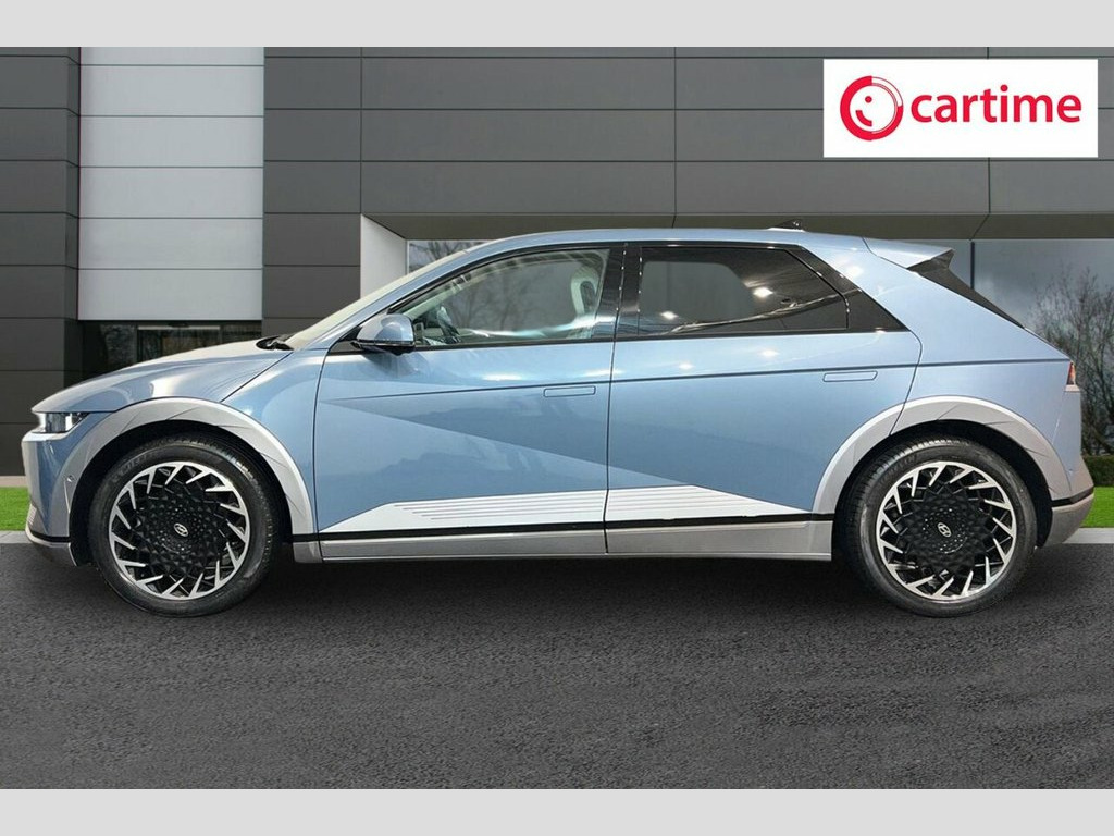 This 2022 Hyundai IONIQ 5 Ultimate is a superb example, having had only one owner since new. As an electric vehicle, it boasts a substantial 73 kWh battery, offering a maximum range of 280 miles when fully charged. For convenience, a full charge at home using a 7kW charger takes approximately 10 hours and 53 minutes. When you need a rapid top up, the IONIQ 5 can achieve an impressive 80% charge from empty in just 17 minutes at a compatible public charging station. Inside, you'll find a host of advanced features designed for comfort and ease of use, including a Rear View Monitor with Dynamic Parking Guidance, a Head Up Display, Dual Zone Climate Control, a Heated Steering Wheel, and seamless Android Auto connectivity for your phone. The IONIQ 5 Ultimate excels in performance and practicality. Its acceleration is notably brisk, reaching 0-60mph in a swift 7.4 seconds, demonstrating its dynamic capability. Furthermore, the generous boot space provides ample room for luggage or shopping, making it a versatile choice for everyday life and longer journeys. These highlights, combined with its impressive electric range and rapid charging capabilities, position this Hyundai IONIQ 5 as a compelling option for those seeking an advanced and efficient electric car. 12.3in Touchscreen Satellite Navigation , 12V Power Outlet - Front Console, 20in Alloy Wheels, A-B-C Pillar Trim - Cloth, ABS - Anti-Lock Brake System, Air Conditioning - Dual Zone Climate Con, Airbag - Front Passenger Deactivation Sw, Airbag - Front Thorax and Pelvis - Curta, Airbags - Driver, Airbags - Front Centre Side, Alarm - Thatcham Category 1, Alloy Pedals, Alternator Management System - AMS, Automatic Windscreen Wipers with Rain Se, Blind Spot Collision Avoidance Assist, BlueLink, Bluetooth Connectivity with Voice Recogn, CCS Combo Rapid Charge Port - 50kW, Central Locking - Remote Control, Centre Console - Sliding, Charging Cable - 7 Pin Type 2, Charging Cable - Emergency 3 Pin Con
