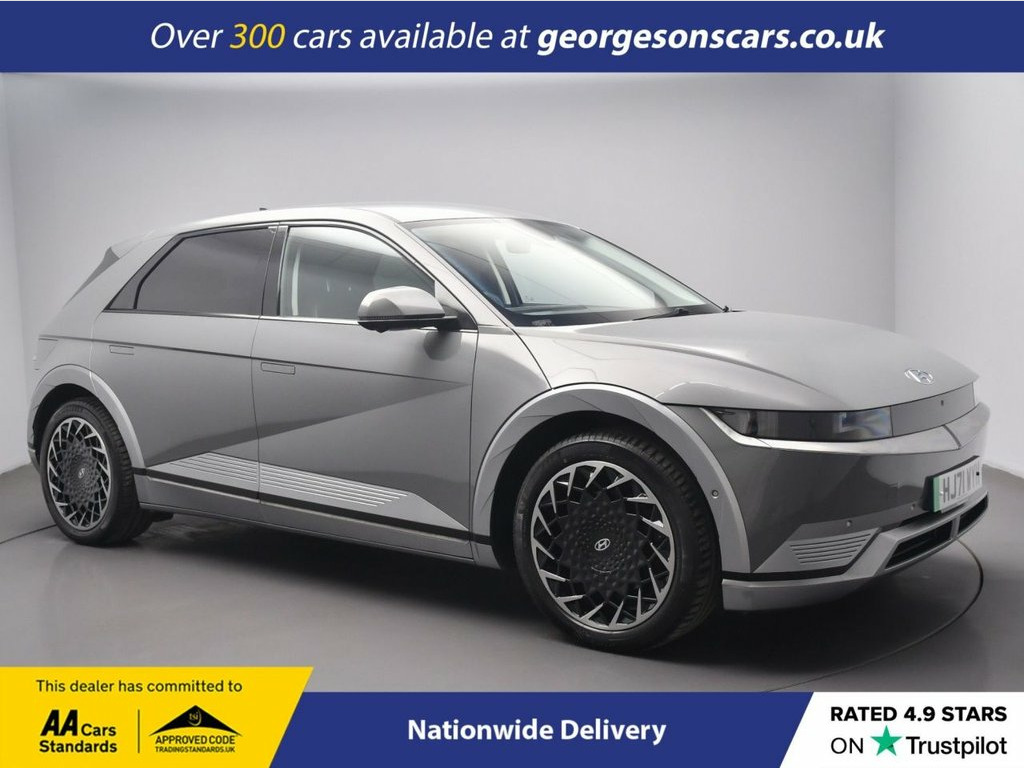 The Hyundai Ioniq 5 73kWh Ultimate combines a powerful rear-mounted electric motor with 218hp, delivering 0-62mph in 7.4 seconds and up to 300 miles WLTP range in this rear-wheel-drive setup with instant single-speed transmission. The flagship Ultimate trim brings stunning looks with 20-inch alloys, sliding centre console and full luxury pack. With four services, this Ioniq 5 is in superb condition. Bose premium sound system, panoramic glass roof, front & rear heated seats, ventilated (cooled) front seats, heated steering wheel, electric memory front seats, head-up display, electric tailgate and dual-zone climate control create a first-class cabin. Navigate effortlessly with satellite navigation, Apple CarPlay, Bluetooth and DAB radio. Parking is effortless with 360-degree camera, reverse camera and parking sensors. Adaptive cruise control, lane assist, hill assist and selectable drive modes deliver relaxed, safe grand touring every day. The futuristic five-door hatchback includes a huge 527-litre boot (expandable to 1,587 litres).