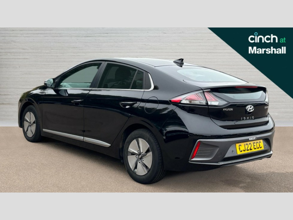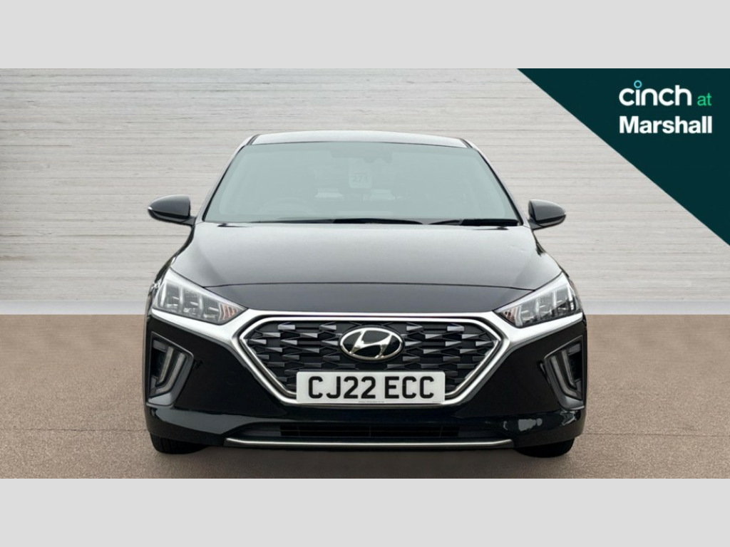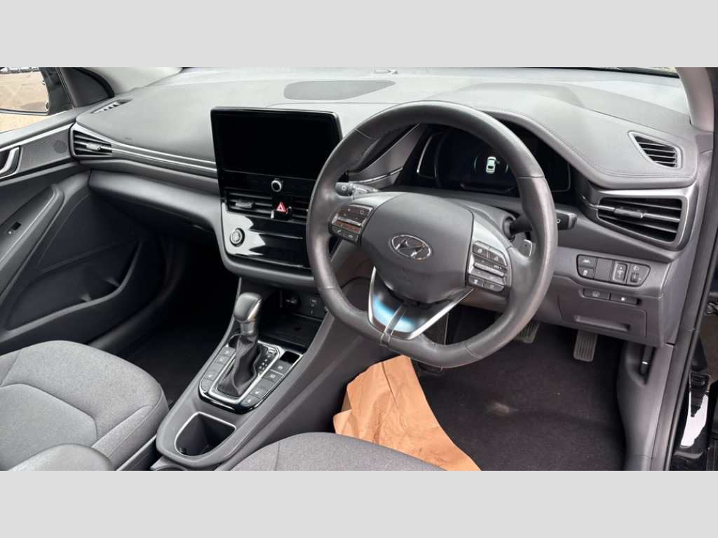 Hyundai Ioniq 1.6 GDi Hybrid Premium 5dr DCT 10.25" touchscreen satellite navigation includes traffic messaging channel, mapcare, live services and bluelink, Apple car play/Android Auto, Bluetooth system, Cruise control, Driver attention alert system, E-call, Eco driving assistant system (ECO DAS), Electric power steering with variable drive modes, Gear lever drive mode selector, Lane departure warning system with lane keep assist - LKAS, Parking Brake - Foot Brake, Parking system with rear camera and guidance system, Rear parking sensor, Rear view monitor, Roadside assistance, Supervision cluster with 7" high resolution TFT LCD, Voice recognition, Windscreen washer fluid sensor and warning indicator, Wireless phone charging pad, DAB Digital radio, Infinity sound system includes 1 centre, 2 tweeters, 2 front, 2 rear and 1 ext amp, Radio data system, Steering wheel audio, phone and cruise controls, USB and aux connection in front, Active air flap radiator grille, Auto dimming rear view mirror, Automatic headlights with dusk sensor, Body colour bumpers, Body colour door handles with chrome inserts, Body colour door mirrors, Bodyside mouldings, Chrome door scuff with ioniq logo, Chrome finish window surround, Chrome radiator grille, Door mirror puddle lights, Electric adjustable door mirrors, Electric front windows - anti trap + one touch, Electric heated door mirrors, Heated rear windscreen, High beam assist, LED daytime running lights, LED Headlights, LED indicators in door mirrors, LED rear fog light, Positioning Lights - LED, Power folding door mirrors, Rain sensor, Rear electric windows, Rear LED lights, Rear roof spoiler with integrated LED brake light, Rear side wing doors, Rear wiper, Solar glass with windscreen shade band, Tinted windows, Two tone rear bumper, Variable front intermittent wipers, 12V power outlets, 3 rear seats, 60/40 split folding rear seat, Centre console storage, Centre interior light, Chrome interior door handles, Cloth upholstery, Driver seat height adjust, Driver's electric adjustable lumbar support, Driver/passenger sunvisors with illuminated vanity mirrors, Dual zone climate control, Front centre armrest with storage compartment, Front cupholder, Front head restraints with vertical and horizontal adjustment, Front seat and rear pockets, Heated front seats, Heated steering wheel, Illuminated luggage compartment, Interior mood lighting, Leather wrapped steering wheel, Luggage net, Manual height adjustable front passenger seat, Map and reading lights, Paddle shifter, Rear centre console with air vents, Single front passenger seat, Sunglasses holder, USB - driver arm rest (charging only), Vertical adjustment rear head restraints, 3x3 point rear seatbelts, Airbags - front, front side, curtain and drivers knee airbags, Anti-lock brake system (ABS), Autonomous emergency braking, Electronic stability control, Front passenger airbag deactivation switch, Hill start assist control (HAC), Manual child lock in rear doors, Regenerative braking system, Traction control, Tyre pressure monitoring system with individual tyre pressure display, Deadlocks, Immobiliser, Keyless smart entry with push button start, Remote central locking, 15" Design B alloy wheels, Tyre repair kit