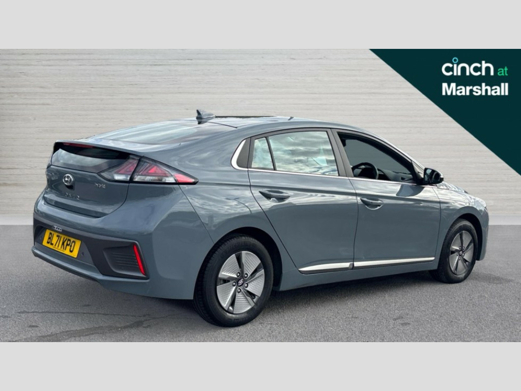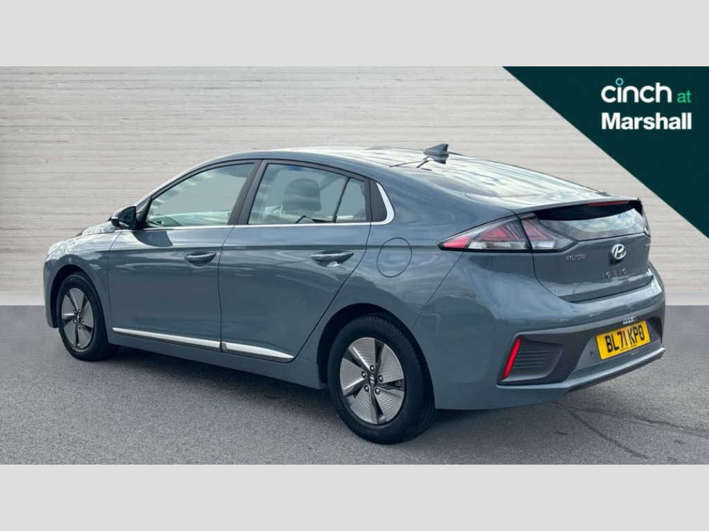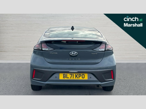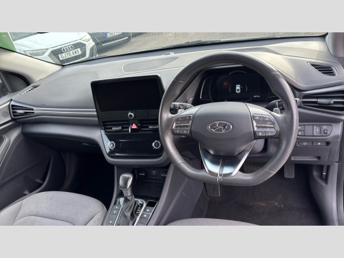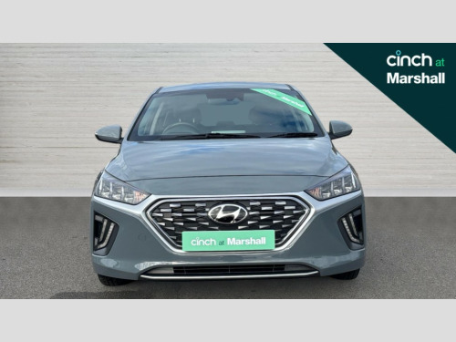 Hyundai Ioniq 1.6 GDi Hybrid Premium 5dr DCT 10.25" touchscreen satellite navigation includes traffic messaging channel, mapcare, live services and bluelink, Apple car play/Android Auto, Bluetooth system, Cruise control, Driver attention alert system, E-call, Eco driving assistant system (ECO DAS), Electric power steering with variable drive modes, Gear lever drive mode selector, Lane departure warning system with lane keep assist - LKAS, Parking Brake - Foot Brake, Parking system with rear camera and guidance system, Rear parking sensor, Rear view monitor, Roadside assistance, Supervision cluster with 7" high resolution TFT LCD, Voice recognition, Windscreen washer fluid sensor and warning indicator, Wireless phone charging pad, DAB Digital radio, Infinity sound system includes 1 centre, 2 tweeters, 2 front, 2 rear and 1 ext amp, Radio data system, Steering wheel audio, phone and cruise controls, USB and aux connection in front, Active air flap radiator grille, Auto dimming rear view mirror, Automatic headlights with dusk sensor, Body colour bumpers, Body colour door handles with chrome inserts, Body colour door mirrors, Bodyside mouldings, Chrome door scuff with ioniq logo, Chrome finish window surround, Chrome radiator grille, Door mirror puddle lights, Electric adjustable door mirrors, Electric front windows - anti trap + one touch, Electric heated door mirrors, Heated rear windscreen, High beam assist, LED daytime running lights, LED Headlights, LED indicators in door mirrors, LED rear fog light, Positioning Lights - LED, Power folding door mirrors, Rain sensor, Rear electric windows, Rear LED lights, Rear roof spoiler with integrated LED brake light, Rear side wing doors, Rear wiper, Solar glass with windscreen shade band, Tinted windows, Two tone rear bumper, Variable front intermittent wipers, 12V power outlets, 3 rear seats, 60/40 split folding rear seat, Centre console storage, Centre interior light, Chrome interior door handles, Cloth upholstery, Driver seat height adjust, Driver's electric adjustable lumbar support, Driver/passenger sunvisors with illuminated vanity mirrors, Dual zone climate control, Front centre armrest with storage compartment, Front cupholder, Front head restraints with vertical and horizontal adjustment, Front seat and rear pockets, Heated front seats, Heated steering wheel, Illuminated luggage compartment, Interior mood lighting, Leather wrapped steering wheel, Luggage net, Manual height adjustable front passenger seat, Map and reading lights, Paddle shifter, Rear centre console with air vents, Single front passenger seat, Sunglasses holder, USB - driver arm rest (charging only), Vertical adjustment rear head restraints, 3x3 point rear seatbelts, Airbags - front, front side, curtain and drivers knee airbags, Anti-lock brake system (ABS), Autonomous emergency braking, Electronic stability control, Front passenger airbag deactivation switch, Hill start assist control (HAC), Manual child lock in rear doors, Regenerative braking system, Traction control, Tyre pressure monitoring system with individual tyre pressure display, Deadlocks, Immobiliser, Keyless smart entry with push button start, Remote central locking, 15" Design B alloy wheels, Tyre repair kit