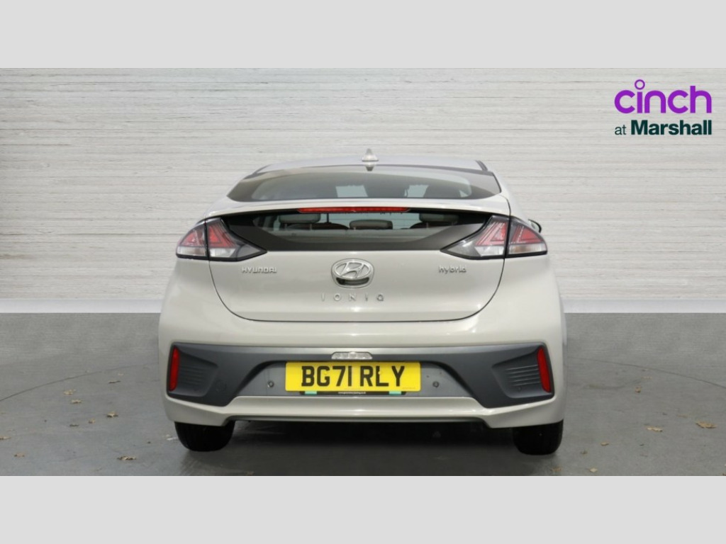 Hyundai Ioniq 1.6 GDi Hybrid Premium 5dr DCT 10.25" touchscreen satellite navigation includes traffic messaging channel, mapcare, live services and bluelink, Apple car play/Android Auto, Bluetooth system, Cruise control, Driver attention alert system, E-call, Eco driving assistant system (ECO DAS), Electric power steering with variable drive modes, Gear lever drive mode selector, Lane departure warning system with lane keep assist - LKAS, Parking Brake - Foot Brake, Parking system with rear camera and guidance system, Rear parking sensor, Rear view monitor, Roadside assistance, Supervision cluster with 7" high resolution TFT LCD, Voice recognition, Windscreen washer fluid sensor and warning indicator, Wireless phone charging pad, DAB Digital radio, Infinity sound system includes 1 centre, 2 tweeters, 2 front, 2 rear and 1 ext amp, Radio data system, Steering wheel audio, phone and cruise controls, USB and aux connection in front, Active air flap radiator grille, Auto dimming rear view mirror, Automatic headlights with dusk sensor, Body colour bumpers, Body colour door handles with chrome inserts, Body colour door mirrors, Bodyside mouldings, Chrome door scuff with ioniq logo, Chrome finish window surround, Chrome radiator grille, Door mirror puddle lights, Electric adjustable door mirrors, Electric front windows - anti trap + one touch, Electric heated door mirrors, Heated rear windscreen, High beam assist, LED daytime running lights, LED Headlights, LED indicators in door mirrors, LED rear fog light, Positioning Lights - LED, Power folding door mirrors, Rear electric windows, Rear LED lights, Rear roof spoiler with integrated LED brake light, Solar glass with windscreen shade band, Tinted windows, Two tone rear bumper, 12V power outlets, 60/40 split folding rear seat, Centre console storage, Centre interior light, Chrome interior door handles, Cloth upholstery, Driver seat height adjust, Driver's electric adjustable lumbar support, Driver/passenger sunvisors with illuminated vanity mirrors, Dual zone climate control, Front centre armrest with storage compartment, Front cupholder, Front head restraints with vertical and horizontal adjustment, Front seat and rear pockets, Heated front seats, Heated steering wheel, Illuminated luggage compartment, Interior mood lighting, Leather wrapped steering wheel, Luggage net, Manual height adjustable front passenger seat, Map and reading lights, Paddle shifter, Rear centre console with air vents, Sunglasses holder, USB - driver arm rest (charging only), Vertical adjustment rear head restraints, 3x3 point rear seatbelts, Airbags - front, front side, curtain and drivers knee airbags, Anti-lock brake system (ABS), Autonomous emergency braking, Electronic stability control, Front passenger airbag deactivation switch, Hill start assist control (HAC), Regenerative braking system, Traction control, Tyre pressure monitoring system with individual tyre pressure display, Deadlocks, Immobiliser, Keyless smart entry with push button start, Remote central locking, 15" Design B alloy wheels, Tyre repair kit