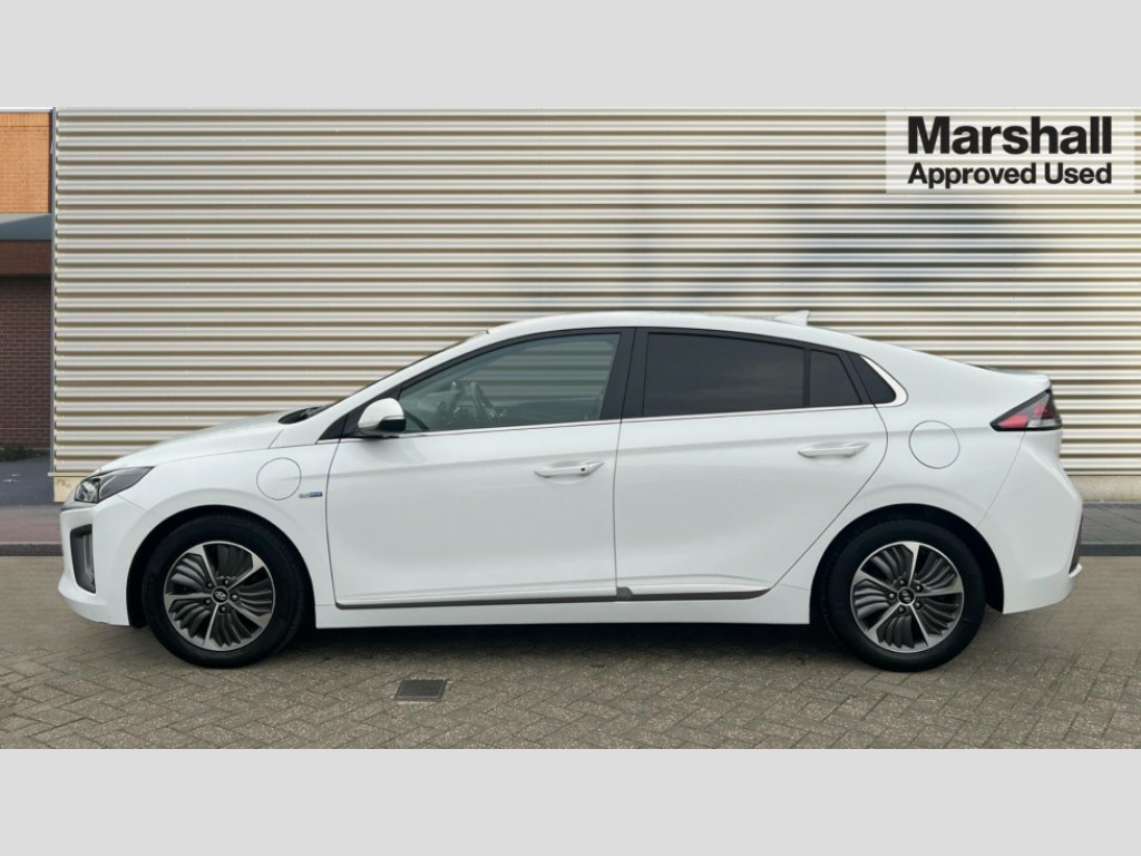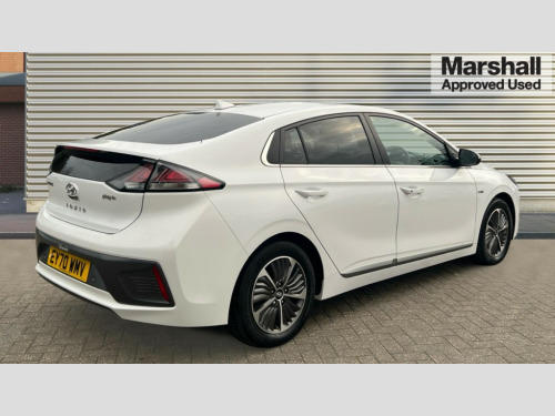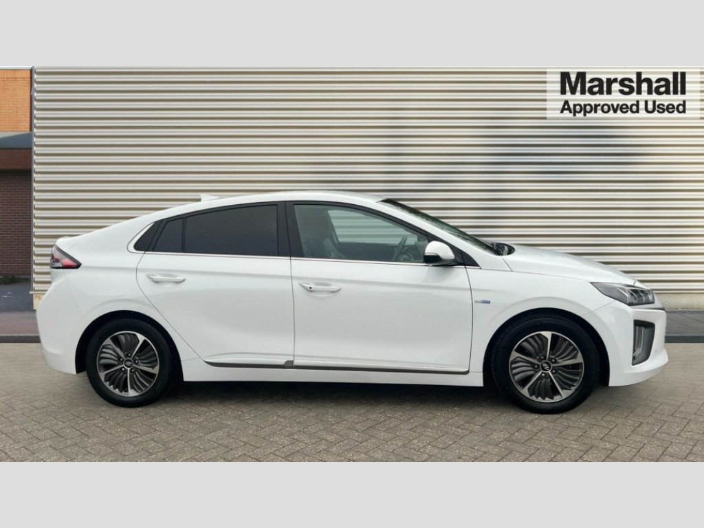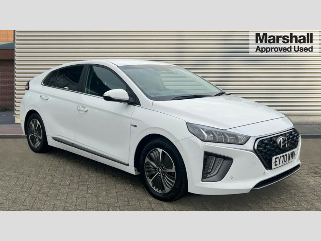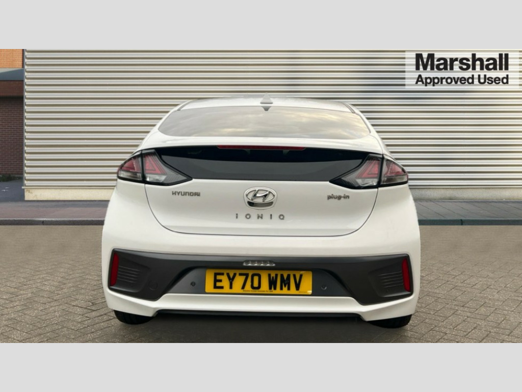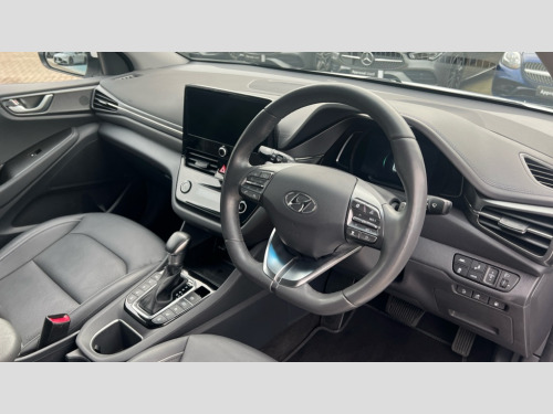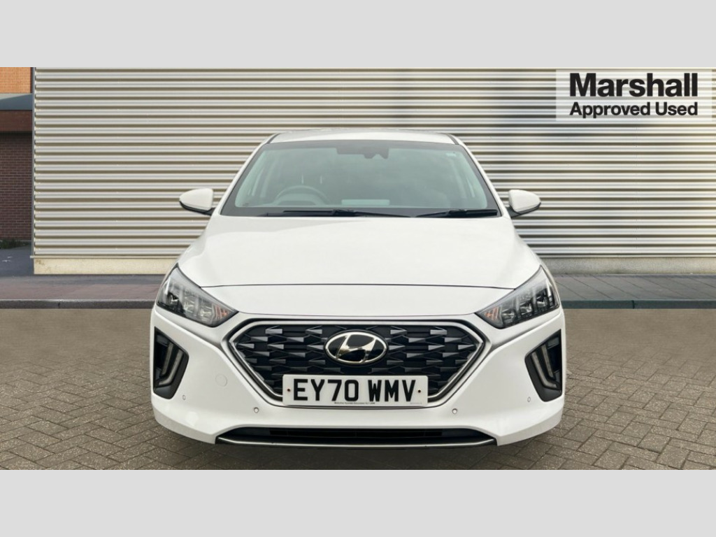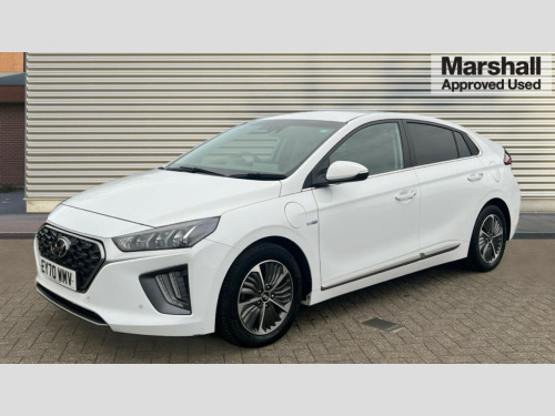 Hyundai Ioniq 1.6 GDi Plug-in Hybrid Premium SE 5dr DCT 10.25" touchscreen satellite navigation includes traffic messaging channel, mapcare, live services and bluelink, Adaptive cruise control with Stop and Go, Apple car play/Android Auto, Blind spot detection system, Bluetooth system, Driver attention alert system, E-call, Eco driving assistant system (ECO DAS), Electric power steering with variable drive modes, Front and rear parking sensors, Gear lever drive mode selector, Lane departure warning system with lane keep assist - LKAS, Lane follow assist, Parking system with rear camera and guidance system, Rear cross traffic alert, Rear view monitor, Roadside assistance, Supervision cluster with 7" high resolution TFT LCD, Voice recognition, Windscreen washer fluid sensor and warning indicator, Wireless phone charging pad, 3.3 kW On Board Charger, 7 pin charging cable, Emergency 3 pin connector charging cable (ICCB), DAB Digital radio, Infinity sound system includes 1 centre, 2 tweeters, 2 front, 2 rear and 1 ext amp, Radio data system, Steering wheel audio, phone and cruise controls, USB and aux connection in front, Active air flap radiator grille, Auto dimming rear view mirror, Automatic defog system for front windscreen, Automatic headlights with dusk sensor, Automatic windscreen wipers with rain sensor, Body colour bumpers, Body colour door handles with chrome inserts, Body colour door mirrors, Bodyside mouldings, Chrome door scuff with ioniq logo, Chrome finish window surround, Chrome radiator grille, Door mirror puddle lights, Electric adjustable door mirrors, Electric front windows - anti trap + one touch, Electric heated door mirrors, Heated rear windscreen, High beam assist, LED daytime running lights, LED Headlights, LED indicators in door mirrors, LED rear fog light, Positioning Lights - LED, Power folding door mirrors, Privacy glass, Rear electric windows, Rear LED lights, Rear roof spoiler with integrated LED brake light, Solar glass with windscreen shade band, Two tone rear bumper, 12V power outlets, 60/40 split folding rear seat, Centre console storage, Centre interior light, Chrome interior door handles, Driver's electric adjustable lumbar support, Driver's seat memory, Driver/passenger sunvisors with illuminated vanity mirrors, Dual zone climate control, Electric height adjustable driver seat, Front centre armrest with storage compartment, Front cupholder, Front head restraints with vertical and horizontal adjustment, Front seat and rear pockets, Heated front seats, Heated outer rear seats, Heated steering wheel, Illuminated luggage compartment, Interior mood lighting, Leather upholstery, Leather wrapped steering wheel, Luggage net, Manual height adjustable front passenger seat, Map and reading lights, Paddle shifter, Rear centre console with air vents, Sunglasses holder, USB - driver arm rest (charging only), Ventilated front seats, Vertical adjustment rear head restraints, 3x3 point rear seatbelts, Airbags - front, front side, curtain and drivers knee airbags, Anti-lock brake system (ABS), Autonomous emergency braking, Electric parking brake, Electronic stability control, Front passenger airbag deactivation switch, Hill start assist control (HAC), Regenerative braking system, Traction control, Tyre pressure monitoring system with individual tyre pressure display, Deadlocks, Immobiliser, Keyless smart entry with push button start, Remote central locking, 16" alloy wheels, Tyre repair kit