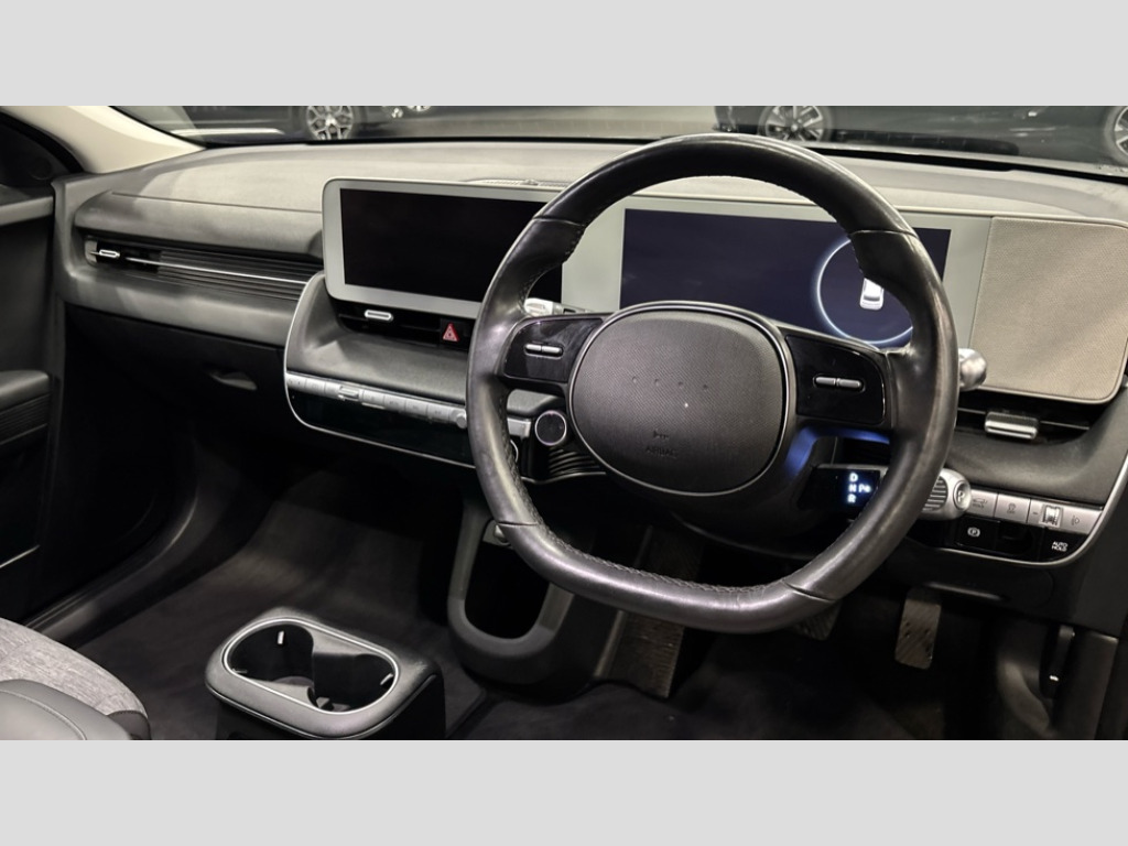 Hyundai Ioniq 5 125kW Premium 58 kWh 5dr Auto [Part Leather] 12.3" Full TFT drivers supervision instrument cluster, 12.3" touchscreen satellite navigation and media centre, Alternator management system, Blind spot collision avoidance assist, Bluelink Connected Car Services, Bluetooth connectivity with voice recognition, Digital clock, Drive modes select (Eco, normal and sport), Driver attention warning, eCall emergency system, Forward Collision Avoidance Assist (FCA) - Car, Pedestrian and Cycle, HDA - Highway Drive Assist Level 1.5, Hyundai road side assistance, Intelligent speed limit assist (ISLA), Lane follow assist, Lane keep assist (LKA) - Line and road edge, On board diagnostics, Outside temperature display, Parking - rear view monitor with parking guidance dynamic, Parking distance warning - forward and reverse, PAS, Phone connection with apple carPlay and android auto, Rear cross traffic collision avoidance assist (RCCA), RTTI - Real time traffic information, Smart cruise control with stop and go functionality, Smart electric tailgate with hand's free opening function, Wireless phone charging pad, 10.5 kWh 3 Phase On Board Charger, Battery heating system with pre conditioning, Charging cable - 7 pin type 2, Emergency 3 pin connector charging cable (ICCB), Shift by wire - E shift, Vehicle to load adaptor, 2 front/2 rear speakers, 2 x USB ports for row 1, DAB radio, Steering wheel audio controls, Acoustic windscreen, Aero blade wiper, Anthracite side sills, Anti-corrosion treatment, Auto headlights, Automatic windscreen wipers with rain sensor, Black door mirrors, Body coloured door handles, Chrome bodyside mouldings, Dual LED low and high projection headlamps, Electric adjustable/heated/folding door mirrors, Electric front/rear windows with drivers one touch/anti-trap, Exterior door handle - Flush, Frunk - under the bonnet storage, Headlamp surround, Heated and tinted rear windscreen, Indicator light on door mirrors, LED daytime running lights, LED positioning lights, LED rear combination lights, LED rear fog lights, Rear roof spoiler with integrated LED brake light, Rear side wing doors, Shark fin roof aerial, Smart high beam headlights, Standard door scuff plate, Tailgate up lift opening, Tinted front windscreen and windows, Tinted rear windows, V2L (Vehicle to Load inside and Outside), Windscreen auto defog function, 12V power outlet in front console, 1x USB connectivity port in front, 3 rear seat adjustable head restraints, 3 rear seats, 4 way electrically adjustable drivers seat, 60/40 split folding rear seat, A/B/C Pillar trim - Cloth, CCS Combo rapid charge port (50kW), Driver's electric lumbar adjustment, Driver/passenger front seatback pockets, Driver/passenger sunvisors + illuminated vanity mirrors (drivers with ticket holder), Dual zone climate control air conditioning, Front cup holders, Front head restraints with vertical and horizontal adjustment, Front passenger seat isofix location point, Front passenger's seat manual height adjustment, Heated front seats, Heated steering wheel, Height/reach adjustable steering column, ISOFIX child seat anchorage points attached on outer rear seats, Leather wrapped steering wheel, Luggage compartment light, Luggage cover, Luggage hooks, Manual sliding rear seats, Metal paint effect interior door handles, Part leather upholstery, Rear grab handle with coat hook, Roof trim - Cloth, Second row outer head restraints vertical adjustment, Single front passenger seat, Sliding centre console box, Trailer wiring package - Ioniq5, 3 point rear seatbelts, ABS, Childproof rear door locks, Electric parking brake with auto hold function, Electronic stability control, FCA-JT - Forward Collision Avoidance Assist - Junction ( Turning), Front and outer rear seatbelt reminder and pretensioners, Front center side airbags, Front passenger airbag deactivation switch, Front thorax and pelvis + curtain airbags, Height adjustable front seatbelts, Hill start assist control (HAC), Impact sensing auto door unlocking, Regenerative brake shift paddles, Smart regenerative braking, Tyre pressure monitoring system with individual tyre pressure warning, Drive away door locking, Immobiliser, Rear occupant alert, Remote control central locking, Smart Key - Keyless entry with Power On/Off button, Thatcham category 1 alarm, Warranty - 5 years / unlimited mileage, Obsedian black interior trim, 19" Alloy wheels, Tyre repair kit