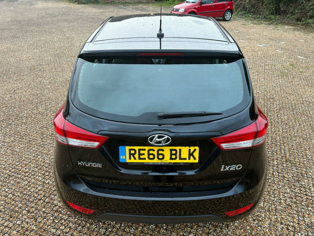 Village cars are pleased to offer this fantastic Hyundai IX20 SE Blue Drive finished in black. This is a 1 owner car in great condition and has a full service history (9 stamps). Good specification with reverse parking sensors, remote locking (2 keys), automatic lights and wipers, climate control air conditioning, Bluetooth phone connectivity, USB, 5 doors, alloy wheels and much more. This car will come with a 3 month (extendable) national warranty provided by warranty first.ABOUT US - Village cars is a family business with traditional values and 25 + years' experience in the trade. We firmly believe in a hassle free, zero pressure environment where our customers can feel relaxed and are given time to make the right decision for them. We understand that sometimes the car you have come to look at is simply not the one and if you go away feeling that you enjoyed your experience with us, we are happy with that. We take pride in the cars we sell, they are a reflection of us and our business. Call us today and talk to us about the car you are interested in, you will find us very open and honest with any questions you may have. We are open Monday to Friday 09:30 - 17:00 and Saturdays by appointment (we are closed Sundays). We always recommend you call ahead as sometimes we need to be away from our site collecting or viewing cars. If our opening hours don't fit your busy schedule please call us to discuss the options as we will always accommodate late viewings/test drives if we can. Our number is 01252 617414. v power outlet - front, 12v power outlet - luggage compartment, 16in alloy wheels, abs - anti-lock brake system, air conditioning, airbags - driver, airbags - front passenger, airbags - front side, airbags - full length curtain, alarm, armrest - drivers fold up, armrest - rear centre, bas - brake assist system, bluetooth connectivity with voice recognition, body colour bumpers, childproof rear door locks, chrome effect interior door handles, cigarette lighter and ashtray, cup holders - front, dash trim - high glossy, deadlocks, door handles - body coloured - chrome finish, door mirrors - electric heated, door mirrors with integrated indicators - body coloured, driver seat height adjustment, drivers side safety window with anti trap function, ebd - electronic brake force distribution, esp - electronic stability programme, ess - emergency stop signal, electric power steering, electric windows - front and rear with drivers anti-trap and one-touch up-down control, front door pockets, front fog lights, front head restraints - vertical and horizontal adjustment, front map reading lights, front passenger airbag de-activation switch, front seat back pockets, front seatbelt pre-tensioners, front and rear seatbelt reminder, gear knob - leather, glove compartment with cooling function, hac - hill-start assist control, head restraints - rear with vertical and horizontal adjustment, headlights - automatic, headlights - electric beam levelling, isofix child seat anchorage points - rear - outer rear, immobiliser, impact sensing auto door unlocking, keyless entry, locking wheel nuts, luggage compartment light, luggage hooks, luggage net, luggage under tray, my music, passenger seat height adjustment - manual, rds radio-cd player with mp3 compatibility, radiator grille - chrome bar and surrounding, rear spoiler with integrated brake light, reversing sensors, sliding and reclining rear seat, spare wheel - temporary, speakers x6, speed sensitive automatic door locking, split folding rear seats - 60-40, steering column - height and reach adjustable, steering wheel - audio controls, steering wheel - leather, sun visors with vanity mirrors and illumination, tinted glass, trip computer, tyre pressure monitoring system - tpms, usb and aux connections, under floor storage in boot