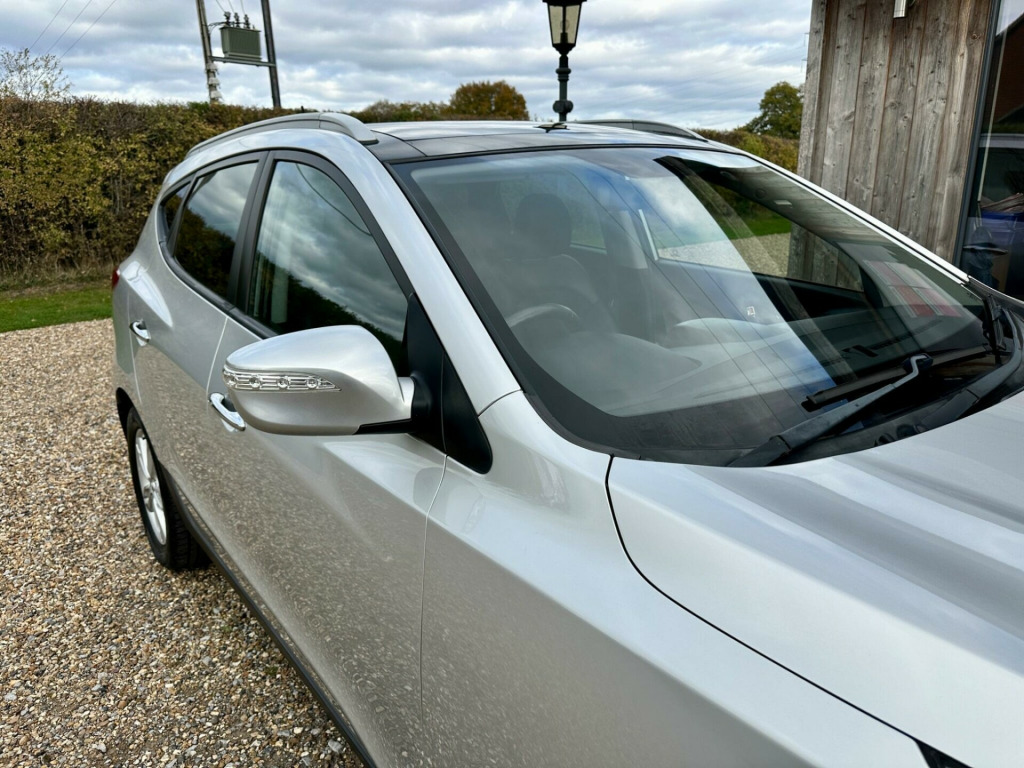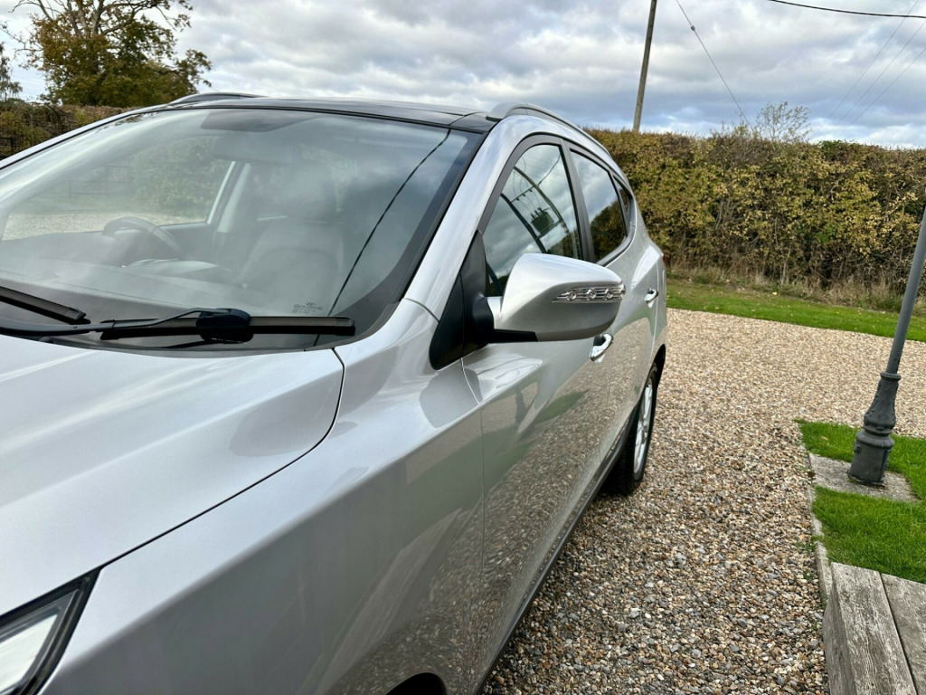 Here we have a fabulous low mileage example of the versatile Hyundai IX35 Premium 2WD presented in elegant Glacier Silver metallic with contrasting Half Leather/Cloth upholstery. Only 2 private owners from new ( the last since it was 18 months old!! ), the car has been lovingly cared for throughout and comes with full main dealer service history (12 stamps incredibly!! ). This Hyundai ix35 is designed for comfort and practicality. Enjoy the convenience of dual zone climate control with a humidity sensor and ioniser, both the front and outer rear seats are heated , and the electric tilt and slide panoramic sunroof adds an airy feel to the cabin. The generous boot space makes it ideal for families and everyday errands, while its low CO2 emissions and impressive 54 mpg fuel economy contribute to lower running costs. HPI clear it comes with all books and both keys representing excellent value for money for such a clean example with great provenance.Good luck with your search, thank you for viewing this car.* NOW SOLD* dia pack, leather cloth mix- black, 12v power outlet, 17in alloy wheels, abs - anti-lock brake system, adjustable head restraints, air conditioning, airbags - driver, airbags - front passenger, airbags - front-front side and full length curtain, airbags - full length curtain, airbags - side, alarm, armrest - front centre with storage compartment, armrest - rear centre, bluetooth connectivity with voice recognition, body colour door handles and mirrors, childproof rear door locks, chrome effect fascia inserts, climate control - dual zone with humidity sensor and ioniser, cruise control, cup holders - front, cup holders - rear, dbc - downhill brake control, deadlocks, door handles - chrome, door mirrors - electric folding, door mirrors - electric heated with integral indicators, driver seat height adjustment, drivers side safety window with anti trap function, ebd - electronic brake force distribution, esp - electronic stability programme, ess - emergency stop signal, electric windows - front and rear, front fog lights, front passenger airbag de-activation switch, front seat back pockets, front and second row door pockets, gear knob - leather, glove compartment lockable, glove compartment with cooling function, hac - hill-start assist control, head restraints - active front, headlights - automatic, headlights - follow me home function, heated front and rear seats outer rear seat bases only, isofix child seat anchorage points - rear - outer rear, immobiliser, keyless entry and engine start-stop button, locking wheel nuts, luggage hooks, luggage net, one touch down drivers window control, panoramic sunroof - electric tilt and slide, power assisted steering, privacy glass - rear side window and tailgate, rds radio-cd player with mp3 compatibility, rain sensing front wipers, rear spoiler with integrated brake light, remote central locking, retractable load cover, reversing sensors, roof rails, seats - drivers lumbar adjustment, side impact bars, spare wheel - full size alloy, speakers x6, speed sensitive automatic door locking, split folding rear seats - 60-40, steering column - height and reach adjustable, steering wheel - audio controls, steering wheel - leather, sun visors with driver and passenger vanity mirrors, sunglasses holder, traction control, trip computer, usb and aux connections