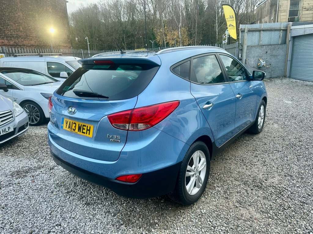 This 2013 Hyundai ix35 CRDi Premium boasts an MOT valid until July 2026, offering you peace of mind for the coming years. impeccable service record with no less than 11 services documented in its original service book, last services July this year, This well presented 1.7 litre diesel model comes in the Premium trim, featuring desirable additions such as dual zone climate control with a humidity sensor and ioniser, ensuring a comfortable cabin environment for all occupants. Stay connected on the go with Bluetooth connectivity and voice recognition, while the electric tilt and slide panoramic sunroof opens up the cabin, creating a bright and airy feel. full black leather interior with heated front seats also an extra and sought after extra. only 3 owners from new last owner since 2017, excellent condition throughout, fully HPI clear any inspection welcome. fantastic colour combination sky blue metallic with full black leather interior. this IX35 includes air conditioning for those warmer days and rear parking sensors to assist with manoeuvring. These features, combined with the robust 1.7 litre diesel engine and the extensive MOT validity, position this Hyundai ix35 as a practical and well equipped choice for your next vehicle. please call LPR motors of Sheffield on 0114 3273363 to view or reserve this high spec low mileage low owner excellent example. 12V Power Outlet, 17in Alloy Wheels, ABS - Anti-Lock Brake System, Adjustable Head Restraints, Air Conditioning, Airbags - Driver, Airbags - Front Passenger, Airbags - Front-Front Side and Full Leng, Airbags - Full Length Curtain, Airbags - Side, Alarm, Armrest - Front Centre with Storage Comp, Armrest - Rear Centre, Bluetooth Connectivity with Voice Recogn, Body Colour Door Handles and Mirrors, Childproof Rear Door Locks, Chrome Effect Fascia Inserts, Climate Control - Dual Zone with Humidit, Cruise Control, Cup Holders - Front, Cup Holders - Rear, DBC - Downhill Brake Control, Deadlocks, Door Handles - Chrome, Door Mirrors - Electric Folding, Door Mirrors - Electric Heated with Inte, Drive