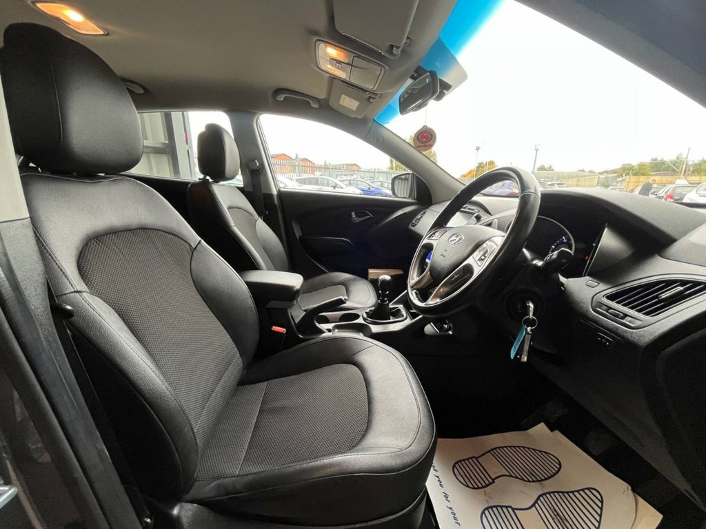 Moto Vation Car Sales are proud to offer this Hyundai IX35 in a great colour- Grey with half Black leather interior. With only one previous owner from new, it is clear it has been loved. Supplied with a Full Years MOT and Full Service History attached with 9 stamps- last around 58K. Many extras including a Multi Functional Steering Wheel, AUX, USB, Bluetooth, Sat Nav, Auto Headlights, Heated Seats, Cruise Control, Voice Command, Isofix and Parking Sensors. £195 annual tax. Please confirm with a Sales Executive how many keys this vehicle comes with. All of our vehicles come with a 3 months Nationwide warranty and a 12 months basic AA breakdown cover. Please read our reviews! Please note- the above vehicle specification is confirmed and correct. The vehicle specification listed elsewhere may sometimes be inaccurate so please check with the Sales team when enquiring to clarify this prior to purchase. Steel Grey, Leather-Cloth - Black, 12V Power Outlet, 17in Alloy Wheels, ABS - Anti-Lock Brake System, Airbags - Driver, Airbags - Front Passenger, Airbags - Front Side, Airbags - Full Length Curtain, Alarm, Armrest - Front Centre with Storage Comp, Armrest - Rear Centre, Automatic Dimming Rear View Mirror with , BAS - Brake Assist System, Bluetooth Connectivity with Voice Recogn, Childproof Rear Door Locks, Climate Control - Dual Zone with Humidit, Cruise Control, DBC - Downhill Brake Control, Daytime Running Lights - LED, Deadlocks, Door Handles - Body Coloured, Door Mirrors - Electric Heated and Foldi, Driver Seat Height Adjustment, Drivers Side Safety Window with Anti Tra, EBD - Electroni