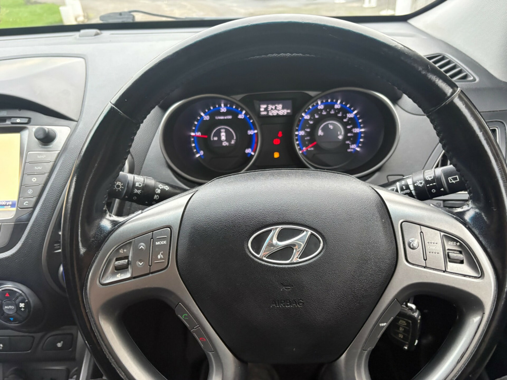 For sale is a 2014 Hyundai ix35 1.7 CRDi SE SUV with a Diesel engine and 128000 miles on the clock, with MOT valid until 06/11/2026. This family-friendly SUV comes with 5 seats and 5 doors, providing ample space for passengers and cargo. The Euro 5 (s/s) engine delivers 115 ps, making it a reliable and efficient choice for everyday driving. Loaded with modern features, such as Bluetooth connectivity with voice recognition, satellite navigation, and a touchscreen interface, it offers a convenient and enjoyable driving experience. With a shark fin antenna and RDS radio-CD player with MP3 compatibility, you can stay entertained on the go. Don't miss out on this well-maintained and practical SUV., v power outlet, bluetooth connectivity with voice recognition, rds radio-cd player with mp3 compatibility, satellite navigation - touchscreen, shark fin antenna, speakers x6, usb and aux connections, 17in alloy wheels, door handles - body coloured, door mirrors - electric heated and folding, electric windows - front and rear, locking wheel nuts, rear spoiler with integrated brake light, roof rails, tyre mobility kit, abs - anti-lock brake system, airbags - driver, airbags - front passenger, airbags - front side, airbags - full length curtain, alarm, bas - brake assist system, childproof rear door locks, dbc - downhill brake control, deadlocks, drivers side safety window with anti trap function, ebd - electronic brake force distribution, esp - electronic stability programme, ess - emergency stop signal, hac - hill-start assist control, isofix child seat anchorage points - rear - outer rear, immobiliser, passenger airbag de-activation switch, remote central locking, side impact bars, speed sensitive automatic door locking, tsa - trailer stability assist, traction control, vsm - vehicle stability management, armrest - front centre with storage compartment, armrest - rear centre, automatic dimming rear view mirror with compass, climate control - dual zone with humidity sensor and ioniser, driver seat height adjustment, front seat back pockets, glove compartment with cooling function, head restraints - active front, heated front seats, heated rear seats, luggage hooks, luggage net, rain sensing front wipers, retractable load cover, seats - drivers with lumbar support, split folding rear seats - 60-40, steering column - height and reach adjustable, steering wheel - audio controls, steering wheel - leather and gear knob, cruise control, eco drive indicator, parking sensors - rear, power assisted steering, reversing camera, trip computer, tyre pressure monitoring system - low line, daytime running lights - led, front fog lights, headlights - automatic, headlights - follow me home function, tail lights - led