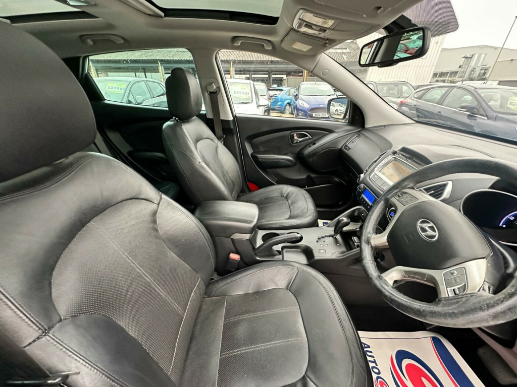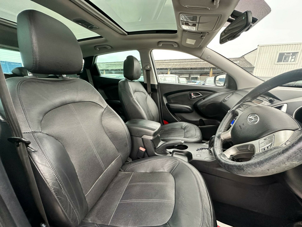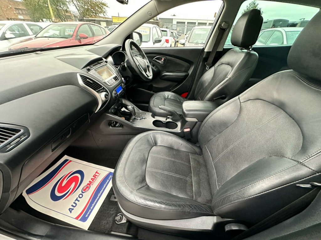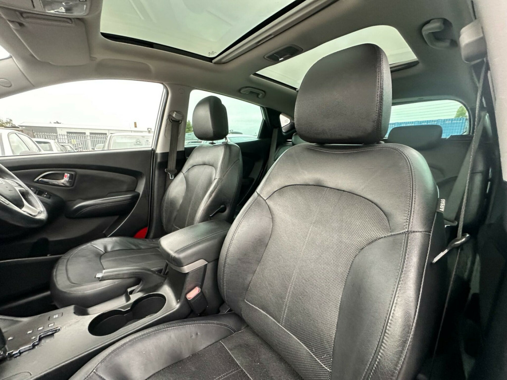This 2013 Hyundai ix35 CRDi Premium presents an exceptional opportunity with a remarkably low mileage of just 69,000 miles for its age. This Four Wheel Drive model is powered by an efficient 2.0L Diesel Engine and boasts a clear vehicle history check, alongside an MOT valid until August 2026, offering peace of mind. Its Partial service history further details its past. Inside, you'll find a host of convenient features including Bluetooth Connectivity with Voice Recognition, Reversing Sensors for easier parking, and Keyless Entry with an Engine Start-Stop Button. The Premium trim also includes Automatic Headlights and an electric tilt and slide Panoramic Sunroof, enhancing your driving experience.The Hyundai ix35 CRDi Premium stands out with its generous boot space, making it ideal for families or those who need ample room for luggage or shopping. Its low insurance group rating also indicates that running costs are kept competitive, a significant advantage for many drivers. These highlights, combined with its advanced features and robust Four Wheel Drive system, position this ix35 as a compelling choice compared to other vehicles in its class. v power outlet, 18in alloy wheels, abs - anti-lock brake system, adjustable head restraints, airbags - driver, airbags - front passenger, airbags - front-front side and full length curtain, airbags - full length curtain, airbags - side, alarm, armrest - front centre with storage compartment, armrest - rear centre, bluetooth connectivity with voice recognition, body colour door handles and mirrors, childproof rear door locks, chrome effect fascia inserts, climate control - dual zone with humidity sensor and ioniser, cruise control, cup holders - front, cup holders - rear, dbc - downhill brake control, deadlocks, door handles - chrome, door mirrors - electric folding, door mirrors - electric heated with integral indicators, driver seat height adjustment, drivers side safety window with anti trap function, ebd - electronic brake force distribution, esp - electronic stability programme, ess - emergency stop signal, electric windows - front and rear, front fog lights, front passenger airbag de-activation switch, front seat back pockets, front and second row door pockets, gear knob - leather, glove compartment lockable, glove compartment with cooling function, hac - hill-start assist control, head restraints - active front, headlights - automatic, headlights - follow me home function, heated front and rear seats outer rear seat bases only, isofix child seat anchorage points - rear - outer rear, immobiliser, keyless entry and engine start-stop button, locking wheel nuts, luggage hooks, luggage net, mud flaps, one touch down drivers window control, panoramic sunroof - electric tilt and slide, power assisted steering, privacy glass - rear side window and tailgate, rds radio-cd player with mp3 compatibility, rain sensing front wipers, rear spoiler with integrated brake light, remote central locking, retractable load cover, reversing sensors, roof rails, seats - drivers lumbar adjustment, side impact bars, spare wheel - full size alloy, speakers x6, speed sensitive automatic door locking, split folding rear seats - 60-40, steering column - height and reach adjustable, steering wheel - audio controls, steering wheel - leather, sun visors with driver and passenger vanity mirrors, sunglasses holder, traction control, trip computer, usb and aux connections