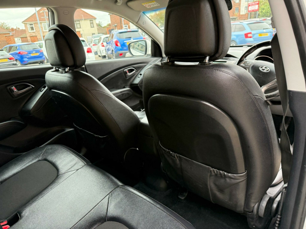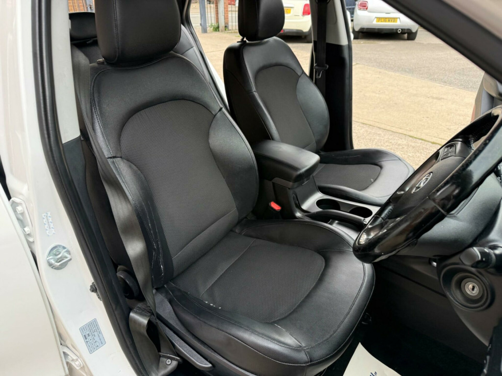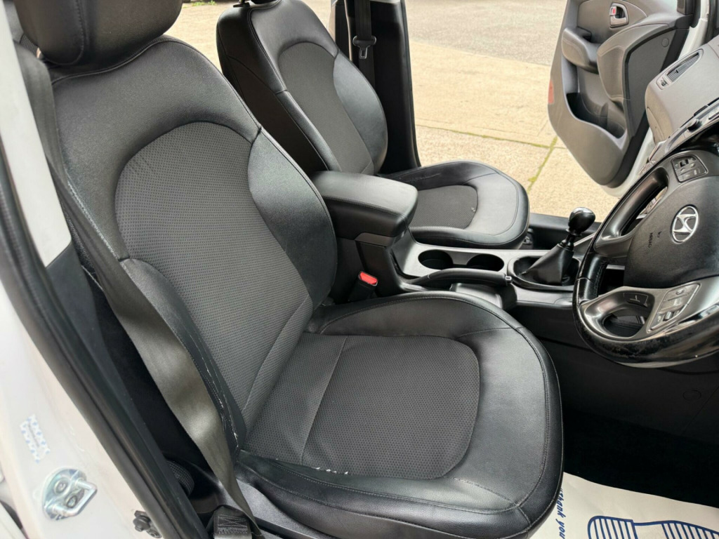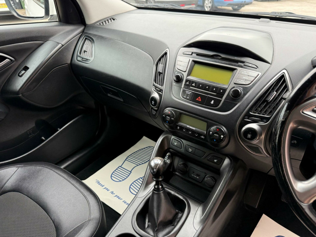 BEAUTIFUL CONDITION THROUGHOUT. 2 KEYS AND 12 MONTHS MOT. NEED FINANCE? PLEASE GIVE US A CALL OR VISIT OUR WEBSITE TO QUOTE OR APPLY ONLINE. VIEWING ESSENTIAL.This 2014 Hyundai ix35 CRDi SE is a well maintained example of this popular compact SUV. Powered by a robust 2.0 litre diesel engine and featuring a capable four wheel drive system, this model offers a comfortable and confident driving experience. Inside, you'll find a host of convenient features designed to enhance your journey, including dual zone climate control with a humidity sensor and ioniser, ensuring a pleasant cabin environment for all occupants. Both front and rear seats are heated, providing welcome warmth on colder days, while Bluetooth connectivity with voice recognition allows for seamless handsfree calls and audio streaming. For added practicality, rear parking sensors are fitted, making manoeuvring in tight spaces much easier.The Hyundai ix35 CRDi SE stands out with its generous boot space, offering ample room for shopping, luggage, or sporting equipment. Furthermore, this particular model benefits from a low insurance group, which can help to reduce your annual running costs. These highlights, combined with its comfortable interior and practical features, make this Hyundai ix35 a compelling choice for those seeking a versatile and economical family vehicle., ather effect - cloth - black, 12v power outlet, 17in alloy wheels, abs - anti-lock brake system, airbags - driver, airbags - front passenger, airbags - front side, airbags - full length curtain, alarm, armrest - front centre with storage compartment, armrest - rear centre, automatic dimming rear view mirror with compass, bas - brake assist system, bluetooth connectivity with voice recognition, childproof rear door locks, climate control - dual zone with humidity sensor and ioniser, cruise control, cup holders - front, cup holders - rear, dbc - downhill brake control, daytime running lights - led, deadlocks, door handles - body coloured, door mirrors - electric heated and folding, driver seat height adjustment, drivers side safety window with anti trap function, ebd - electronic brake force distribution, esp - electronic stability programme, ess - emergency stop signal, eco drive indicator, electric windows - front and rear, front fog lights, front seat back pockets, glove compartment with cooling function, hac - hill-start assist control, head restraints - active front, headlights - automatic, headlights - follow me home function, heated front seats, heated rear seats, isofix child seat anchorage points - rear - outer rear, immobiliser, locking wheel nuts, luggage hooks, luggage net, parking sensors - rear, passenger airbag de-activation switch, power assisted steering, rds radio-cd player with mp3 compatibility, rain sensing front wipers, rear spoiler with integrated brake light, remote central locking, retractable load cover, roof rails, seatbelt reminder - front, seats - drivers with lumbar support, side impact bars, speakers x6, speed sensitive automatic door locking, split folding rear seats - 60-40, steering column - height and reach adjustable, steering wheel - audio controls, steering wheel - leather and gear knob, sunglasses holder, tsa - trailer stability assist, tail lights - led, traction control, trip computer, tyre mobility kit, tyre pressure monitoring system - low line, usb and aux connections, vsm - vehicle stability management
