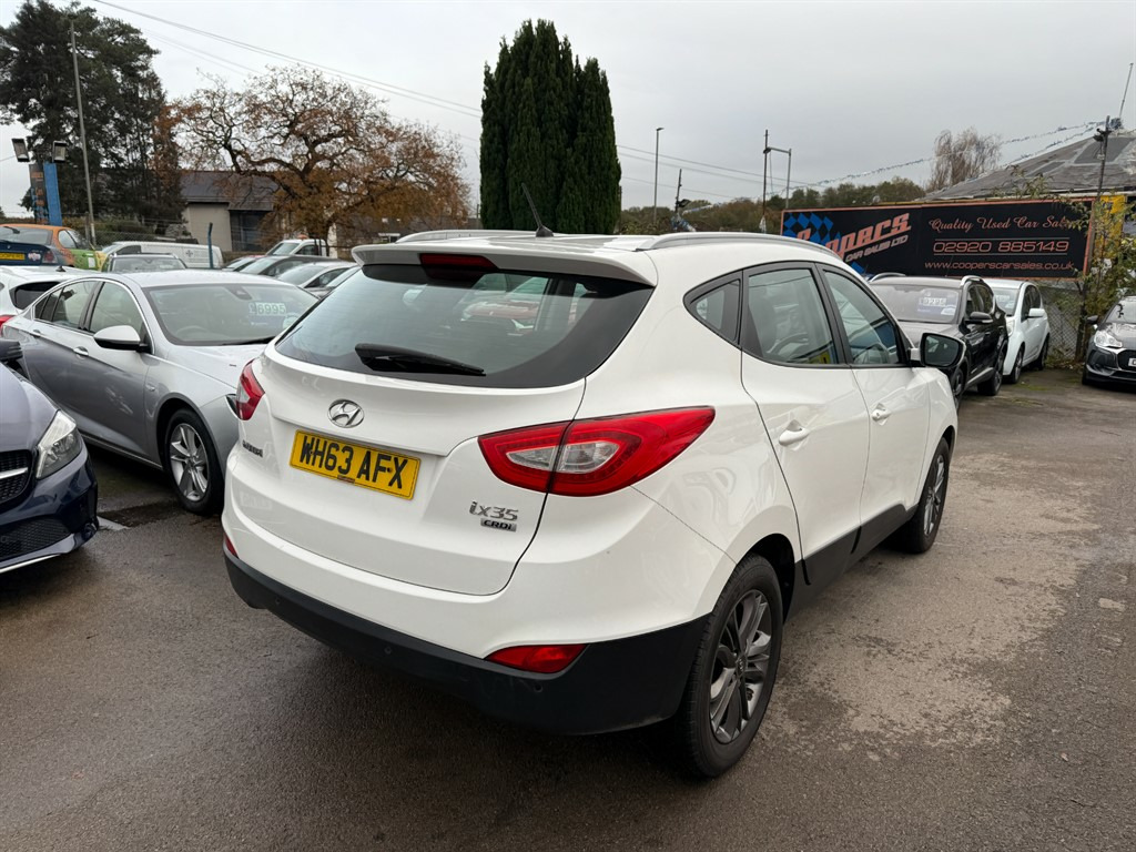 Hyundai ix35 1.7 CRDi SE in bright white. A lovely example here, in great condition both inside and out. Comes with plenty of service history too, a well cared for car. This exceptional estate vehicle, with a powerful 1.7L diesel engine, combines practicality with style, making it the perfect choice for families and individuals alike. Great spec including 1/2 Leather Upholstery, Heated Front & Rear Seats, Cruise Control, Climate Control, Bluetooth Hands Free, Bluetooth Audio Streaming, Parking Sensors, USB, A/C, Alloy Wheels etc. This remarkable vehicle is ready to impress. Don't miss out on the opportunity to own this versatile Hyundai ix35. For more information or to arrange a test drive, please contact Coopers Car Sales at 02920885149. Your next adventure awaits in this fantastic estate! 12v Socket,Adjustable Steering Wheel,Air Conditioning,Alarm,Alloy Wheels,Anti Lock Brakes,Aux Input,Bluetooth Audio Streaming,Bluetooth Telephone Hands Free,Auto On Headlights,CD Radio,Central Locking,Climate Control,Cloth Upholstery,Cruise Control,Cupholders,Driver Airbag,Electric & Heated Door Mirrors,Front Fog Lights,Fuel Computer,Half Leather Trim,Heated Rear Seats,Heated Front Seats,Height Adjustable Drivers Seat,Immobiliser,ISOFIX,Multiple Airbags,Passenger Airbag,Power Assisted Steering,Rear Parking Sensor,Remote Central Locking,Split Folding Rear Seats,Traction Control,Trip Computer,Tyre Pressure Monitor,USB