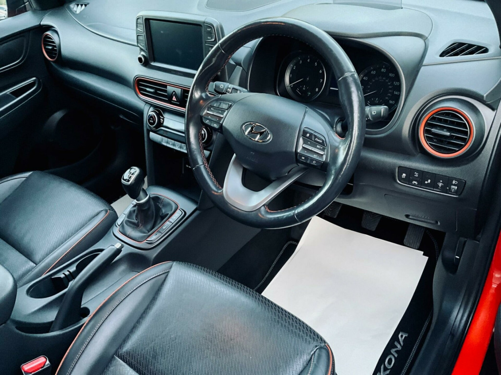 This 2017 Hyundai KONA T GDi Premium SE offers excellent value with a 3 month warranty for your peace of mind. This stylish compact SUV is powered by an efficient 1.0 litre petrol engine, meeting Euro 6 emissions standards. Inside, you'll find a comfortable and technologically advanced cabin, featuring a Head Up Display for convenient information access, a rear view parking camera with guidance to assist with parking, and heated front seats for those colder journeys. Stay connected and entertained with Apple CarPlay and Bluetooth connectivity, making every drive more enjoyable.The Hyundai KONA T GDi Premium SE stands out with its impressive fuel economy, achieving a highlight of 52 miles per gallon, which indicates it is more economical than many similar vehicles. Furthermore, its low insurance group and low CO2 emissions also highlight its cost effectiveness and environmental consideration, making it a sensible choice for many drivers.. 12V Power Outlet - Front Console, 18in Alloy Wheels, ABS - Anti-Lock Brake System, Adjustable Head Restraints, Airbags - Front - Front Side and Curtain Airbags, Armrest - Rear Centre, Automatic Dimming Rear View Mirror, Automatic Headlights with Dusk Sensor, Automatic Windscreen Wipers with Rain Sensor, Blind Spot Collision Warning, Bluetooth Connectivity, Body Colour Bumpers, Body Garnish - Painted Anthracite, Central Locking - Remote Control, Centre Console Display - 8in Touchscreen Satellite Navigation - Mapcare - LIVE Services, Climate Control, Cruise Control with Speed Limiter, DBC - Downhill Brake Control, Daytime Running Lights - LED, Digital Clock, Door Mirror Integrated Indicators, Door Mirrors - Body Coloured, Door Mirrors - Electric Adjustment and Heated with Power Folding Function, Door Scuff - Standard Plate, Driver Attention Warning, Drivers Seat Electric Adjustments, Drivers Supervision Instrument Cluster with Mono LCD Display 3.5in, EBD - Electronic Brake Force Distribution, Electric Windows - Anti-Trap Mechanism - Driver, Electric Windows - Front and Rear, Electric Windows - One Touch Controls - Driver, Electronic Stability Control - ESC, Exterior Door Handles - Body Coloured, Front Fog Lights, Front Seat Back Pockets - Driver and Passenger Seat, Front Ventilated Seats, Head Restraints - Rear with Vertical Adjustment, Head Up Display - HUD, Headlights - Halogen, Heated Front Seats, Heated Steering Wheel, Immobiliser, Interior Door Handles - Metal Paint Effect, Interior Light - Centre, Interior Light - Front, Interior Light - Luggage Compartment, Lane Keep Assist - LKA, Leather Wrapped Steering Wheel and Gear Knob, Luggage Hooks, Luggage Net, Luggage Under Tray, Motor Driven Power Steering - MDPS, Parcel Shelf, Park Distance Warning - Forward, Park Distance Warning - Reverse, Parking Brake - Manual, Phone Connection - Android Auto, Phone Connection - Apple CarPlay, Positioning Lights LED, Privacy Glass - Rear Side Window and Tailgate, Radiator Grille - Black with Chrome Surround, Radio - RDS and Digital Radio - DAB, Rear Air Vents in Centre Console, Rear Cross Traffic Alert - RCTA, Rear Lights - Halogen, Rear Spoiler with Integral LED Brake Light, Rear View Parking Camera with Parking Guidance System, Roof Rails, Seatbelt - Fixed 3 Point for Second Row Centre Passenger Seat, Seats - 60-40 Split Folding Rear, Seats - Drivers Electric Lumbar Support, Seats - Passenger Electric Adjustment, Skid Plate - Rear - Silver, Smart Key - Keyless Entry with Engine Start-Stop Button, Solar Glass - Front Door Glass and Windscreen with Shade Band, Spare Wheel - Emergency Space Saver - Steel, Speakers - KRELL Premium Audio - 8 Speaker System Including External Amplifier and Subwoofer, Steering Column - Height and Reach Adjustable, Steering Wheel with Audio - Phone and Cruise Controls, Sun Visors with Driver and Passenger Illuminated Vanity Mirrors, Sunglasses Holder, Trailer Wiring Package, Tyre Pressure Monitoring System - TPMS, USB and AUX Connections, Windscreen Auto Defog System, Windscreen Washer Fluid Sensor and Warning Indicator, Wireless Phone Charging Pad. Full service history