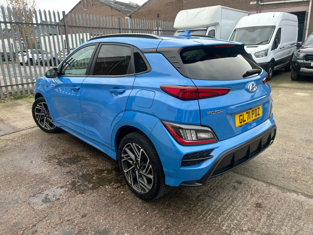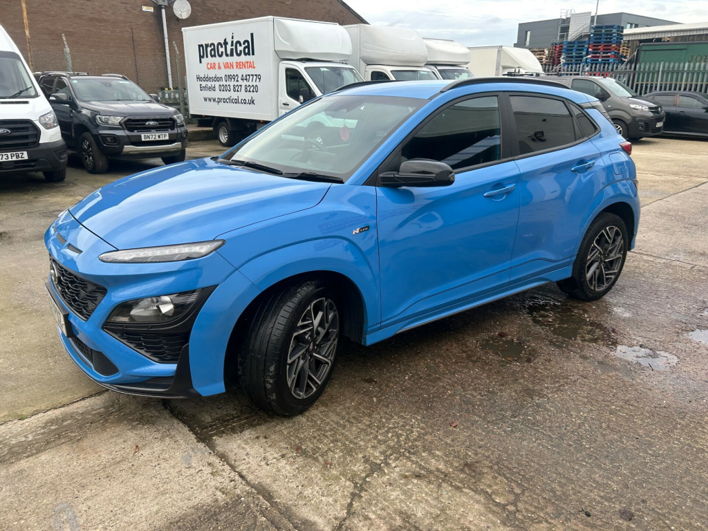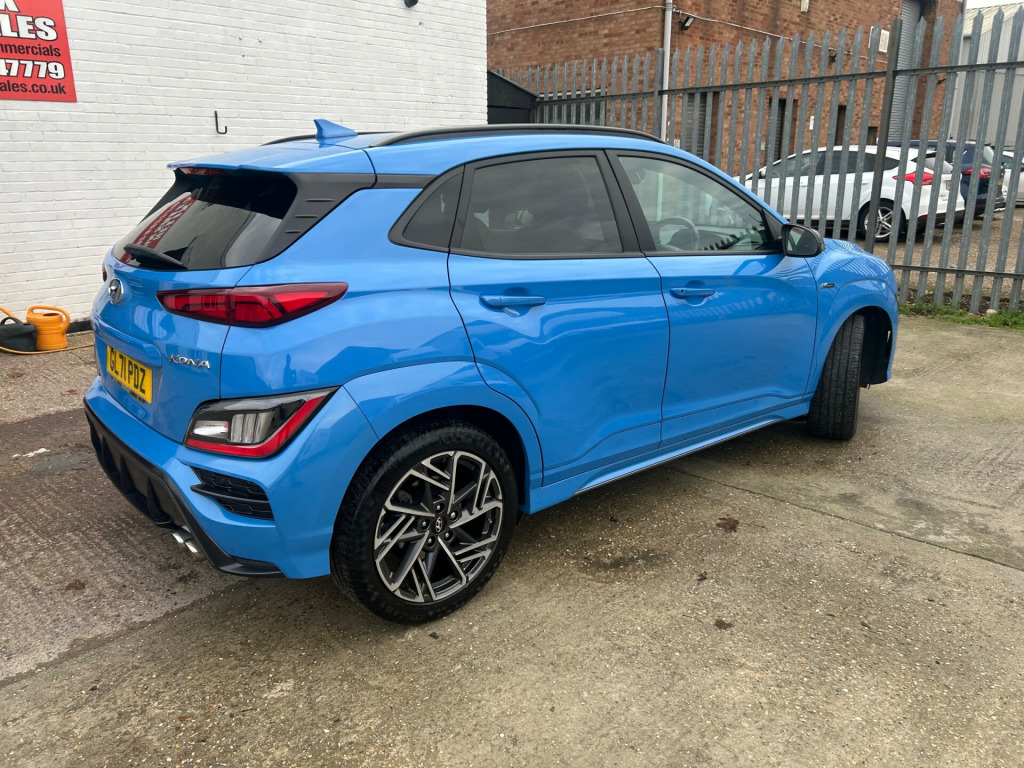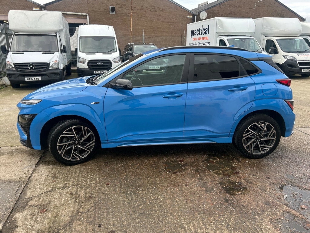 his 2022 Hyundai KONA T GDi N Line boasts a full service history and has had only one owner from new, offering excellent peace of mind. This stylish N Line trim features a 1.0L Petrol Hybrid engine, meeting Euro 6 emissions standards. You can drive with confidence knowing it comes with 12 months MOT and a 12 month warranty. The vehicle history check is clear, further assuring its sound condition.This KONA is equipped with a range of convenient features designed to enhance your driving experience. Enjoy seamless connectivity with Bluetooth, and make parking effortless thanks to the rear camera and rear parking sensors with guidance system. The automatic headlights with dusk sensor ensure optimal visibility, while the wireless phone charging pad keeps your devices powered up on the go. Its low insurance group rating also makes it an economical choice compared to similar vehicles.colour display,Electric Windows - Front and Rear, Electronic Stability Control - ESC, Front Map Reading Lights, ISG - Idle Stop and Go, Lane Keep Assist - LKA, Parking System - Rear Camera and Guidance System, Privacy Glass - Rear Windows and Tailgate, Rear Spoiler with Integrated LED Brake Light, Seats - Heated Front, Shark Fin Antenna, Smart Key - Keyless Entry with Engine Start-Stop Button, Solar Glass - Front Windows and Windscreen, Tyre Pressure Monitoring System - TPMS, USB Port - Centre Console, Airbags - Front, Front Side and Full Length Curtain, Alarm and Immobiliser, Automatic Dimming Rear View Mirror with Compass, Climate Control - Dual Zone, DAB - Digital Radio, E-Call - Emergency Call System, Front Grille - N Line Exclusive Design, KRELL Premium Audio - 8 Speakers Including External Amplifier and Subwoofer, N Line Rear Bumper with Diffuser, Smart Device Integration - Apple Car Play and Android Auto, Wireless Phone Charging Pad,Qi Standard. v power outlet - front console, bluelink, bluetooth connectivity, centre console display - 10.25in touchscreen satellite navigation - mapcare - live services, drivers digital supervision instrument cluster - 10.25in, phone connection - android auto, phone connection - apple carplay, radio - rds and digital radio - dab, speakers - krell premium audio - 8 speaker system including external amplifier and subwoofer, trailer wiring package, usb port - front, usb port - rear, wireless phone charging pad, ecall - emergency call button, 18in alloy wheels, body colour bumpers, body garnish - body coloured, door mirrors - body coloured, door mirrors - power folding, electric windows - front and rear, electric windows - one touch controls - driver, exterior door handles - body coloured, indicator lights - door mirror, positioning lights led, privacy glass - rear side window and tailgate, radiator grille - black, rear spoiler with integral led brake light, roof rails, skid plate - rear - silver, solar glass - front door glass and windscreen with shade band, abs - anti-lock brake system, airbags - front - front side and curtain airbags, alarm and immobiliser, autonomous emergency brake, central locking - remote control, dbc - downhill brake control, electric windows - anti-trap mechanism - driver, electronic stability control - esc, hac - hill-start assist control, lane keep assist - lka, parking brake - manual, rear seat alert, seatbelt - fixed 3 point for second row centre passenger seat, adjustable head restraints, air conditioning - climate control, automatic dimming rear view mirror, automatic windscreen wipers with rain sensor, drivers seat height adjustment - manual, front seat back pockets - driver and passenger seat, head restraints - rear with vertical adjustment, interior door handles - metal paint effect, interior light - ambient lighting, interior light - centre, interior light - front, interior light - luggage compartment, lane follow assist - lfa, leather wrapped steering wheel and gear knob, luggage hooks, luggage net, parcel shelf, passenger seat height adjustment - manual, seats - 60-40 split folding rear, seats - drivers electric lumbar support, steering column - height and reach adjustable, steering wheel with audio - phone and cruise controls, sun visors with driver and passenger illuminated vanity mirrors, sunglasses holder, windscreen auto defog system, automatic headlights with dusk sensor, daytime running lights - led, headlights - halogen, rear lights - led, cruise control with speed limiter, digital clock, driver attention warning, forward collision-avoidance assist with pedestrian detection - fca, motor driven power steering - mdps, parking sensors - rear, parking system - rear camera and guidance system, tyre pressure monitoring system - tpms, windscreen washer fluid sensor and warning indicator