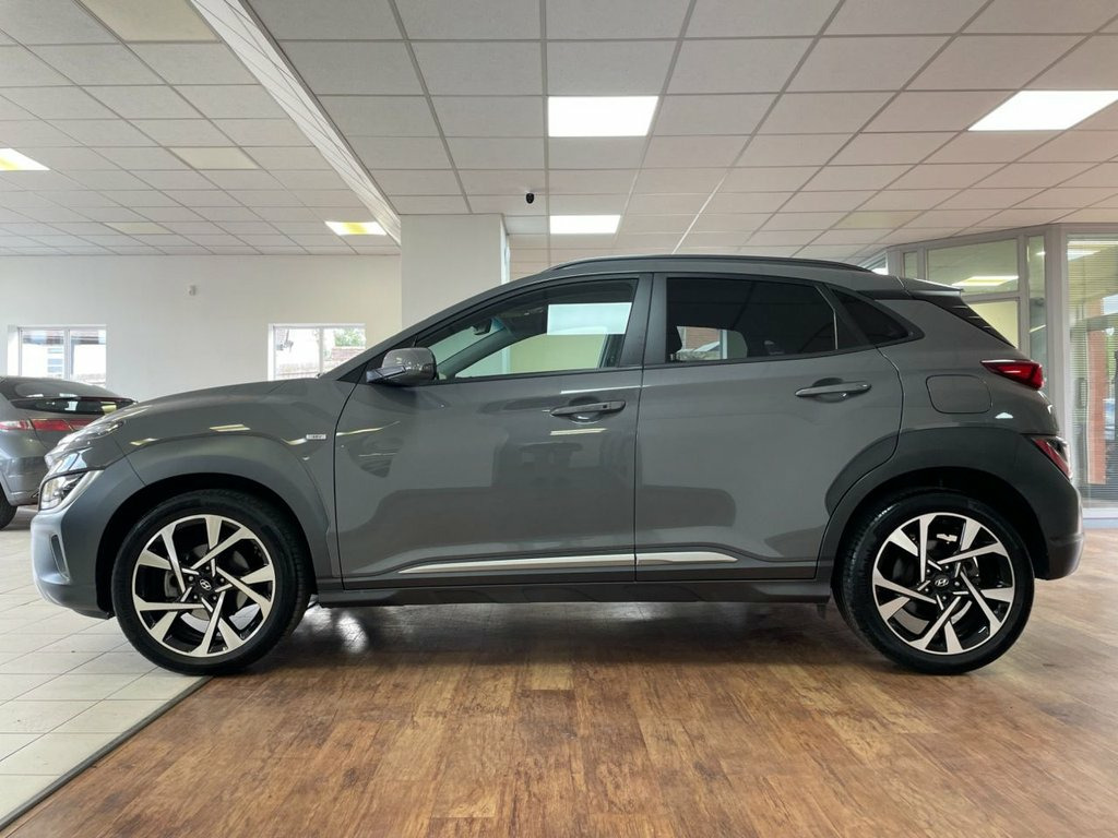 This 2021 Hyundai KONA T GDi Premium offers exceptional value with its very low mileage of just 17,000 miles. This Euro 6 compliant petrol hybrid model boasts a clear vehicle history check, providing peace of mind for its next owner. Inside, you'll find a comfortable and convenient cabin featuring climate control air conditioning, heated front seats, and seamless phone connectivity with Apple CarPlay. Parking is made effortless thanks to front parking sensors and a rear camera with guidance system. The Premium trim level ensures a well equipped driving experience, and this particular KONA stands out with its low insurance group rating, suggesting it could be more economical to run than similar vehicles. The combination of its efficient 1.0 litre petrol hybrid engine, advanced parking assistance, and modern infotainment system makes this Hyundai KONA a practical and appealing choice for everyday driving. Cyber Grey, 12V Power Outlet - Front Console, 18in Alloy Wheels, ABS - Anti-Lock Brake System, Adjustable Head Restraints, Air Conditioning - Climate Control, Airbags - Front - Front Side and Curtain, Alarm and Immobiliser, Automatic Dimming Rear View Mirror, Automatic Headlights with Dusk Sensor, Automatic Windscreen Wipers with Rain Se, Autonomous Emergency Brake, BlueLink, Bluetooth Connectivity, Body Garnish - Painted Anthracite, Central Locking - Remote Control, Centre Console Display - 10.25in Touchsc, Cruise Control with Speed Limiter, DBC - Downhill Brake Control, Daytime Running Lights - LED, Digital Clock, Door Mirrors - Body Coloured, Door Mirrors - Power Folding, Driver Attention