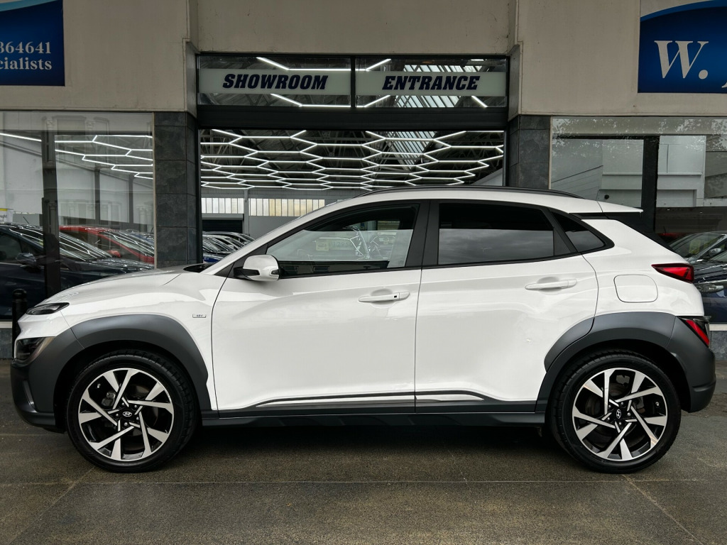 W Jones of Bognor are delighted to present this lovely Hyundai Kona 1.0 T-GDi MHEV Premium Hybrid 5dr. Across all our stock, we ensure servicing is up to date, provide a new 12 month MOT, and provide warranty options of 3/6/12 months. As we are an AA Approved dealership, all vehicles come with 12 months AA breakdown cover free of charge. We are partnered with one of the largest finance brokers in the country, Evolution Funding, in order to cater to all deal sizes and credit ratings, on both HP and PCP. Unsure if you'll be accepted? We can soft search your credit profile to check how likely you are to be accepted! W Jones is a family run business, founded in 1902 and currently run by a 5th generation Jones. We have an indoor showroom facility and also a workshop, for MOTs, servicing and repairs. If you have any questions please do not hesitate to get in touch. v power outlet - front console, bluelink, bluetooth connectivity, centre console display - 10.25in touchscreen satellite navigation - mapcare - live services, drivers digital supervision instrument cluster - 10.25in, phone connection - android auto, phone connection - apple carplay, radio - rds and digital radio - dab, speakers - krell premium audio - 8 speaker system including external amplifier and subwoofer, trailer wiring package, usb port - front, usb port - rear, wireless phone charging pad, ecall - emergency call button, 18in alloy wheels, body garnish - painted anthracite, door mirrors - body coloured, door mirrors - power folding, electric windows - front and rear, electric windows - one touch controls - driver, exterior door handles - body coloured, indicator lights - door mirror, positioning lights led, privacy glass - rear side window and tailgate, rear spoiler with integral led brake light, roof rails, skid plate - rear - silver, solar glass - front door glass and windscreen with shade band, abs - anti-lock brake system, airbags - front - front side and curtain airbags, alarm and immobiliser, autonomous emergency brake, central locking - remote control, dbc - downhill brake control, electric parking brake, electric windows - anti-trap mechanism - driver, electronic stability control - esc, hac - hill-start assist control, intelligent speed limit warning - islw, lane keep assist - lka, rear seat alert, seatbelt - fixed 3 point for second row centre passenger seat, smart key - keyless entry with engine start-stop button, adjustable head restraints, air conditioning - climate control, automatic dimming rear view mirror, automatic windscreen wipers with rain sensor, drivers seat height adjustment - manual, front seat back pockets - driver and passenger seat, head restraints - rear with vertical adjustment, heated front seats, heated steering wheel, interior door handles - metal paint effect, interior light - ambient lighting, interior light - centre, interior light - front, interior light - luggage compartment, lane follow assist - lfa, leather wrapped steering wheel and gear knob, luggage hooks, luggage net, parcel shelf, passenger seat height adjustment - manual, seats - 60-40 split folding rear, seats - drivers electric lumbar support, steering column - height and reach adjustable, steering wheel with audio - phone and cruise controls, sun visors with driver and passenger illuminated vanity mirrors, sunglasses holder, windscreen auto defog system, automatic headlights with dusk sensor, daytime running lights - led, front fog lights, headlights - halogen, rear lights - led, cruise control with speed limiter, digital clock, driver attention warning, forward collision-avoidance assist with pedestrian detection - fca, motor driven power steering - mdps, parking sensors - front, parking sensors - rear, parking system - rear camera and guidance system, tyre pressure monitoring system - tpms, windscreen washer fluid sensor and warning indicator