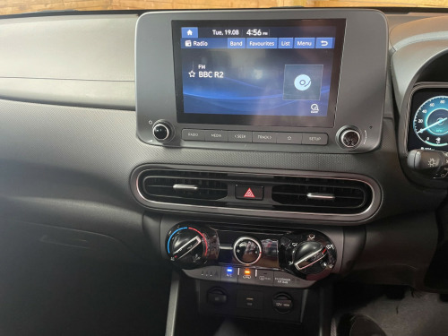 This 2021 Hyundai Kona 1.0 TGDi 48V MHEV SE Connect 5dr is a dynamic hatchback with only 8500 miles on the clock and a petrol hybrid engine. It comfortably seats 5 passengers across 5 doors, making it a practical and efficient choice. Previously owned by 1 registered keeper, this vehicle comes with a range of features including an 8'' touchscreen display audio system with smart device integration, Bluetooth connectivity, cruise control with speed limiter, a digital clock, and driver attention warning. With its sleek design and modern technology, this car is the perfect blend of style, comfort, and eco-friendly performance. All of our vehicles go through a detailed mechanical and safety inspection and are fully serviced with a 12 month MOT with no advisories prior to collection., touchscreen display audio + smart device integration, bluetooth connectivity, cruise control + speed limiter, rear parking sensor, front usb ports, rds and digital dab, body colour door mirrors and handles, door mirror integrated indicators, 60/40 split folding rear seat, alarm/immobiliser, remote central locking, 17'' alloy wheels, 17'' Alloys