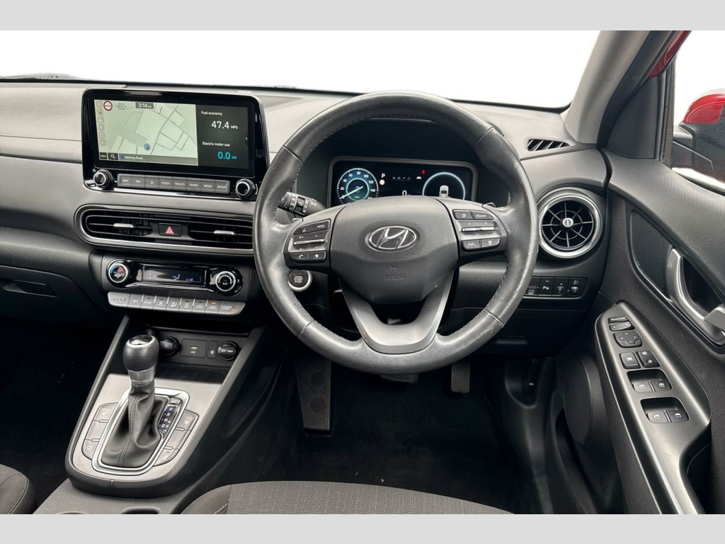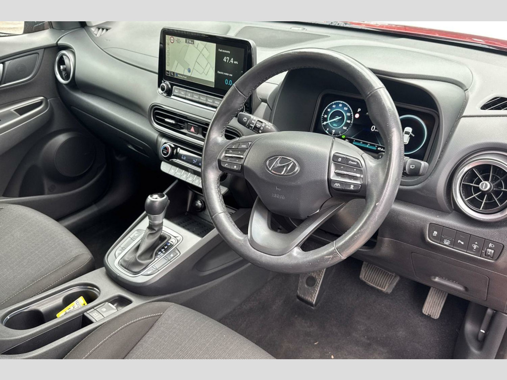 This 2022 Hyundai KONA h GDi Premium is a superb example, boasting exceptionally low mileage for its age, having covered just 17410 miles from new with only one owner. This stylish SUV is powered by an efficient 1.6 litre petrol hybrid engine, meeting Euro 6 emissions standards. Inside, you'll find a host of convenient features designed to enhance your driving experience, including Bluetooth connectivity for seamless phone integration, Smart Cruise Control with Stop and Go for relaxed motorway journeys, and heated front seats for added comfort. The Premium trim also benefits from automatic headlights that activate with a dusk sensor and a rear parking system complete with a camera and guidance system, making manoeuvring effortless.The Hyundai KONA h GDi Premium stands out with its impressive fuel economy, achieving an excellent 57 miles per gallon, which indicates it is more economical than many similar vehicles. Furthermore, its low CO2 emissions and low insurance group highlight its affordability and environmental consciousness, making it a sensible choice for many drivers. This well maintained, single owner vehicle offers a compelling combination of practicality, technology, and cost effectiveness.