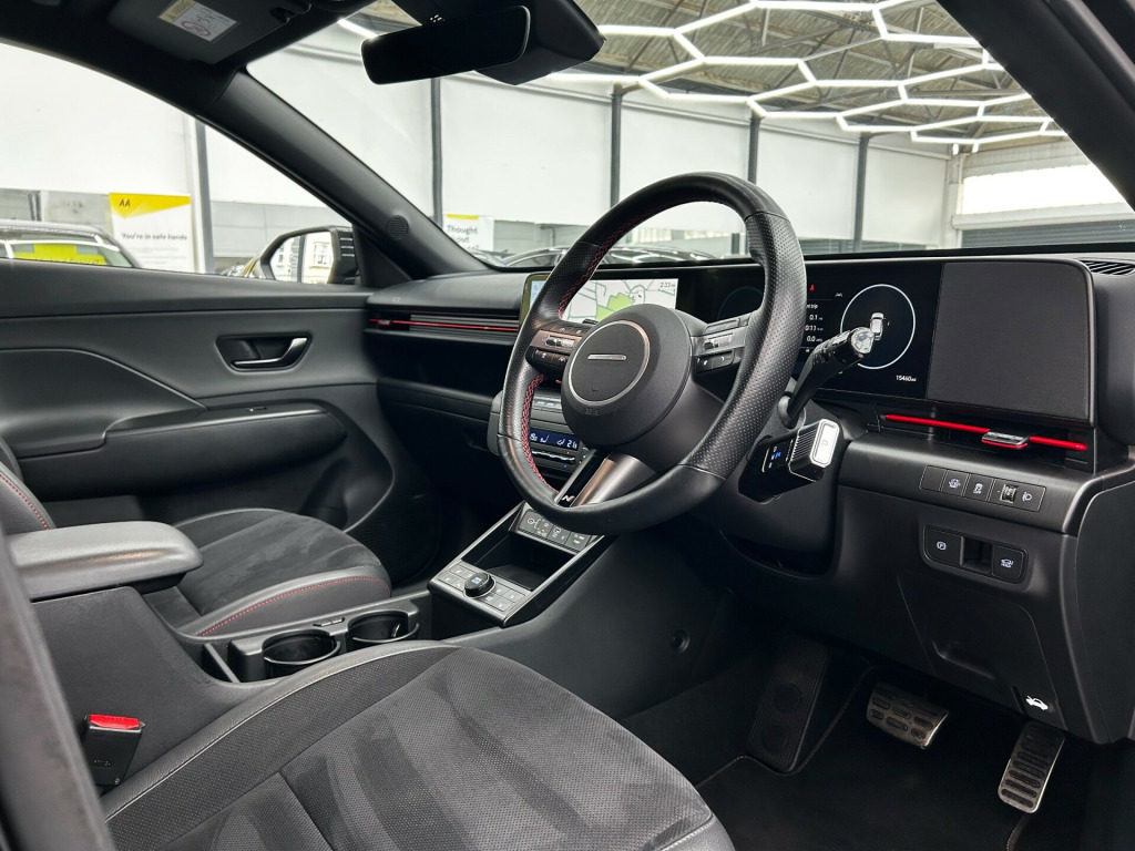 W Jones of Bognor are delighted to present this lovely Hyundai Kona 1.6 h-GDi N Line S Hybrid DCT 5dr. With the vehicles first MOT not due until 25/09/26 and having recently been serviced, this Kona is ready to drive away! The Kona remains under Hyundai Manufacturer Warranty till 26/09/28, with the battery under warranty till 26/09/31. As we are an AA Approved dealership, all vehicles come with 12 months AA breakdown cover free of charge. We are partnered with one of the largest finance brokers in the country, Evolution Funding, in order to cater to all deal sizes and credit ratings, on both HP and PCP. Unsure if you'll be accepted? We can soft search your credit profile to check how likely you are to be accepted! W Jones is a family run business, founded in 1902 and currently run by a 5th generation Jones. We have an indoor showroom facility and also a workshop, for MOTs, servicing and repairs. If you have any questions please do not hesitate to get in touch. v power outlet - front, bose premium sound system with 7 speakers and subwoofer, bluelink connected car services - 3 years, bluetooth connectivity with voice recognition, feature on demand - enabled, navigation infotainment - 12.3in touchscreen with bluelink - live services - mapcare, radio - digital dab, smartphone integration - apple carplay and android auto, trailer wiring package, usb c - front x2, usb c - rear x2, wireless phone charging pad, ecall, 18in alloy wheels, door mirrors - electric adjustment and heated with power fold, door mirrors - gloss black, electric windows - front with anti-trap mechanism and one-touch control, electric windows - rear, exterior door handles - body coloured, indicator lights - door mirror - led, n line exterior design pack, privacy glass - rear windows and tailgate, rear spoiler with integrated led brake light, roof rails, solar glass - front door glass and windscreen, temporary mobility kit, tinted glass - front and rear windows, wheel arch inserts - body coloured, abs - anti-lock brake system, airbags - front - front side - curtain and centre front airbag, alarm and immobiliser, central locking - remote control, dbc - downhill brake control, electronic stability control - esc, fca 1.5 - forward collision avoidance assist - car - pedestrian - cycle - junction turning, hac - hill-start assist control, highway drive assist, immobiliser, lane follow assist - lfa, lane keep assist - lka, parking brake - electric, parking collision avoidance assist - reverse - pca-r, parking distance warning - side, rear cross traffic collision avoidance assist - rcca, rear occupant alert, safe exit warning - sew, smart key - keyless entry with start-stop button, adjustable head restraints, air conditioning - climate control - three zone, aluminium pedals, ambient lighting - interior, automatic dimming rear view mirror, automatic windscreen wipers with rain sensor, drivers seat electric adjustments, drivers seat height adjustment - manual, drivers seat lumbar support, drivers supervision instrument cluster with 12.3in lcd display, front passengers seat electric adjustments, front seat - back pockets, front seats - heated, front seats - ventilated, head restraints - vertical adjustment - rear, heated steering wheel, interior door handles - metal paint effect, interior light - centre led, interior light - front led, interior light - luggage compartment led, leather wrapped steering wheel, luggage net, luggage shelf, rear seats - heated, rear seats - split folding 40-20-40, shift by wire - sbw, steering column - height and reach adjustable, steering wheel - audio - phone - cruise controls, sun visors with driver and passenger illuminated vanity mirrors, tailgate - power operated - height adjustable, windscreen auto defog function, automatic headlights with dusk sensor, daytime running lights - led, headlights - full projection led, horizon centre daytime running light - drl - led, rear lights upper and lower - led, blind spot collision avoidance assist - bca, cruise control - smart cruise control - scc with stop and go function, daw - driver attention warning, intelligent speed limit assist - isla, leading vehicle departure alert - lvda, motor driven power steering - mdps, parking sensors - front and rear, parking system - rear camera and guidance system, surround view monitor - svm, tyre pressure monitoring system - tpms