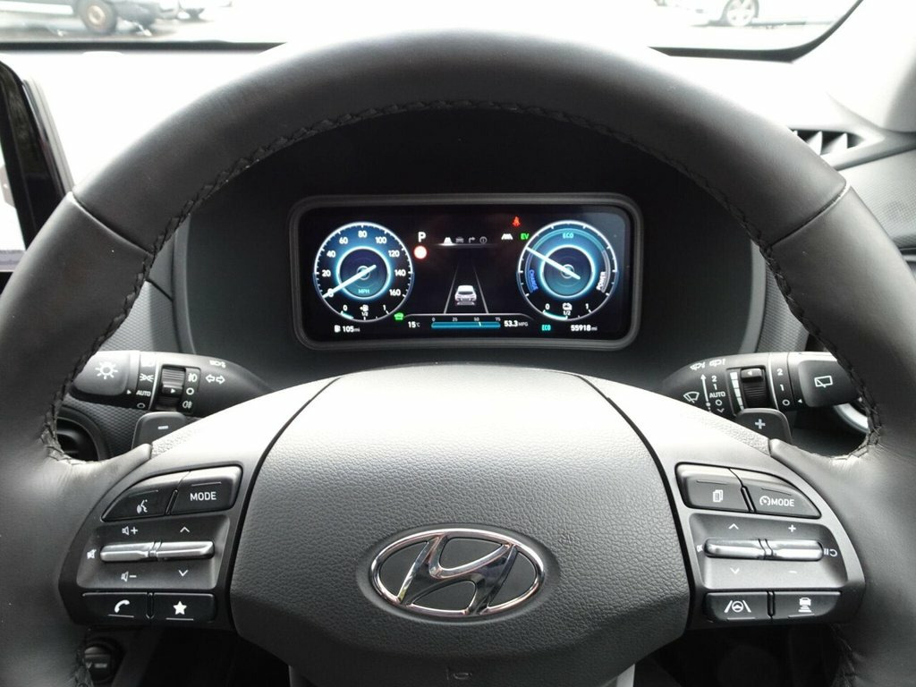 This 2021 Hyundai KONA h GDi Premium is a superb example, having been owned by just one careful keeper from new and complimented by a Full Hyundai Service History and Hyundai warranty to July 2026. This stylish compact SUV boasts a 1.6 litre petrol hybrid engine, meeting Euro 6 emissions standards. It comes equipped with a Smart Key for keyless entry and engine start stop, along with climate control air conditioning. For added convenience, it features front parking sensors and a heated steering wheel, perfect for those colder mornings. You can also enjoy seamless connectivity with Bluetooth and Apple Carplay. The Hyundai KONA h GDi Premium offers excellent running costs, achieving an impressive 57 miles per gallon, which is a highlight indicating it is more economical than many similar vehicles. Furthermore, its low insurance group rating means more affordable cover, and its low CO2 emissions further contribute to its cost effectiveness and environmental consideration. This well maintained vehicle presents a compelling choice for those seeking a practical and efficient compact SUV. These sell fast, please get in touch to avoid disappointment. Centre Console Display - 10.25in Touchsc, Phone Connection - Android Auto, Phone Connection - Apple CarPlay, BlueLink, Bluetooth Connectivity, Parking System - Rear Camera and Guidanc, 18in Alloy Wheels, ABS - Anti-Lock Brake System, Adjustable Head Restraints, Air Conditioning - Climate Control, Airbags - Front - Front Side and Curtain, Alarm and Immobiliser, Automatic Dimming Rear View Mirror, Automatic Headlights with Dusk Sensor, Automatic Windscreen Wipers with Rain Se, Body Garnish - Painted Anthracite, Central Locking - Remote Control, DBC - Downhill Brake Control, Daytime Running Lights - LED, Digital Clock, Door Mirrors - Body Coloured, Door Mirrors - Power Folding, Driver Attention