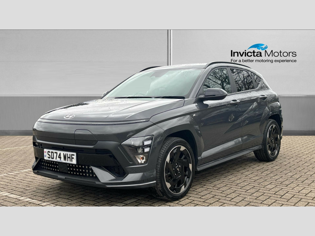 Hyundai Kona 160kW N Line 65kWh 215hp Elect, 5 Doors, Automatic, Hatchback, Electric registered in 2024 ,Grey ,14612 miles. can be purchased from your local dealer regardless of their physical stock location. Free UK Mainland Delivery on ALL New and Used