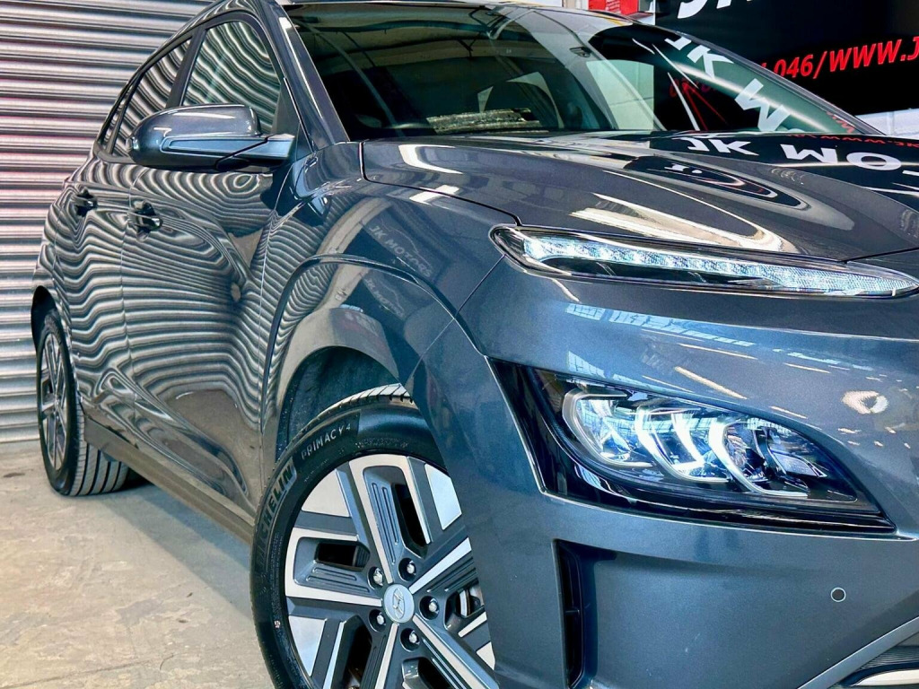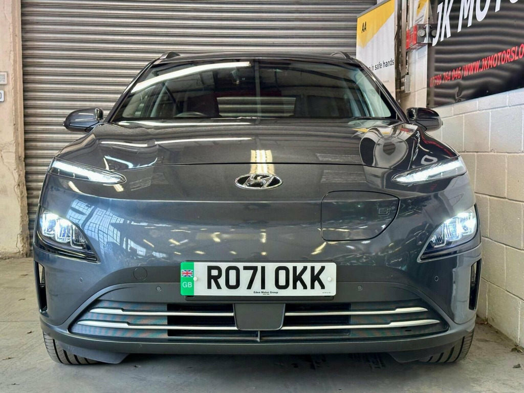 Ready to drive away today showroom condition Hyundai KONA 64kWh Premium Auto 5dr (10.5kW Charger), full main dealer service history, just been through MOT. Great spec finished off in metallic grey, 17 alloy wheels, LED lights, reverse camera and front and rear parking sensors. Interior boats an array of factory extras, collision assist, adaptive cruise control and enhanced driving, heated seats, apple play/android connectivity, wireless mobile phone charge, keyless entry and start, Krell speakers, touchscreen multimedia with sat nav, DAB Radio the list goes on. 2 keys, buy with confidence from an award winning, AA Approved dealership with a variety of warranty products available. Viewing available seven days a week by appointment (evening and weekends available), nationwide delivery. Same day finance decisions in house at competitive rates, nil deposit options, please inquire with a simple call to drive away today. Drive away insurance, part exchange welcome, top prices paid. Member of the Motor Trade trading standards and motoring ombudsman code of practice