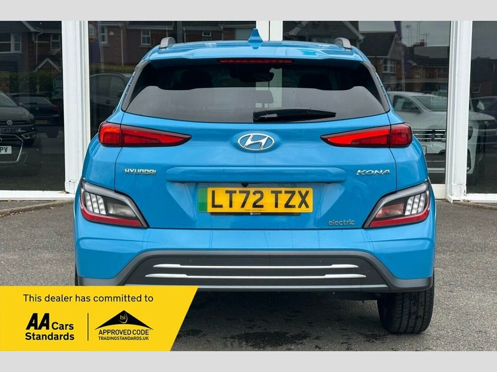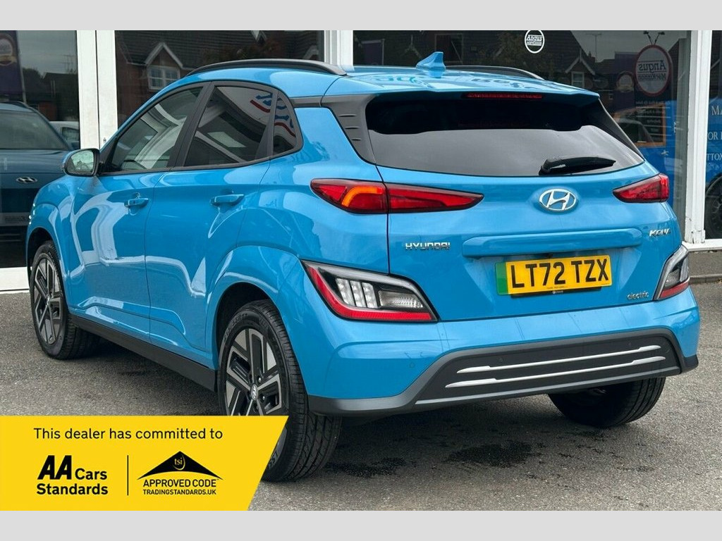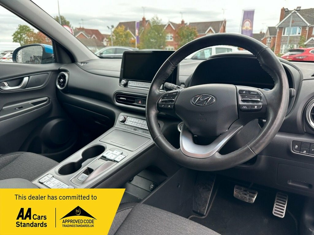 Boasting a single owner from new and a clear vehicle history, this 2022 Hyundai KONA Premium Electric presents an exceptional ownership proposition. With only 15,951 miles on the clock, it represents low mileage for its age. This KONA features a substantial 68 kWh battery, offering a maximum range of 300 miles when new, and benefits from a full service history, with the last service completed on 2024-11-27 at 13,579 miles. Key features include Smart Key with keyless entry and engine start stop button, Android Auto for seamless phone connectivity, and Bluetooth with voice recognition. For added comfort and convenience, it is equipped with a heated steering wheel and Smart Adaptive Cruise Control with Stop and Go functionality. The charging capabilities of this Hyundai KONA are noteworthy, providing a full charge at home using a 7kW charger in approximately 10 hours and 16 minutes, and a rapid charge from empty to 80% in just 53 minutes at a public charging station. These charging times, combined with its impressive range and the fact it has had only one owner, highlight how this vehicle offers a superior electric driving experience compared to many others on the market. This well maintained and feature rich KONA is ready for its next adventure. ========= Specification: 10.25in Widescreen Navigation 17in Alloy Wheels Full LED Headlights Heated Front Seats Heated Steering Wheel Krell Premium Audio (8spk + sub) Wireless Phone Charging Pad Smart Keyless Entry + Start Apple Car 10.25in Widescreen Navigation with Bluel, 100 Percent MapCare Programme - 10 Years, 17in Alloy Wheels, ABS - Anti-Lock Brake System, Adjustable Head Restraints, Airbags - Front - Front Side and Curtain, Automatic Dimming Rear View Mirror, Automatic Headlights with Dusk Sensor, Automatic Windscreen Wipers with Rain Se, Battery Heater, Blind Spot Collision Avoidance Assist, Bluetooth Connectivity with Voice Recogn, CCS Combo Rapid Charge Port - 50kW, Central Locking - Remote Control, Charging Cable - 7 Pin Type 2, Charging Cable - Emergency 3 Pin Connect, Climate Control with Automatic De-Fog Sy, Cloth - Black, Cruise Control - Smart Adaptive Speed Co, Cup Holders - Front, Daytime Running Ligh
