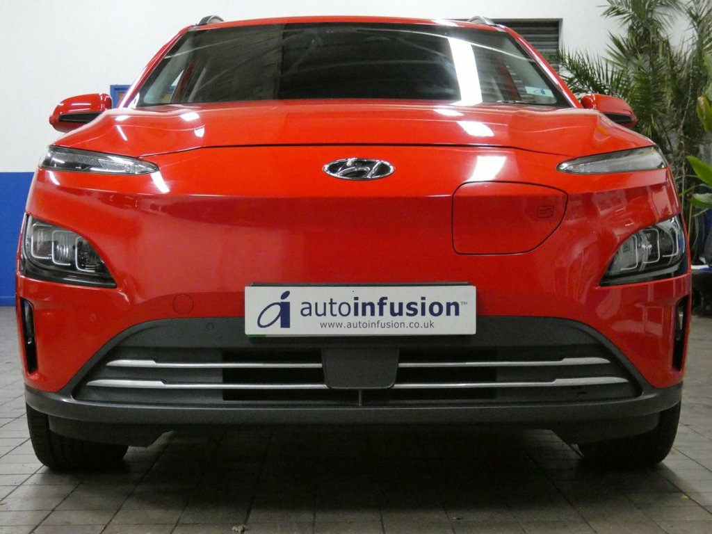 This 2021 Hyundai KONA Premium Electric boasts low mileage for its age, having covered just 28, 095 miles, and has been cherished by only one owner from new. Excellent service history 4 services to 27,139 miles Sept 2025, Mot till Oct 2026, Hyundai warranty till Oct 2026. This well appointed electric SUV offers a substantial battery total capacity of 64 kWh, providing a maximum range of 300 miles when new. Driving is made easier with a rear camera and guidance system, complemented by sat nav, android apple carplay, cruise control, Comfort is enhanced by heated front seats, and convenience is at your fingertips with a wireless phone charging pad. Automatic headlights with a dusk sensor ensure optimal visibility, adapting to changing light conditions. The impressive 300 mile range highlights how this KONA stands out, offering considerable distance on a single charge. For those longer journeys, the fastest public charging time from empty to 80% is a swift 53 minutes, while a full charge at home using a 7kW charger takes approximately 10 hours and 16 minutes. These charging times demonstrate the practicality of this electric vehicle for both daily commutes and extended trips, making it a compelling choice for those seeking an efficient and feature rich electric car. Autoinfusion Ltd, is a family run business with over 30 years motoring experience. On our website you will find our vehicles are generally advertised with upto 100 exterior and interior pictures, 360 interior image 10.25in Widescreen Navigation with Bluel, 100 Percent MapCare Programme - 10 Years, 17in Alloy Wheels, ABS - Anti-Lock Brake System, Adjustable Head Restraints, Airbags - Front - Front Side and Curtain, Automatic Dimming Rear View Mirror, Automatic Headlights with Dusk Sensor, Automatic Windscreen Wipers with Rain Se, Battery Heater, Blind Spot Collision Avoidance Assist, Bluetooth Connectivity with Voice Recogn, CCS Combo Rapid Charge Port - 50kW, Central Locking - Remote Control, Charging Cable - 7 Pin Type 2, Charging Cable - Emergency 3 Pin Connect, Climate Control with Automatic De-Fog Sy, Cruise Control - Smart Adaptive Speed Co, Cup Holders - Front, Daytime Running Lights - LED, Digit