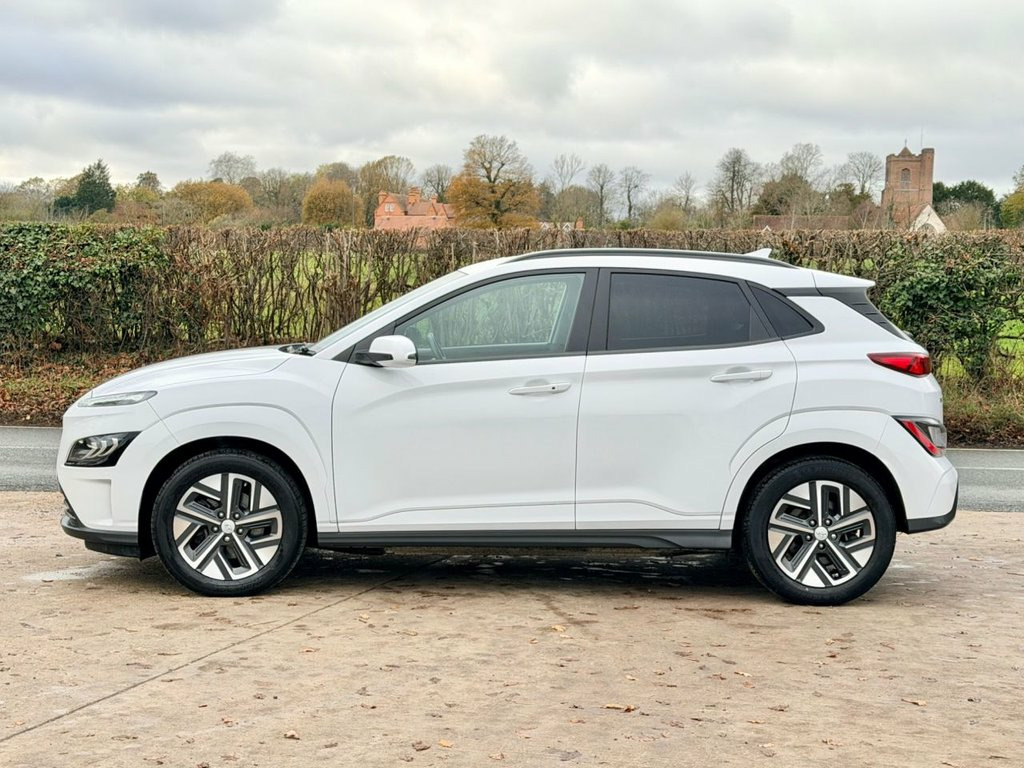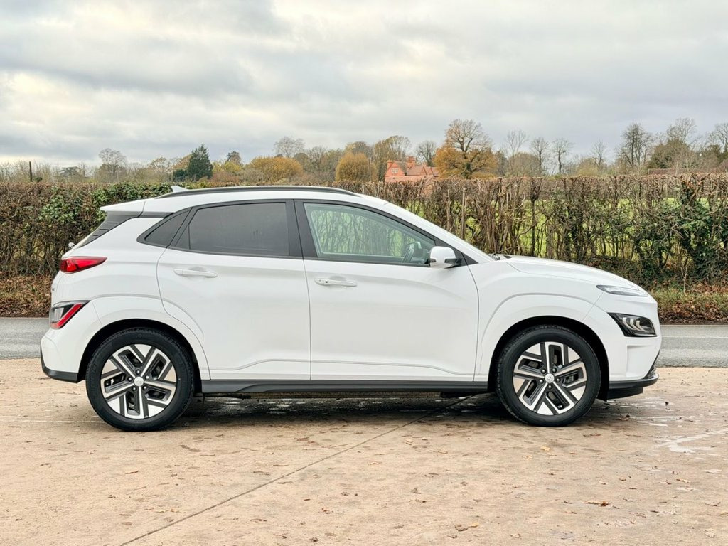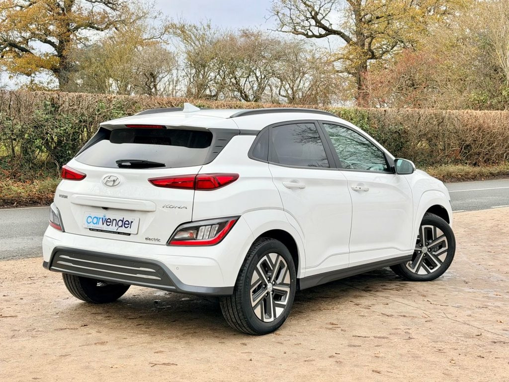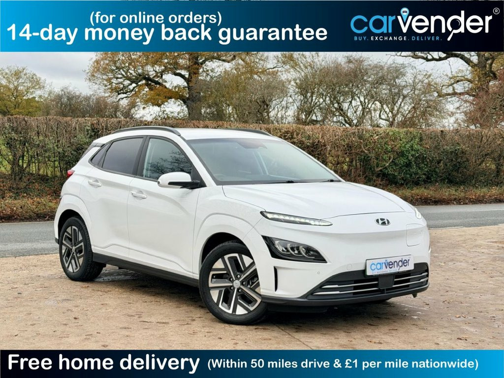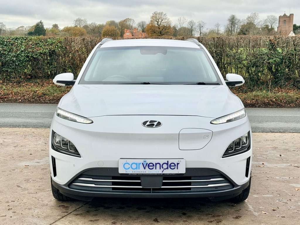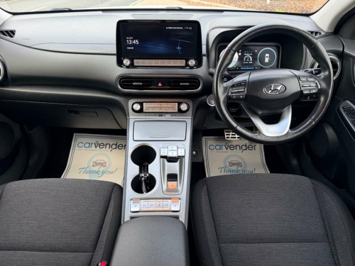 At Carvender we are presenting the stunning all-electric 2021 Hyundai Kona 64kWh Premium 5dr. This Hyundai Kona is a top-tier compact SUV designed for modern living. This Hyundai Kona is powered by a 204 Brake Horse Power (BHP) motor and offers eco-friendly seamless blend of efficiency, style and cutting-edge technology. The Hyundai Kona is equipped with a 64kWh battery which delivers a range of up to 300 miles in single charge by books. This Hyundai Kona is in eye-catching colour which features full LED headlights and sleek body lines for a sophisticated look. This Hyundai Kona is equipped with luxurious cabin with premium materials and modern features including Cruise Control, Lane Keeping Assist, Reversing Camera, Rear & Front Parking Sensors, Heated Seats, Heated Steering, SatNav, Apple CarPlay/Android Auto, Mobile Connection and much more. We have Full Hyundai Main Dealer Service History which have been carried out at mileages of 11609, 27607, 38509 and 49350 on 17/10/2025. Contact us today to schedule a test drive or visit our website for home delivery with 14 days money back guaranty and enjoy the future of driving with zero emissions, a refined ride and high-end comfort. 10.25in Widescreen Navigation with Bluel, 100 Percent MapCare Programme - 10 Years, 17in Alloy Wheels, ABS - Anti-Lock Brake System, Adjustable Head Restraints, Airbags - Front - Front Side and Curtain, Automatic Dimming Rear View Mirror, Automatic Headlights with Dusk Sensor, Automatic Windscreen Wipers with Rain Se, Battery Heater, Blind Spot Collision Avoidance Assist, Bluetooth Connectivity with Voice Recogn, CCS Combo Rapid Charge Port - 50kW, Central Locking - Remote Control, Charging Cable - 7 Pin Type 2, Charging Cable - Emergency 3 Pin Connect, Climate Control with Automatic De-Fog Sy, Cruise Control - Smart Adaptive Speed Co, Cup Holders - Front, Daytime Running Lights - LED, Digit